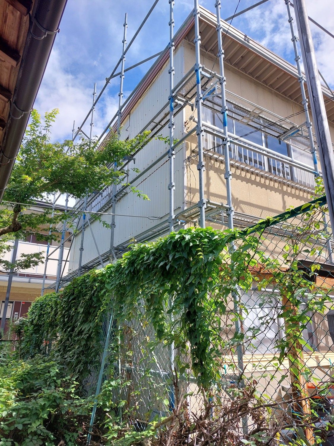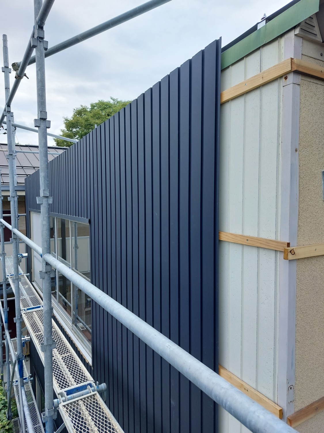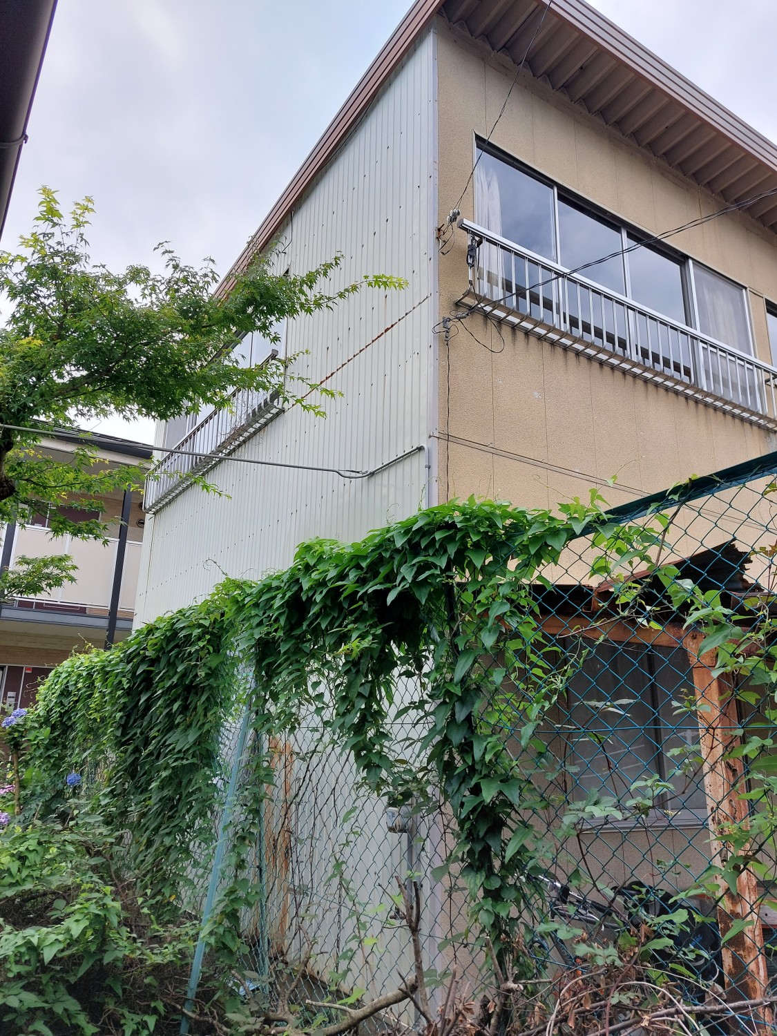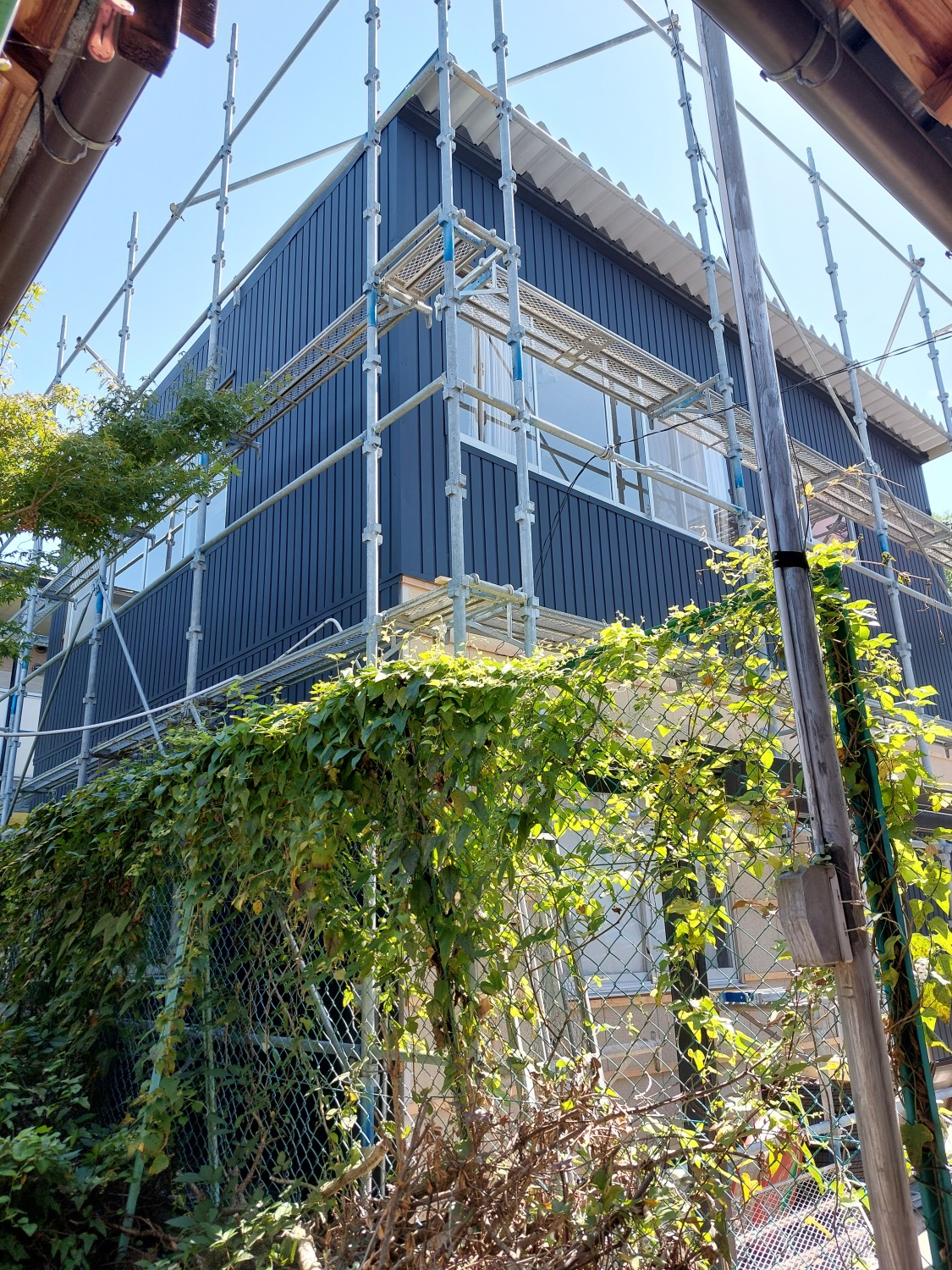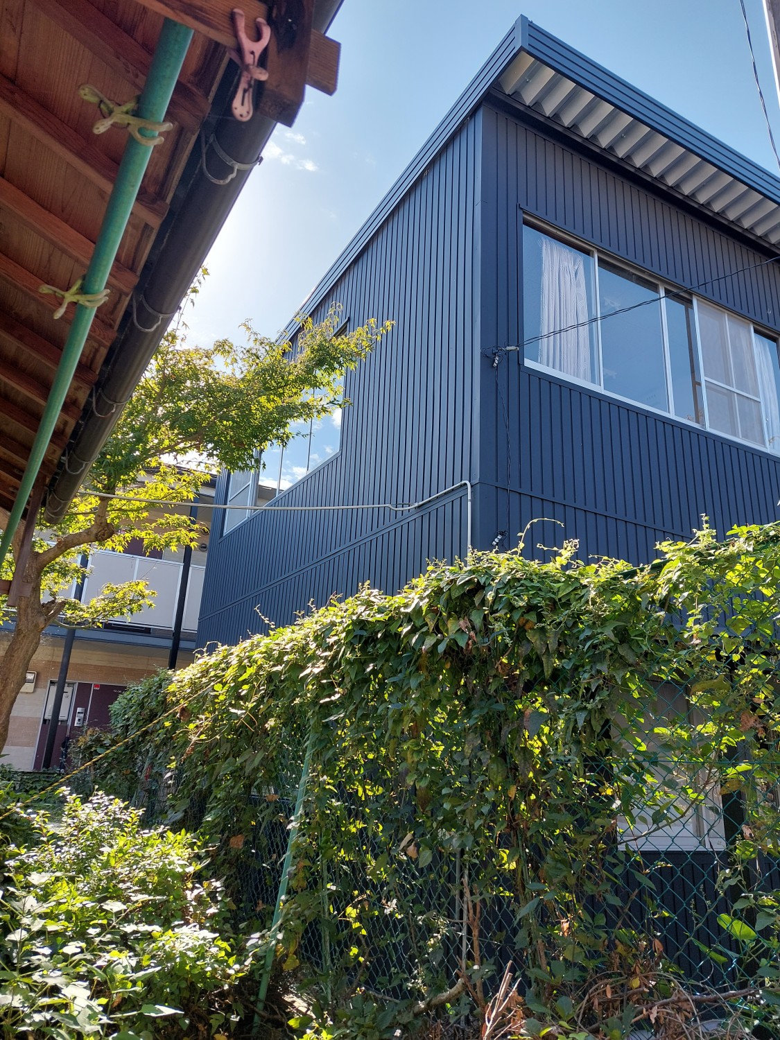 外壁にガルバリウム鋼板で重ね張りをおこないました。