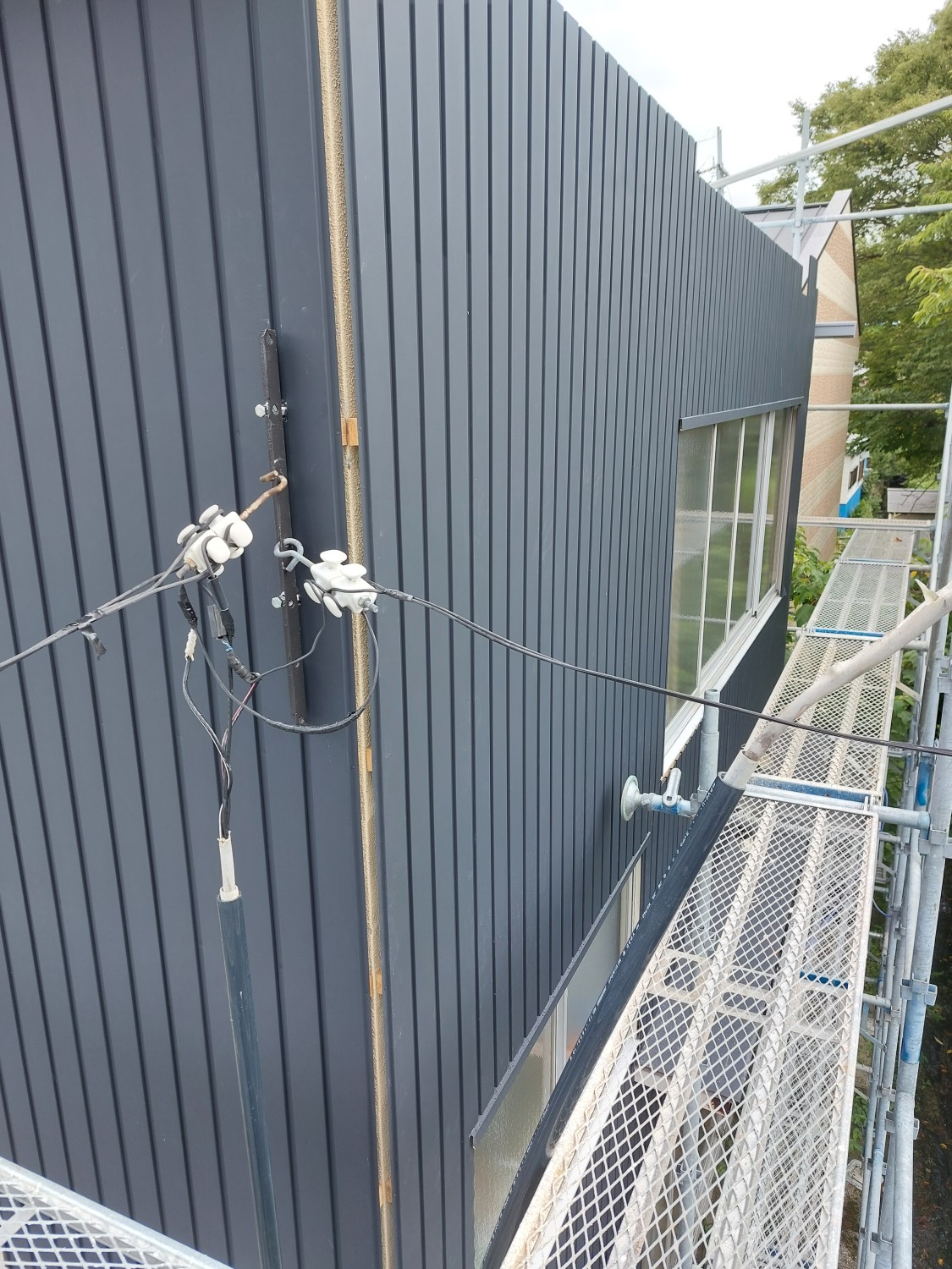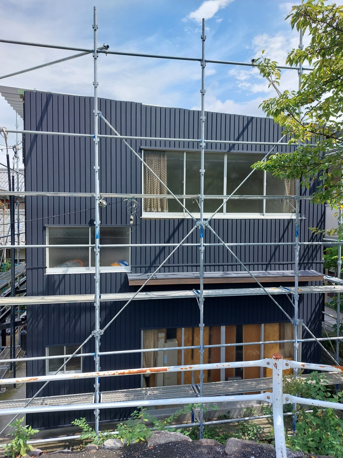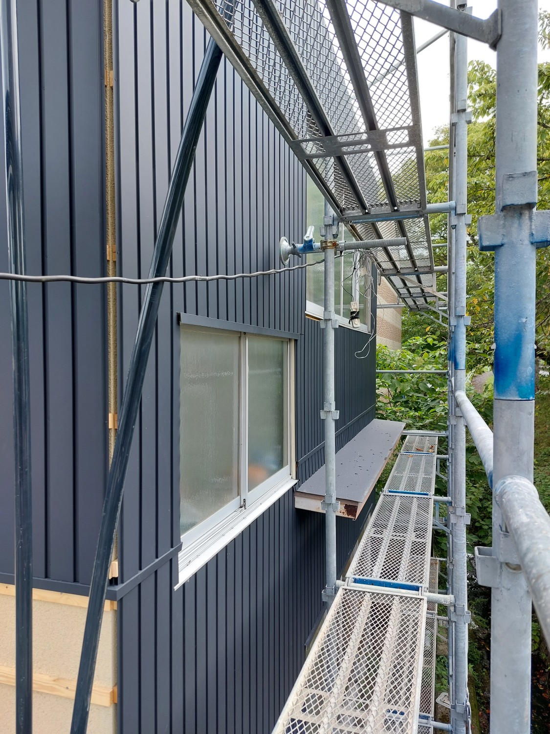 外壁にガルバリウム鋼板で重ね張りをおこないました。