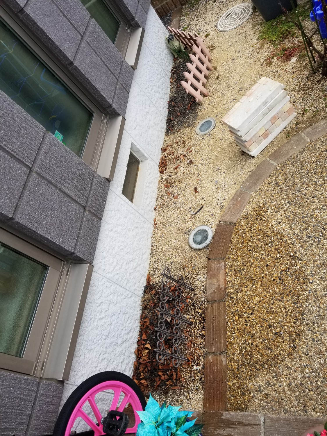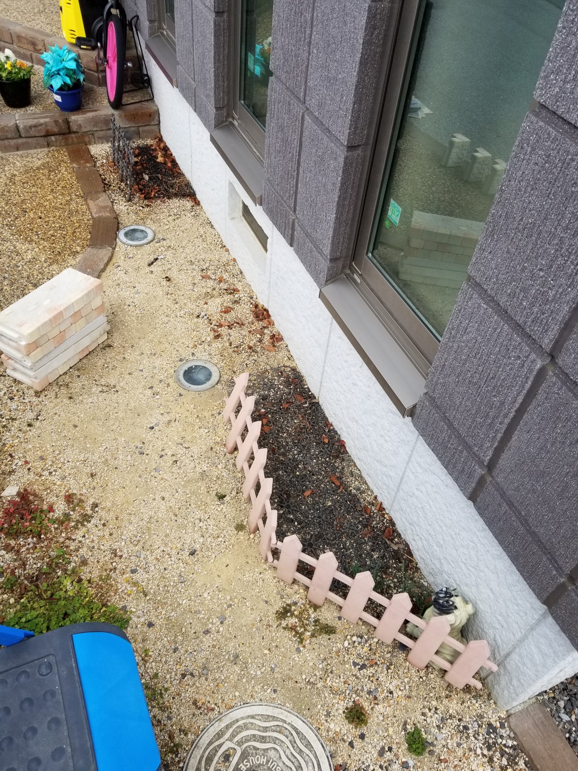 お庭の寸法に合わせてカットし、ブロック用接着剤にて固定しました。