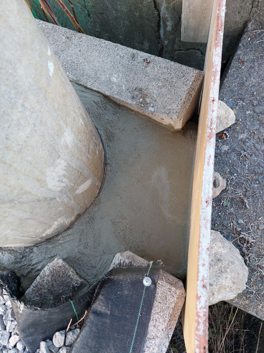電柱の下からの雑草がひどかったので、モルタルを敷き詰めて雑草対策をしました。