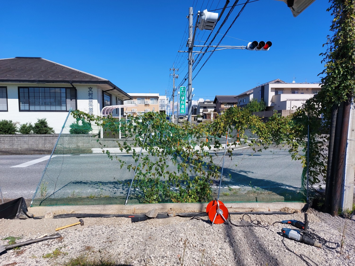 既存のネット柵の撤去と、高さ1800のメッシュフェンスの施工をおこないました。