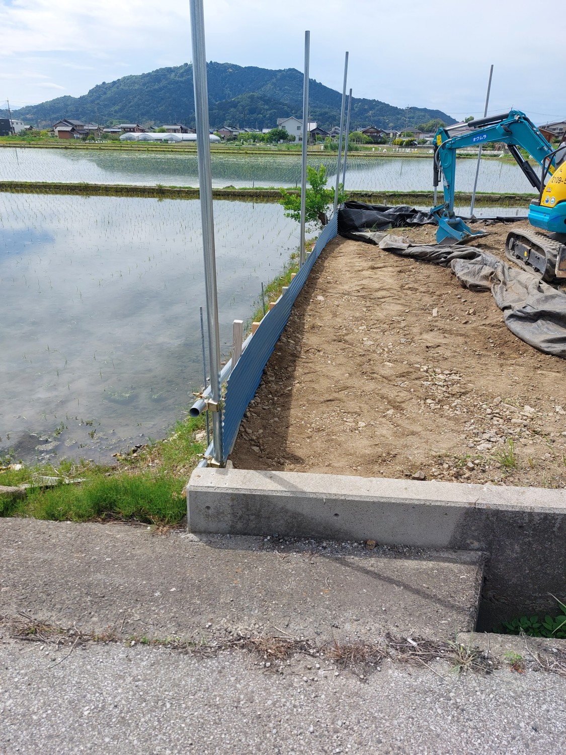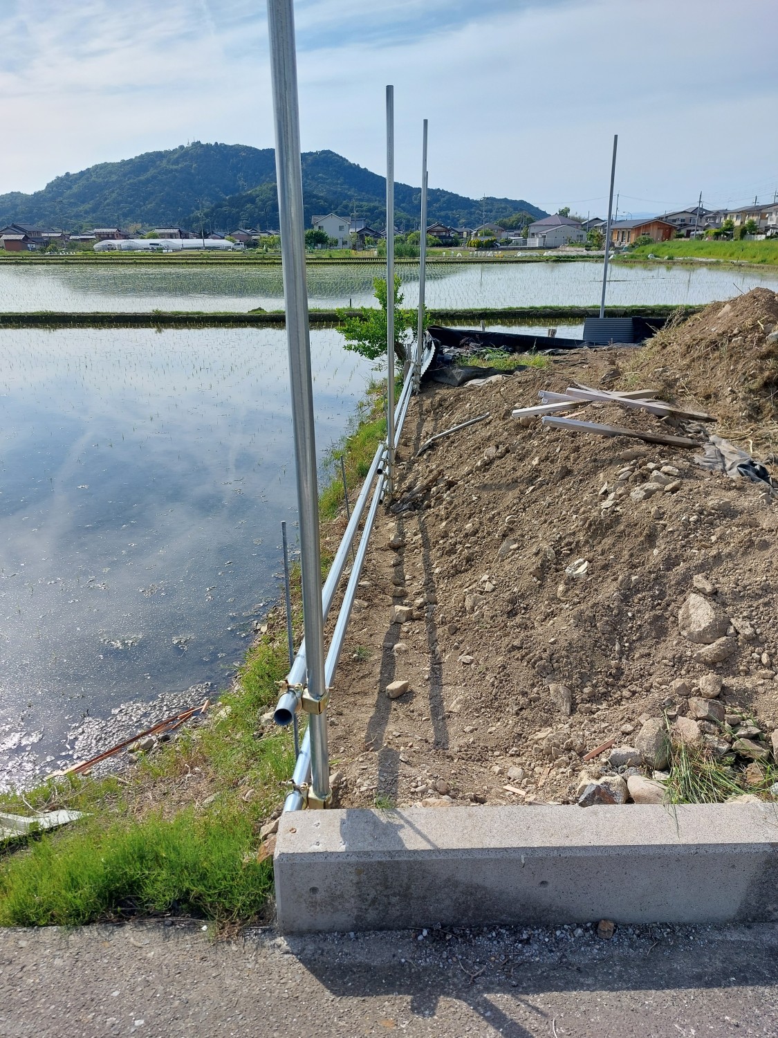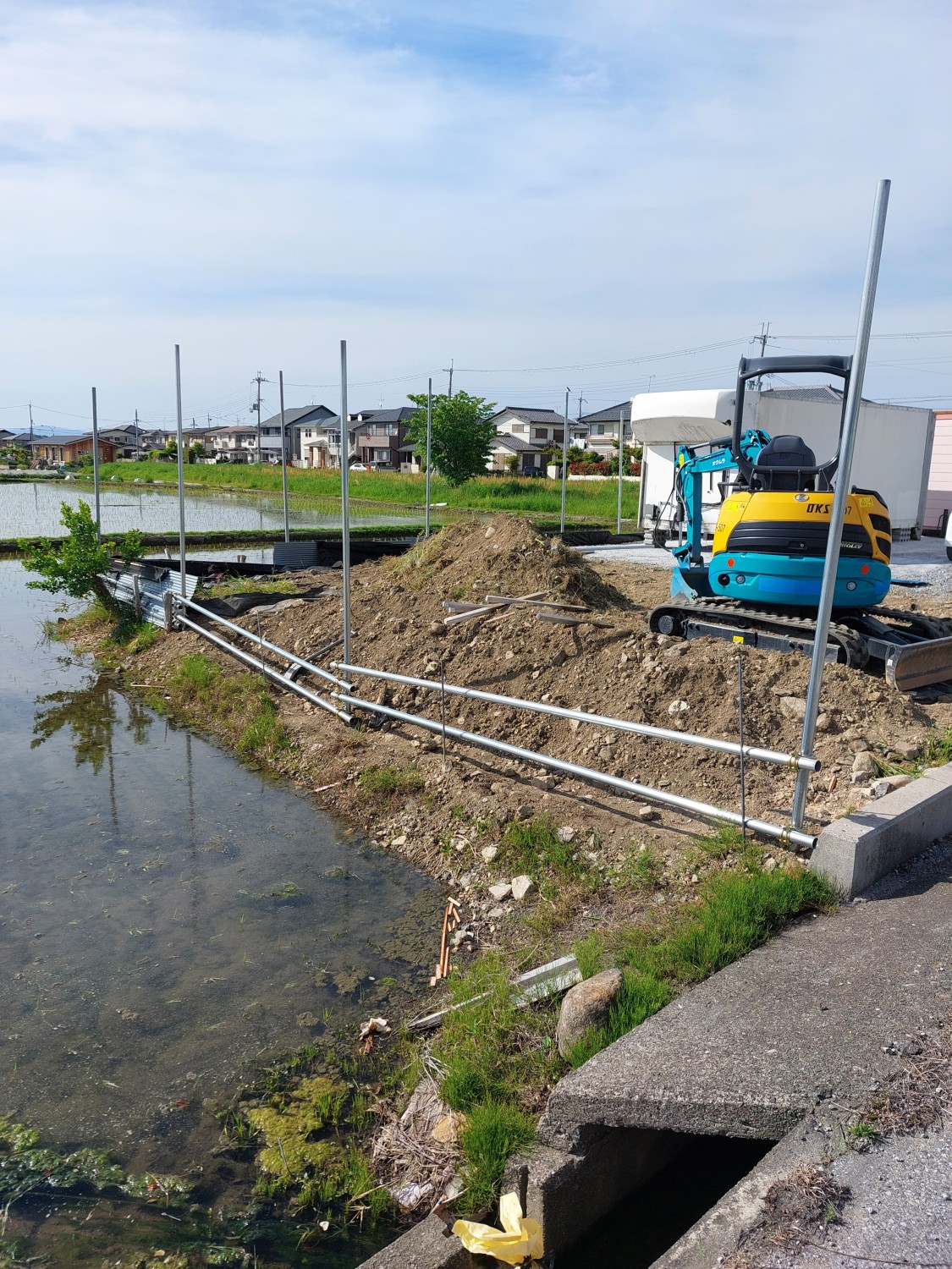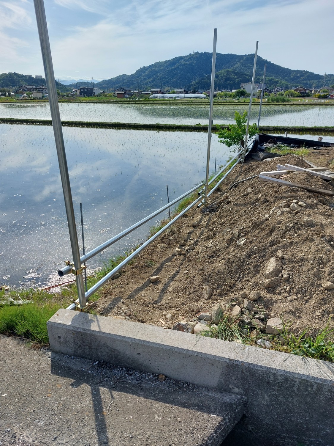 今回は単管を打ち込んで、さらに単管を組み込み以前より強固な土留めをおこないました。