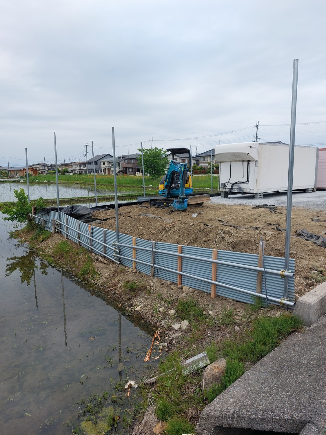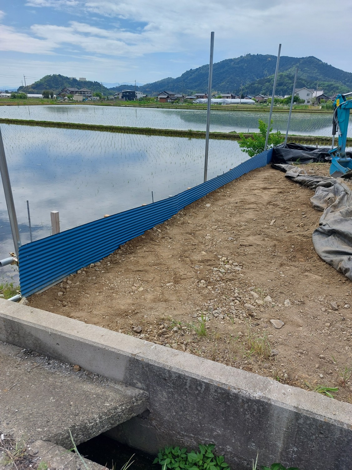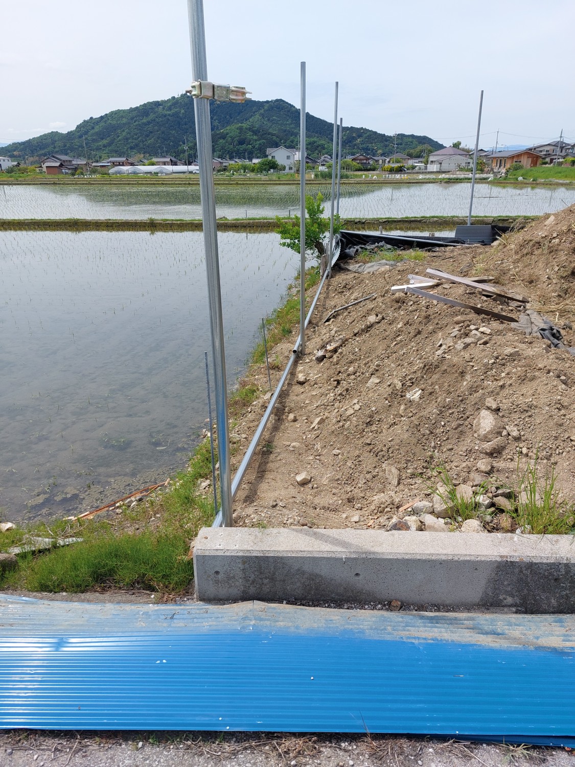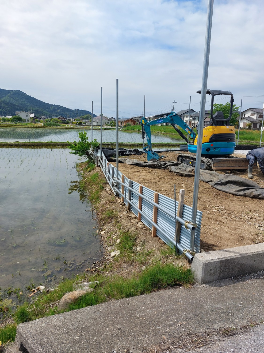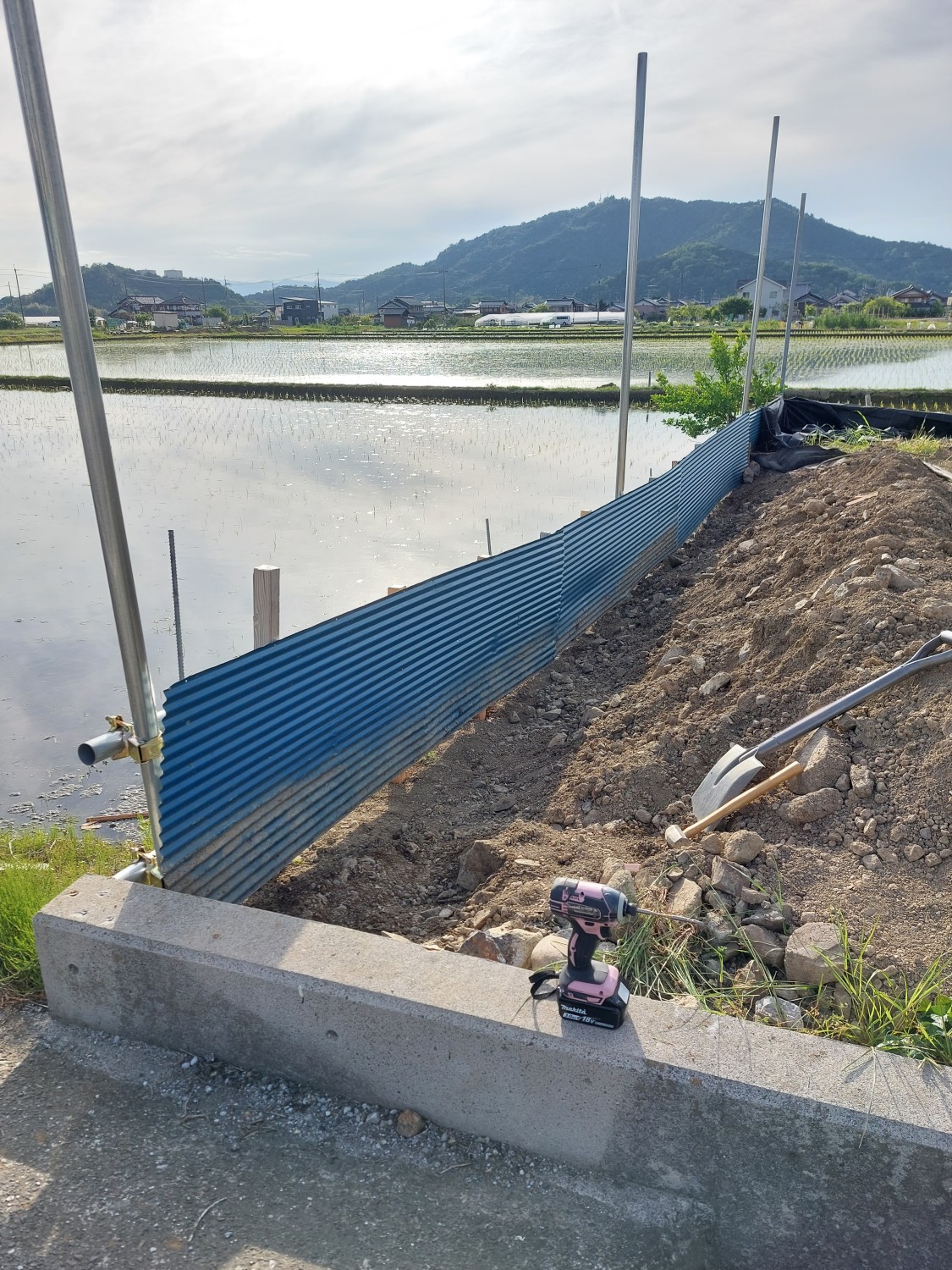 今回は単管を打ち込んで、さらに単管を組み込み以前より強固な土留めをおこないました。