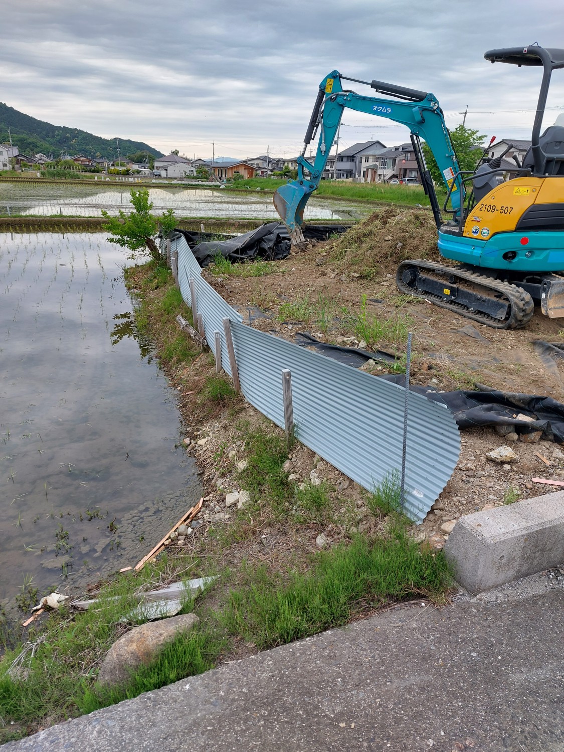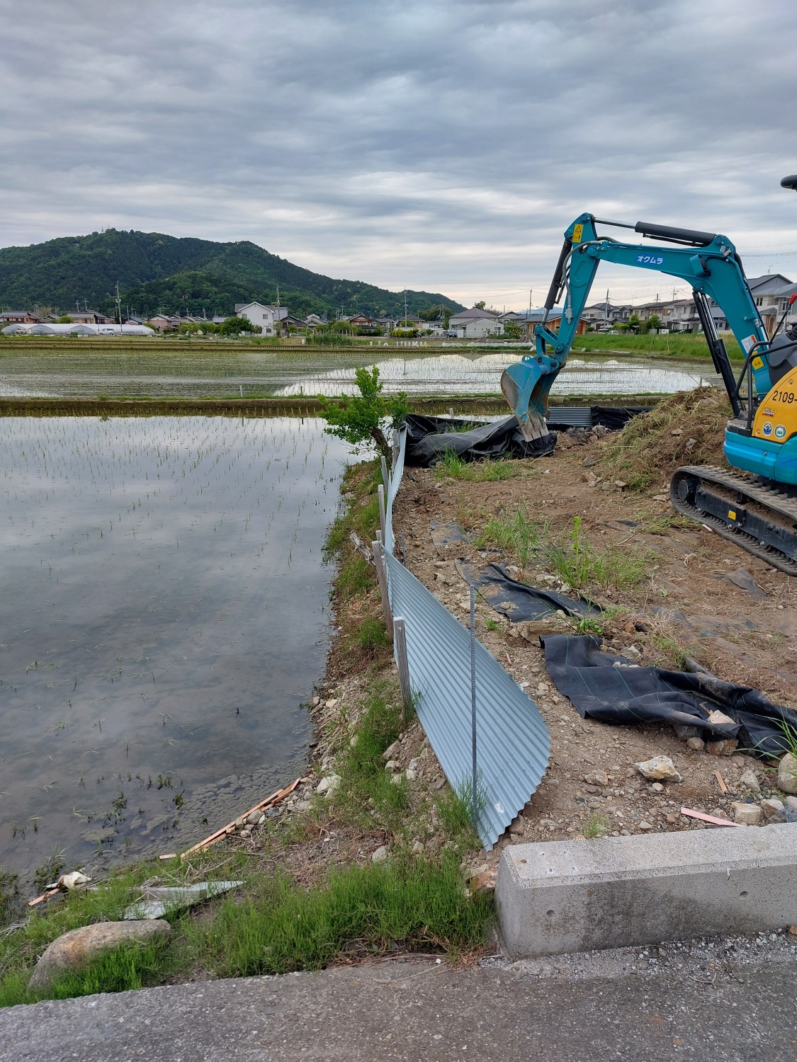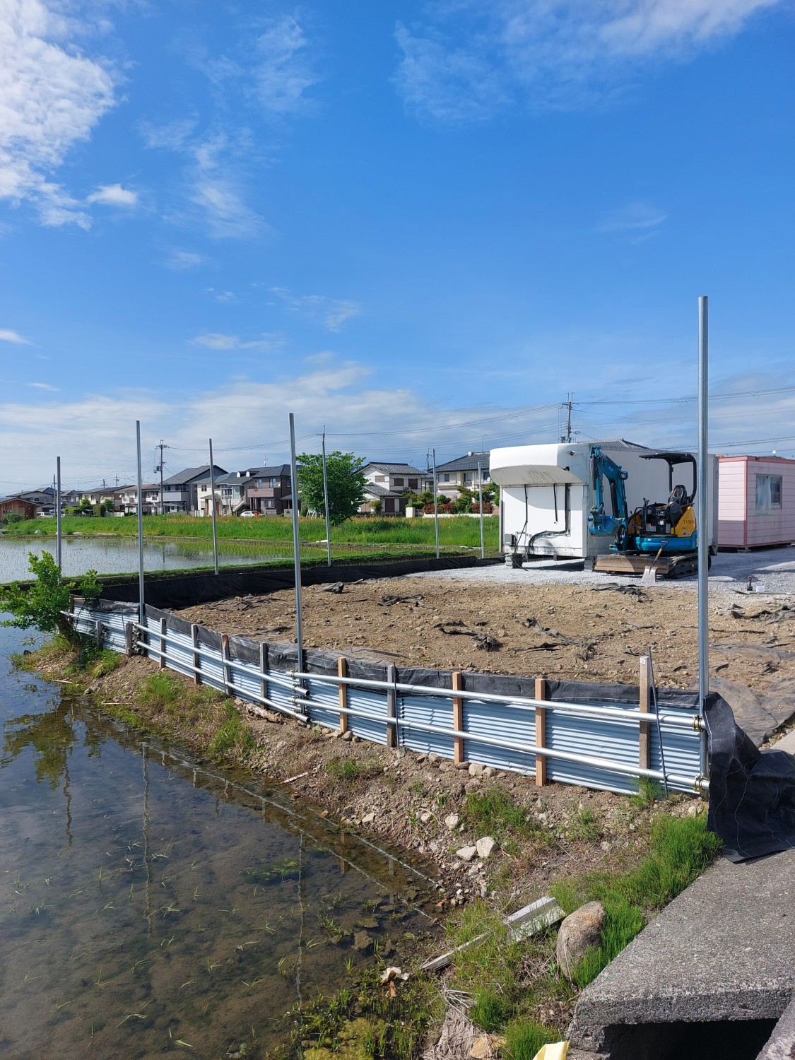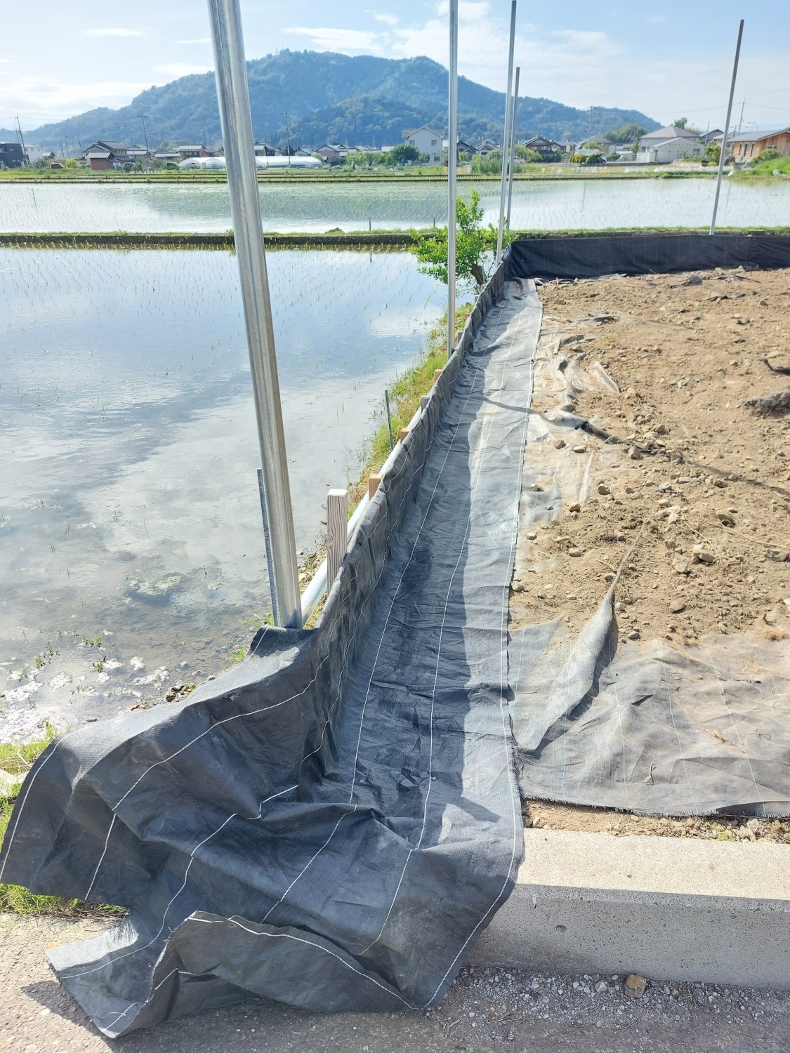 今回は単管を打ち込んで、さらに単管を組み込み以前より強固な土留めをおこないました。