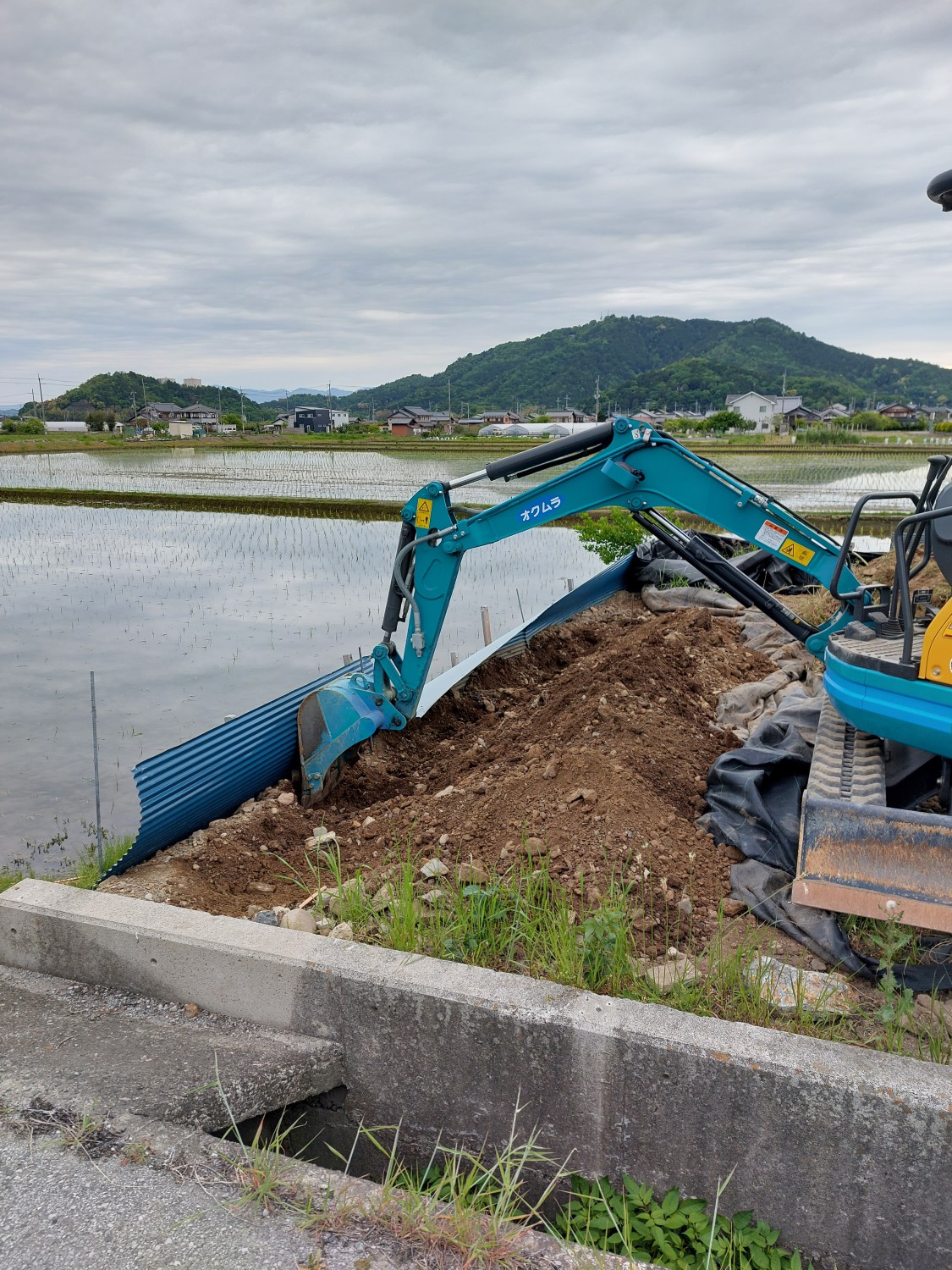 大雪による重みにて土留めがズレた為、もう一度掘り起こして土留めをやり直しました。