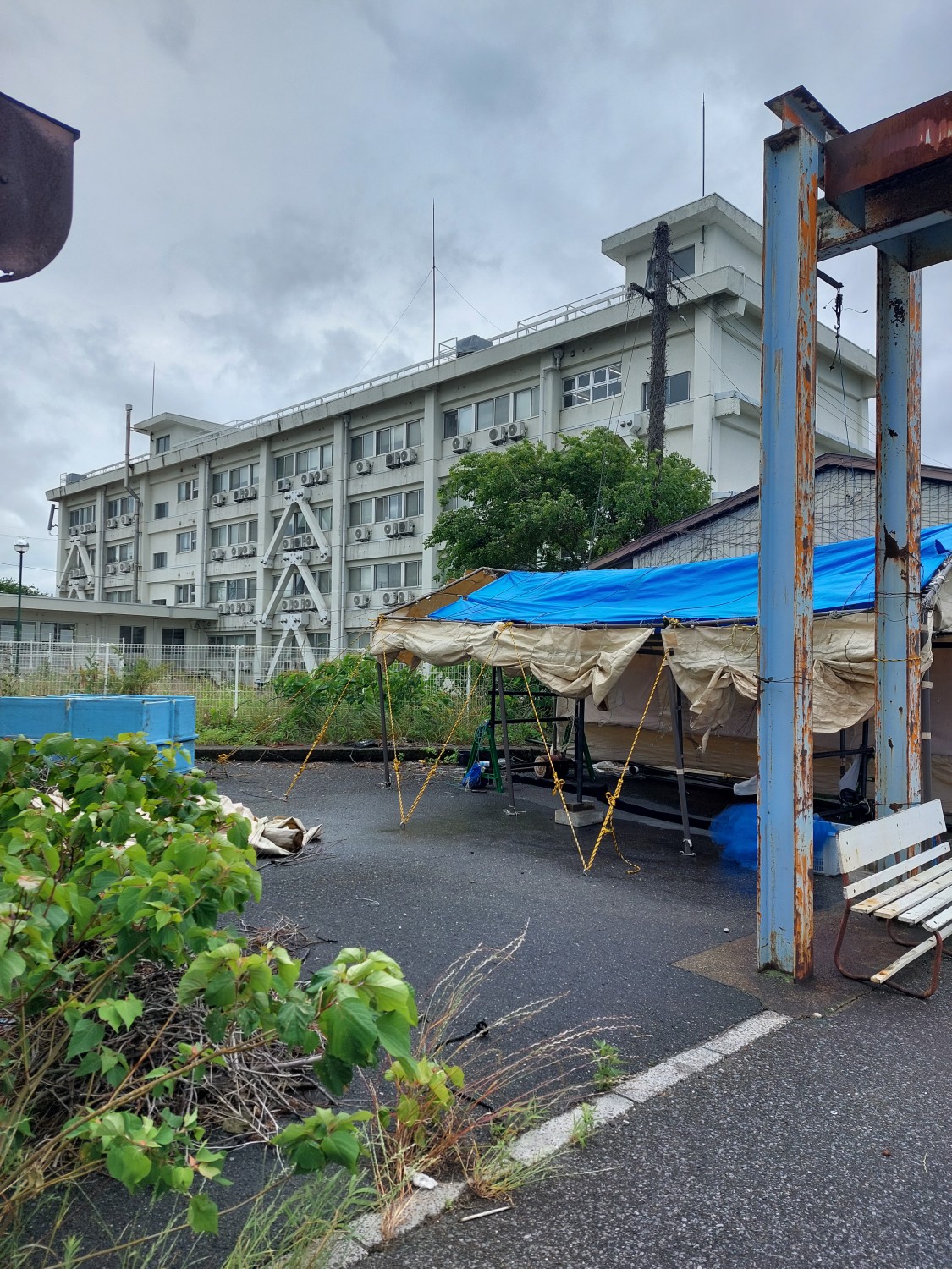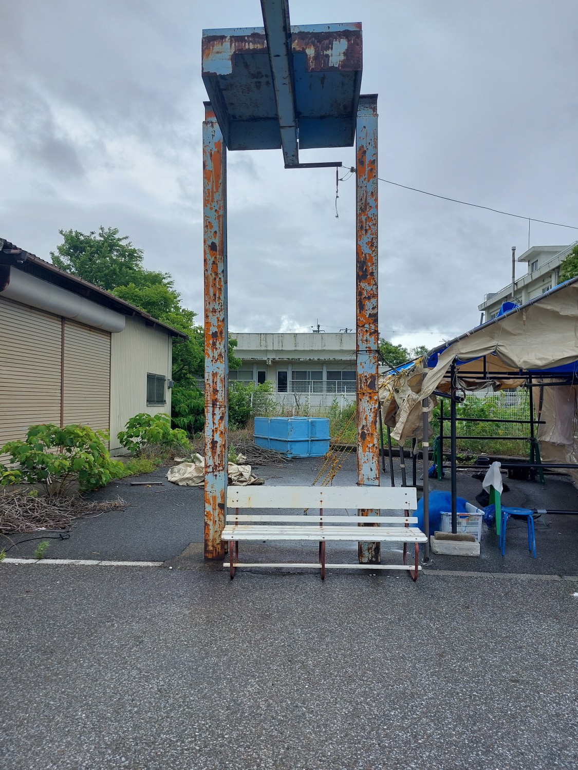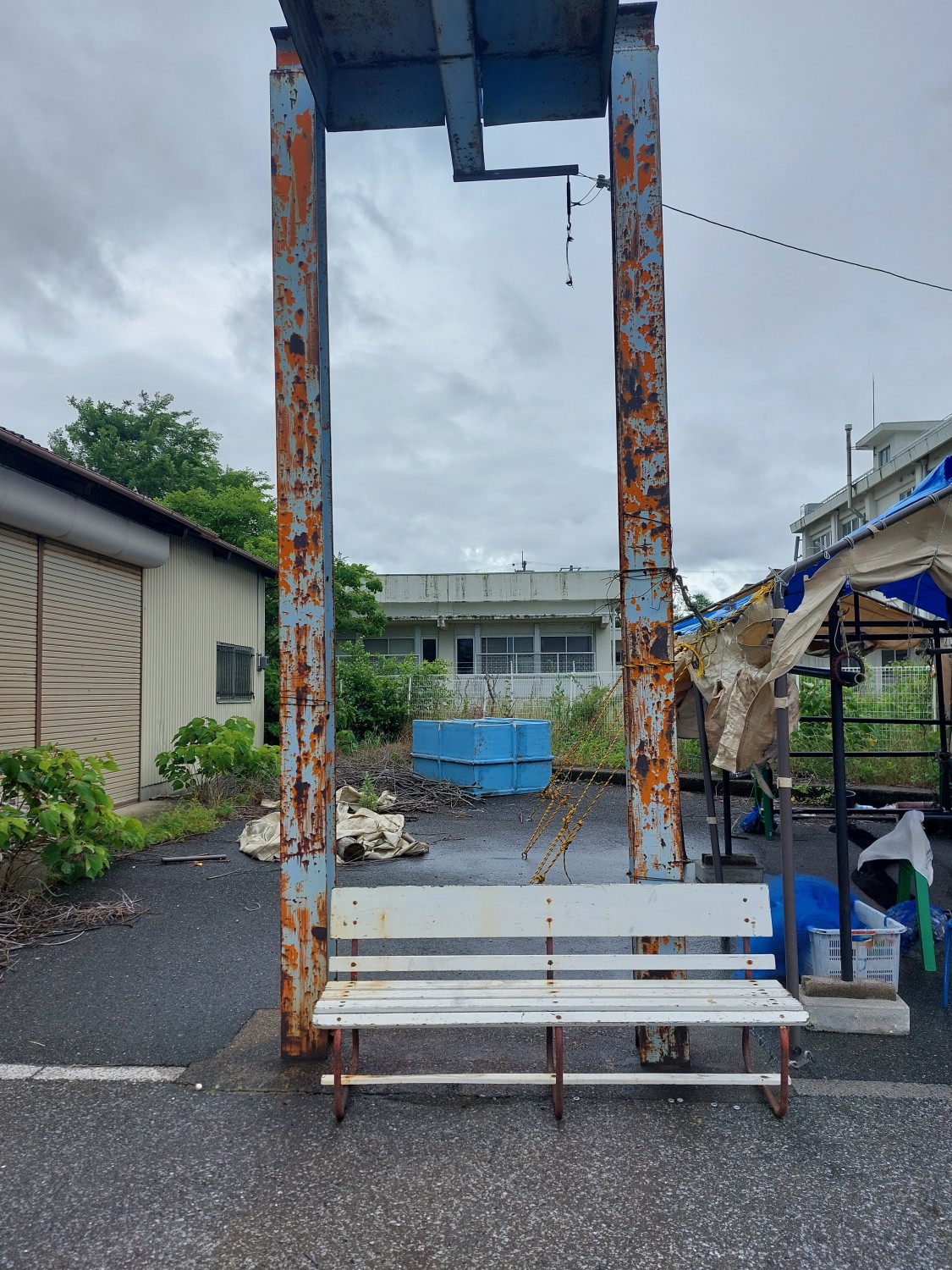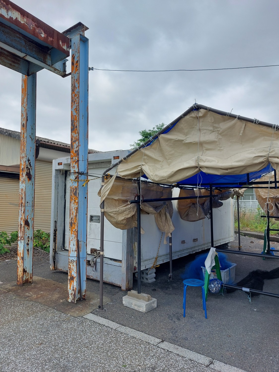 真正面から見ますと冷凍コンテナが傾いているように見えますが、手前のクレーンのH鋼(鉄骨)が左に結構傾いている為、そのように見えますが冷凍コンテナはしっかりと水平出しを行い、調整していますので真っ直ぐに設置出来ています。