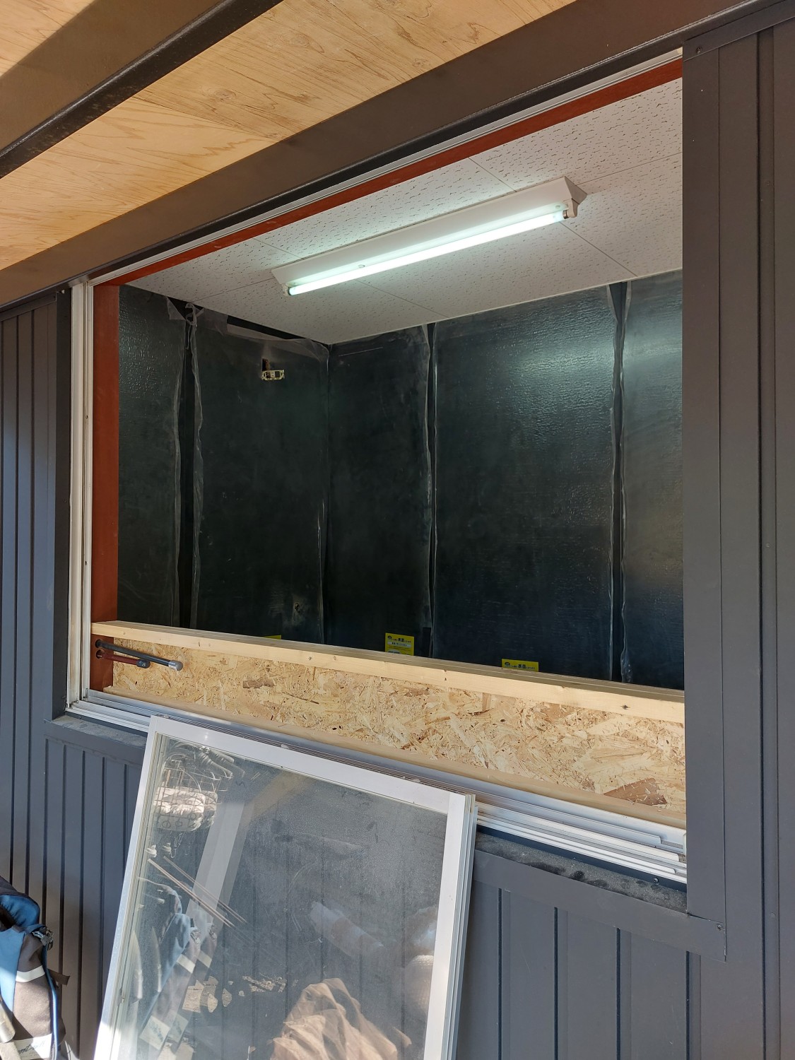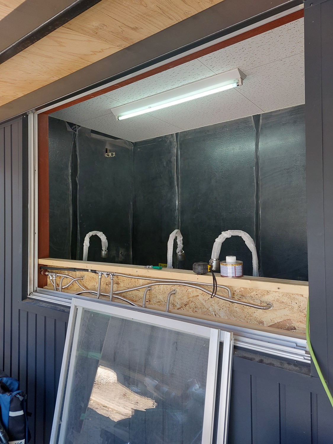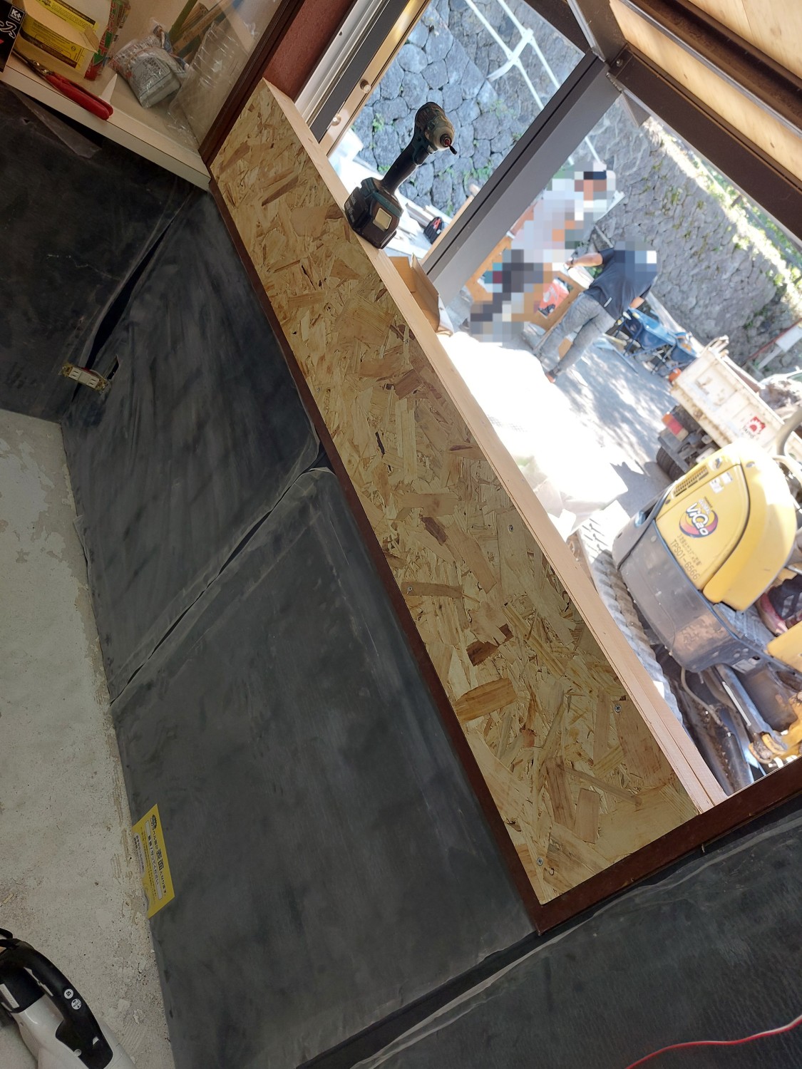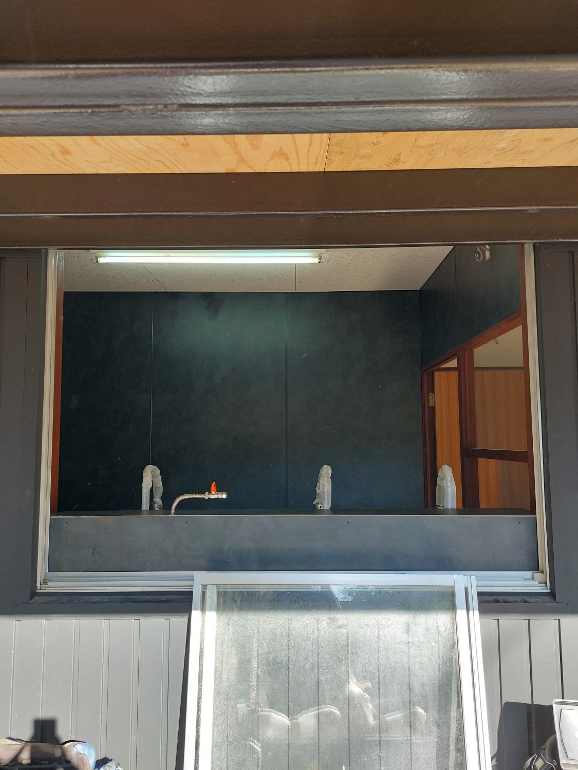 取り付けるにあたり設置場所が窓部分になるために、木板と垂木を用いて蛇口の取り付け部分を作りました。