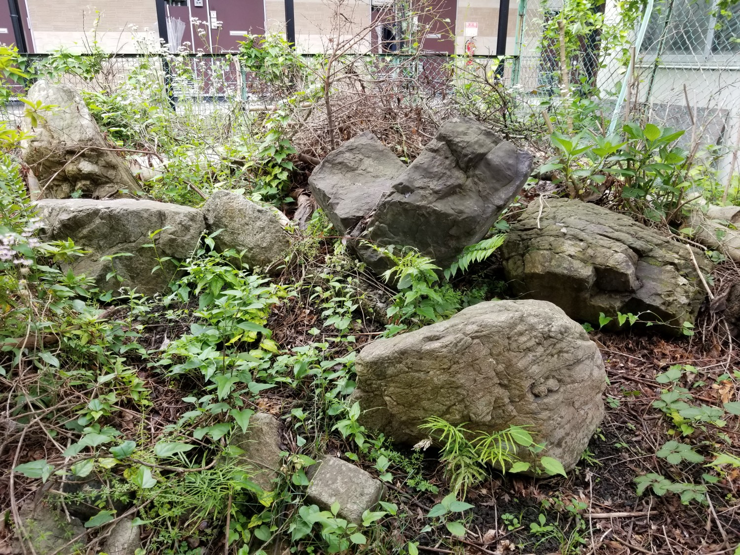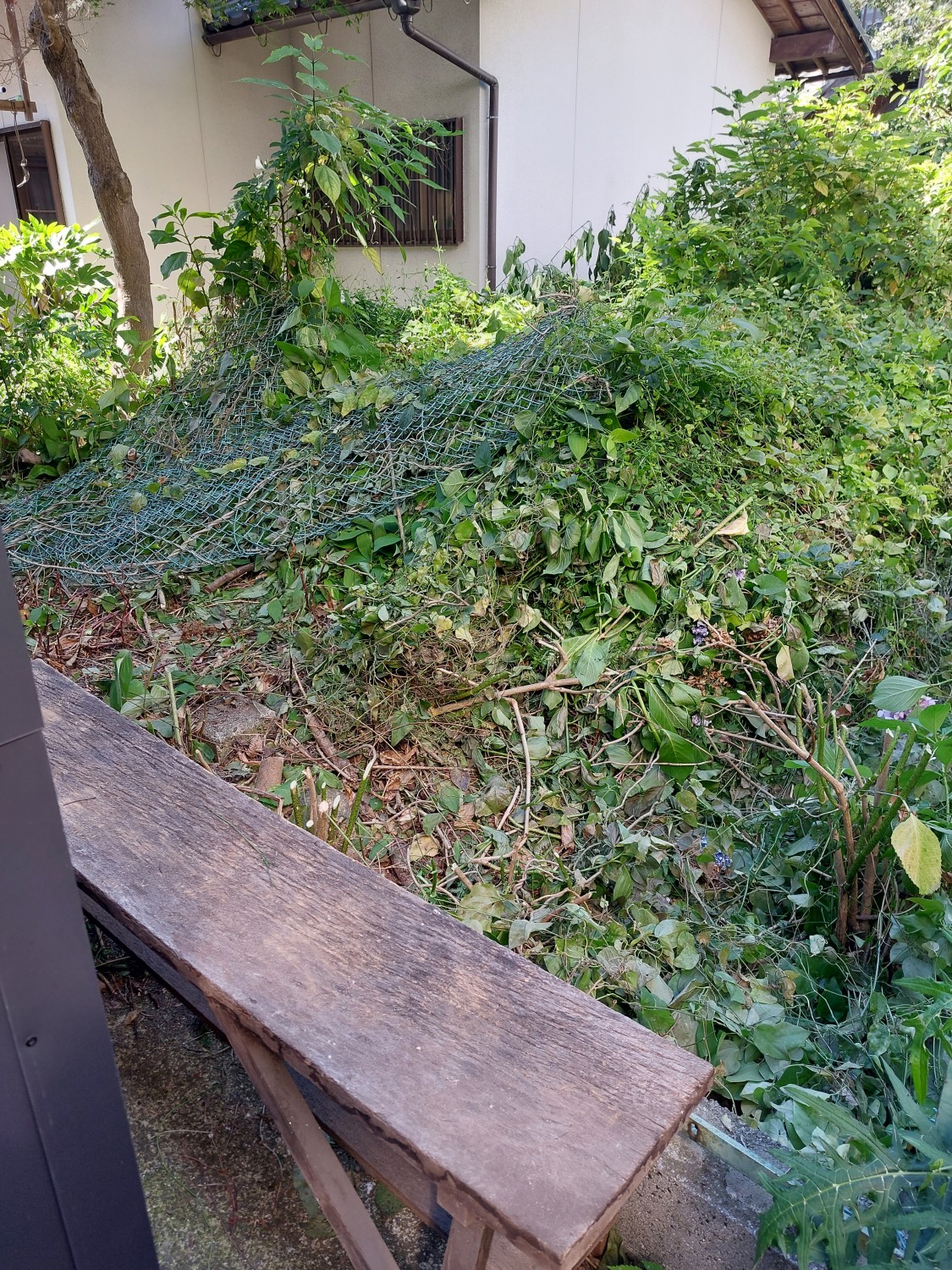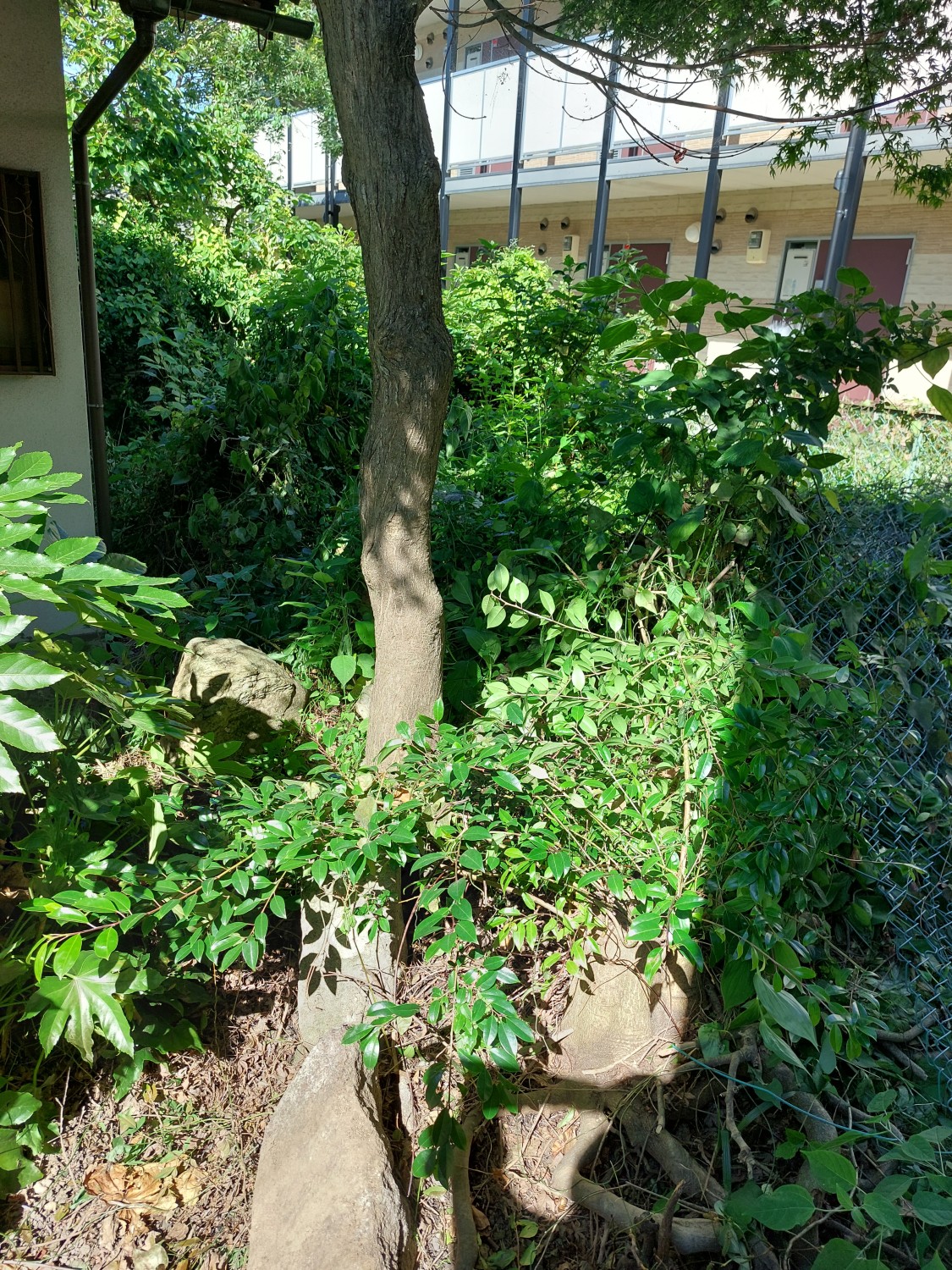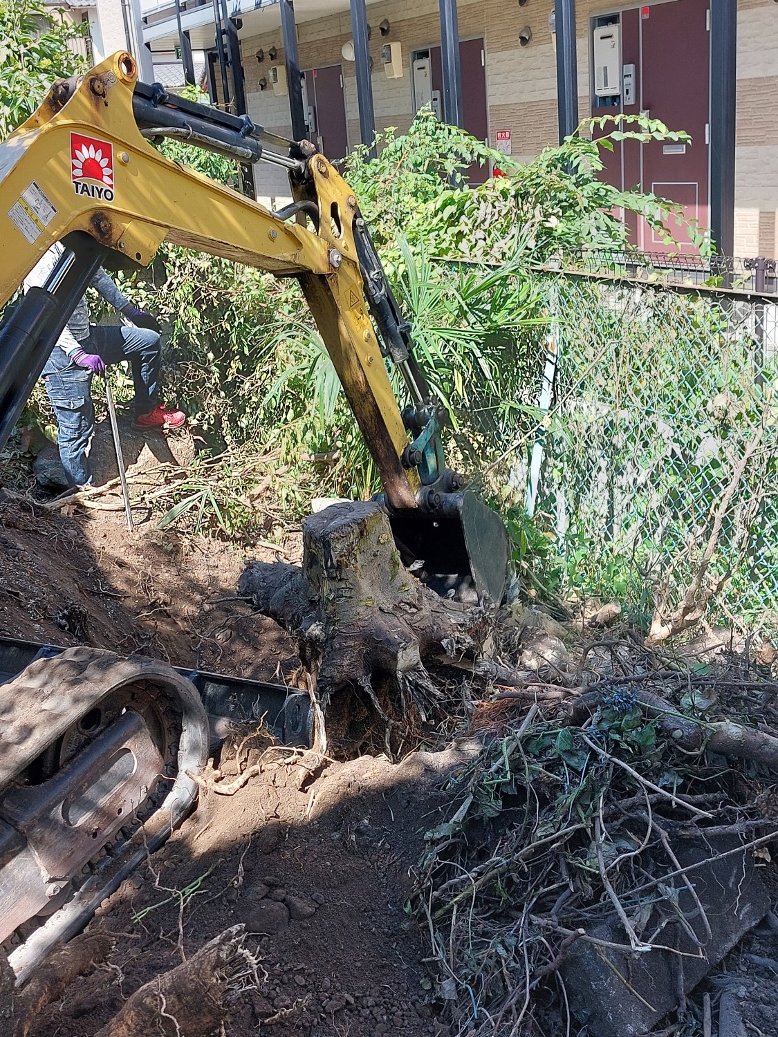 大きな岩や大木の根などを取り除き、雑草や土を鋤取り整地してから、砕石(C-30)を敷いてならしました。