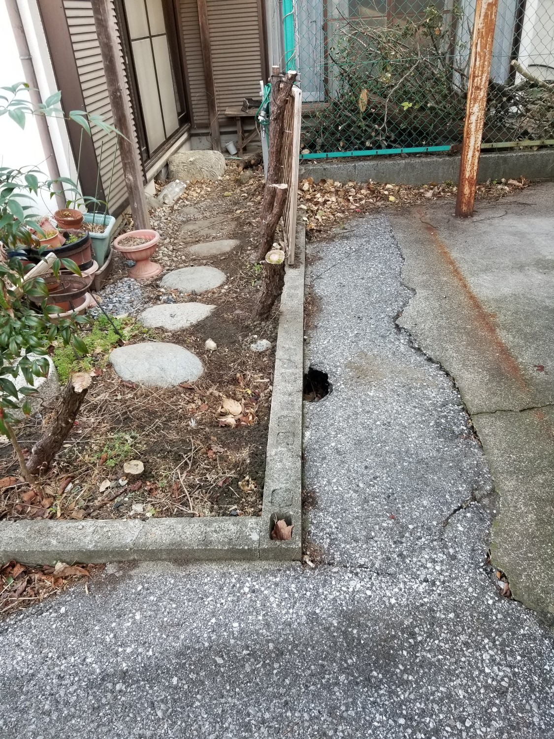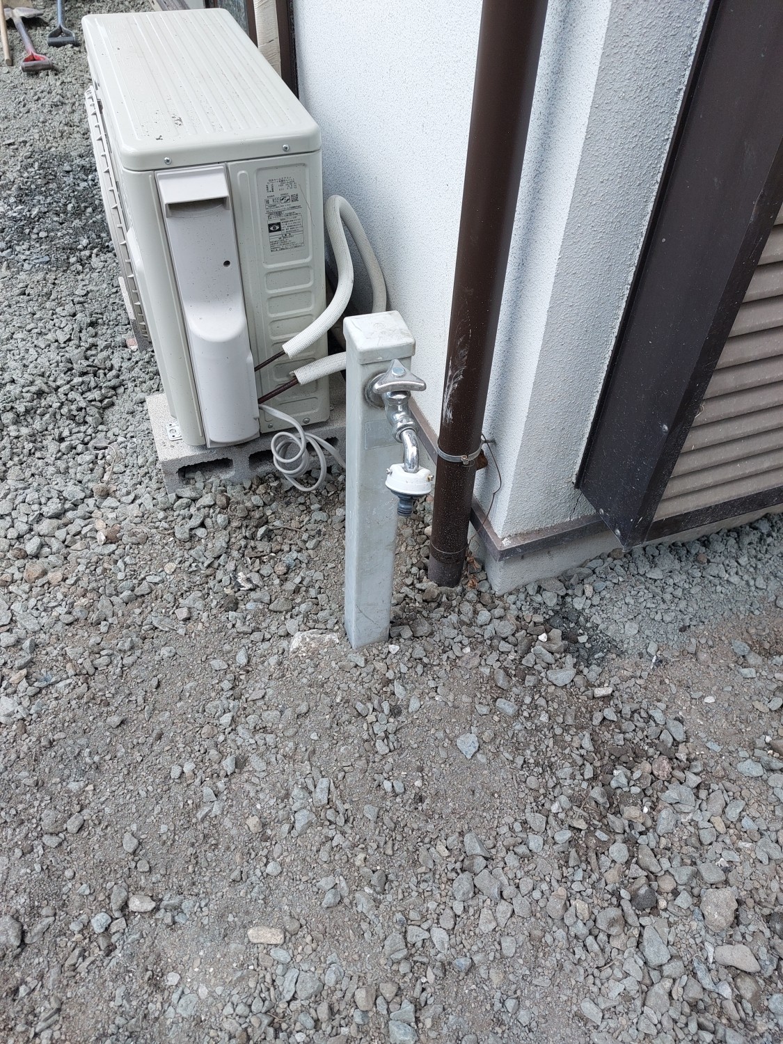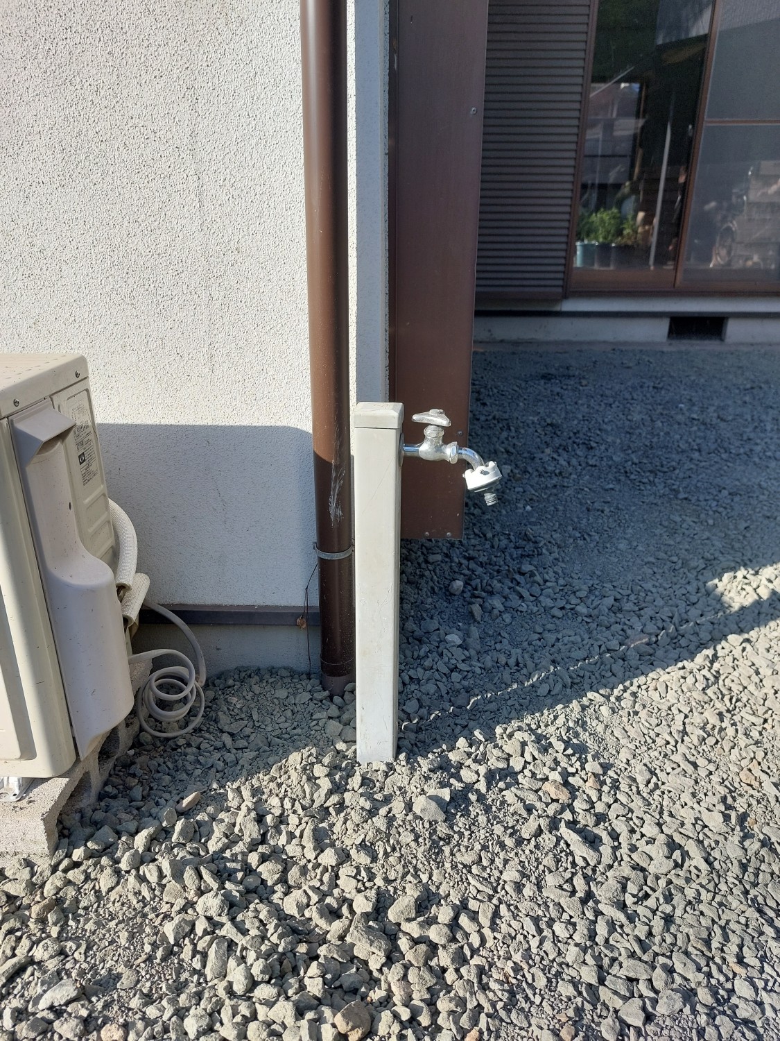 以前にあった場所では、今回整地した庭の真ん中にくることになってしまうので、水道配管をつなぎ替えて母屋側の角に移設しました。