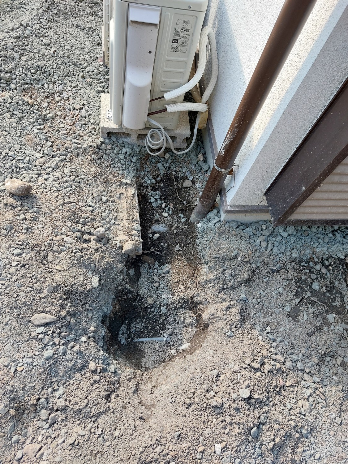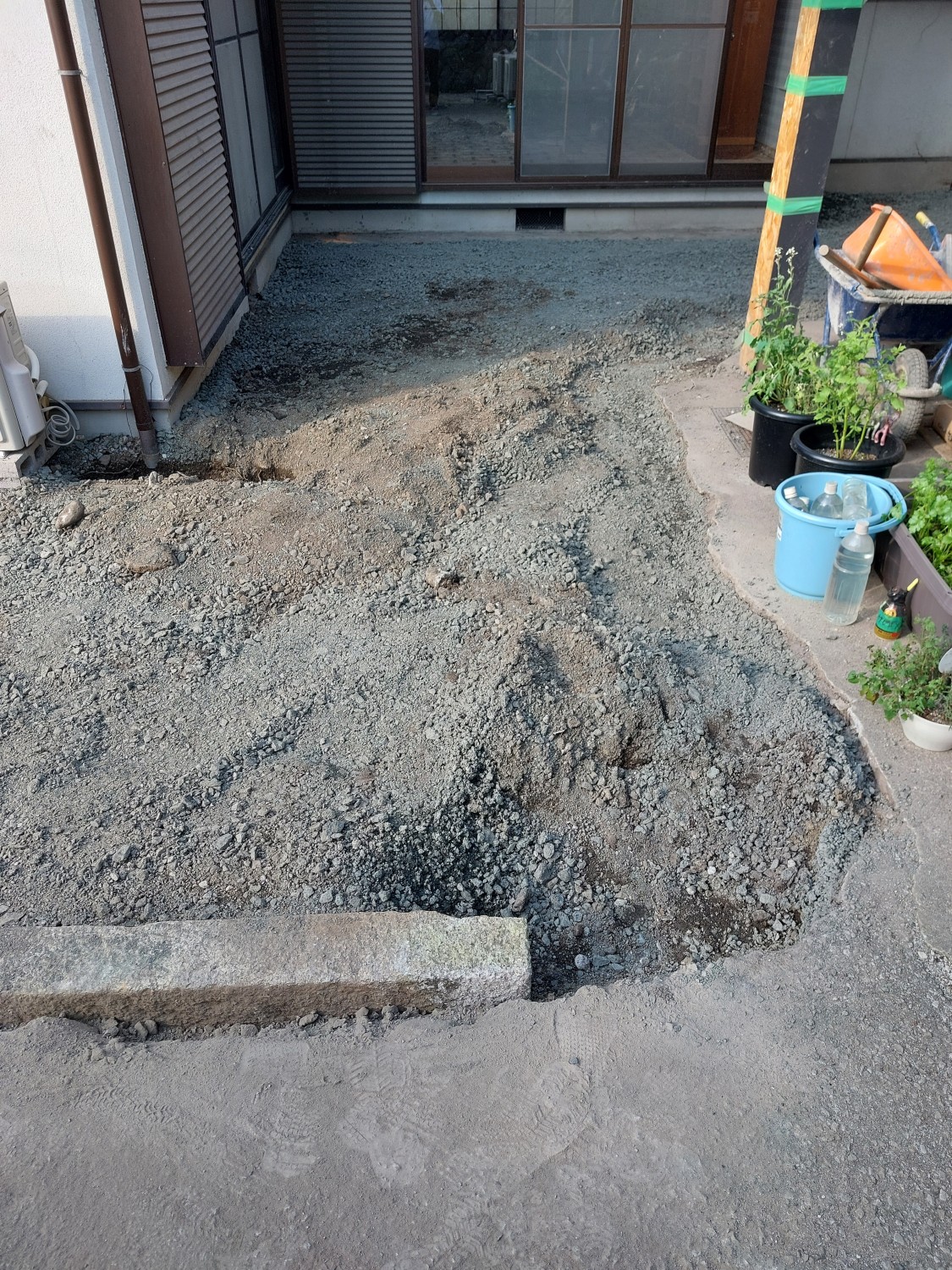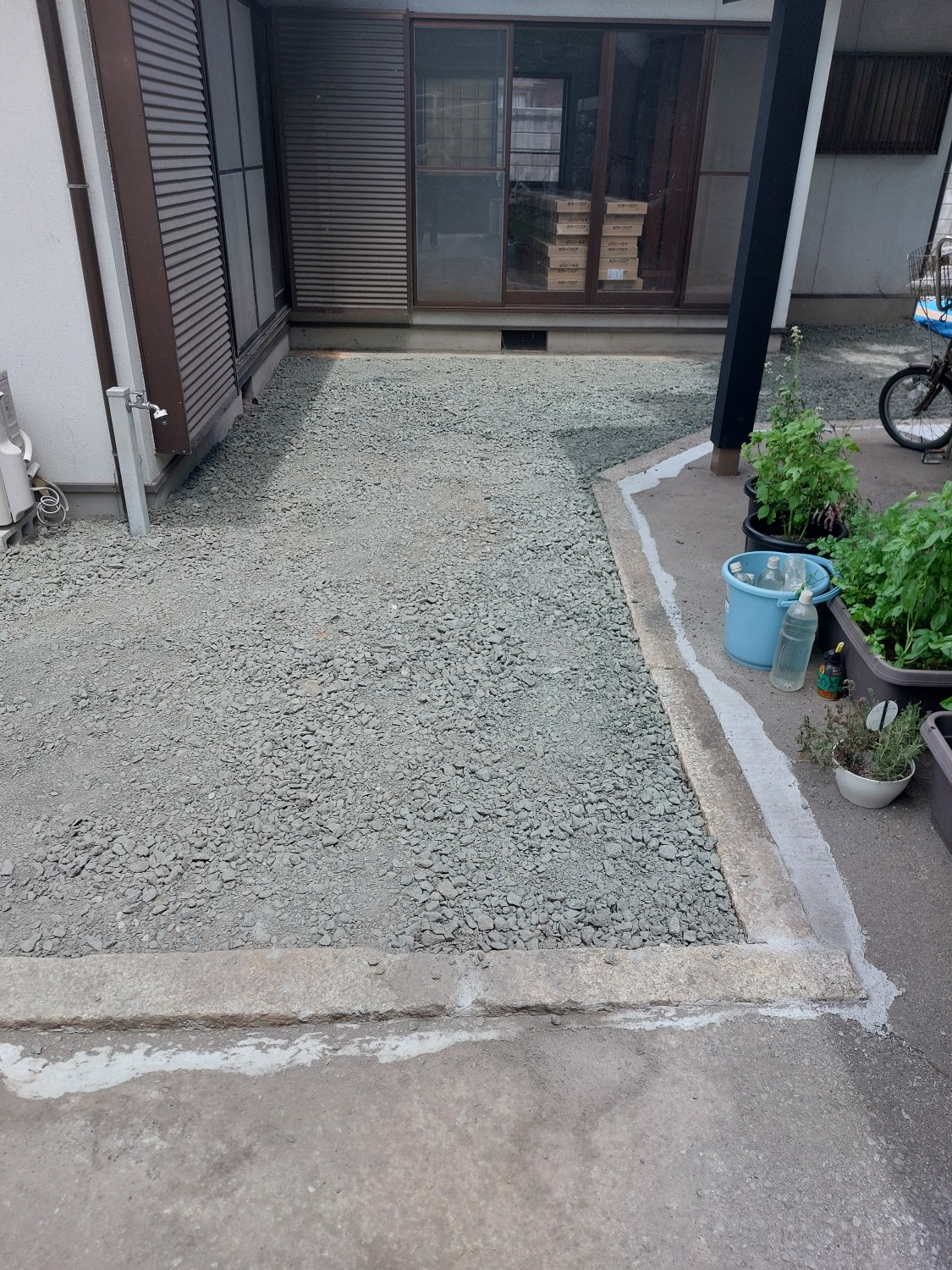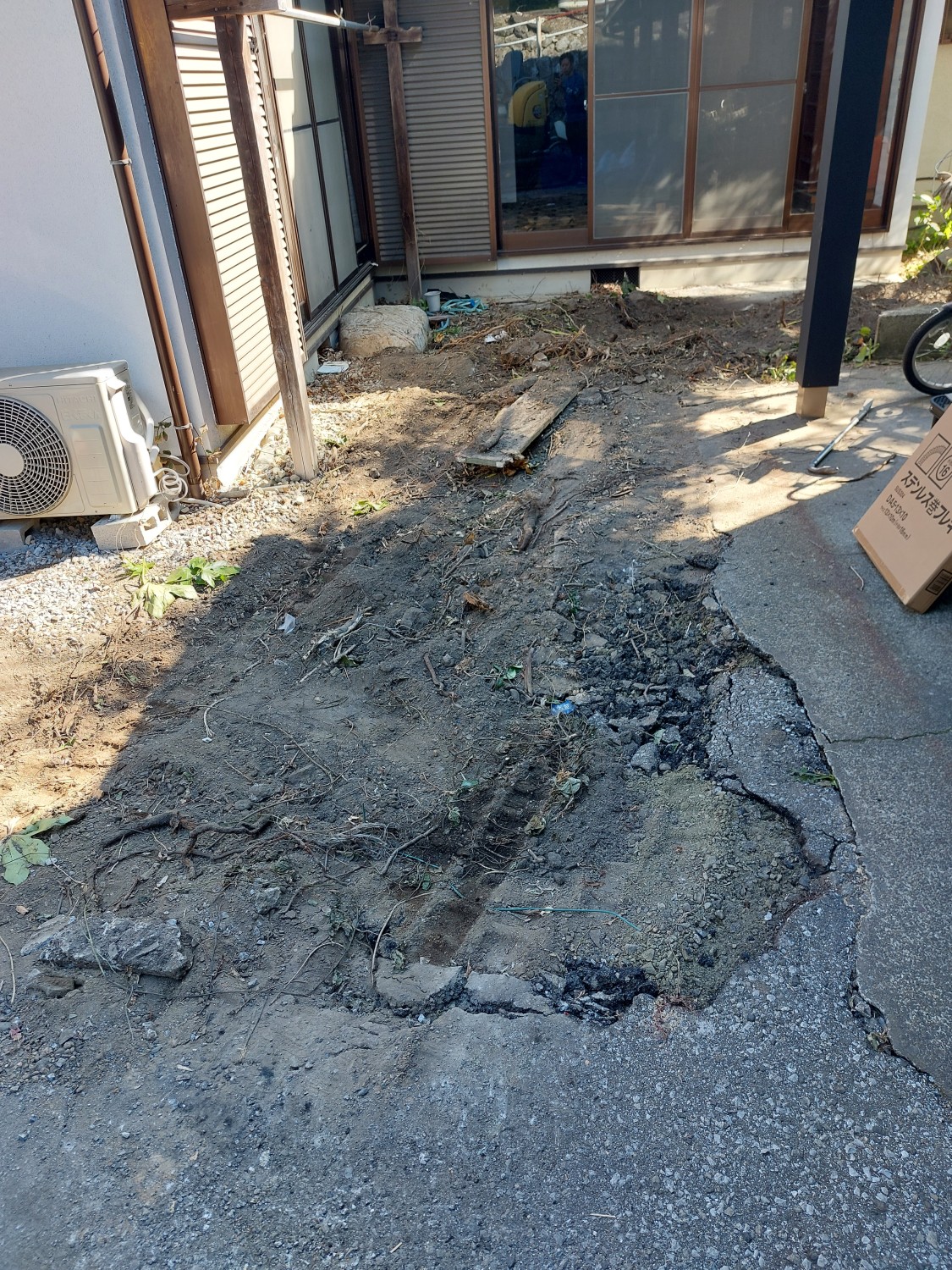 以前にあった場所では、今回整地した庭の真ん中にくることになってしまうので、水道配管をつなぎ替えて母屋側の角に移設しました。