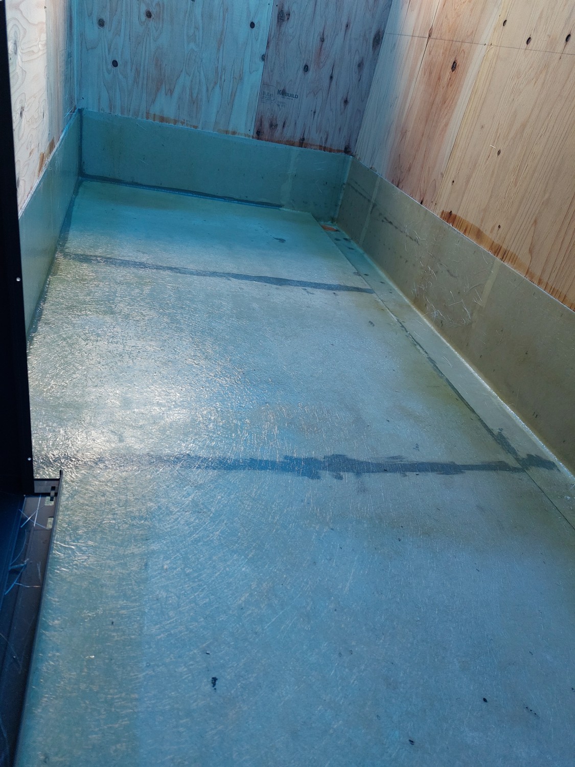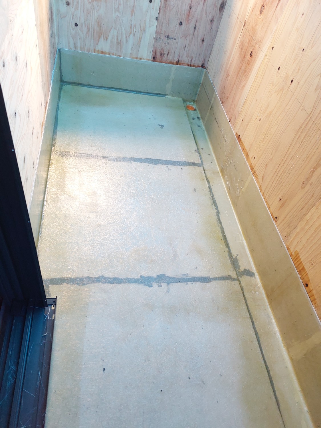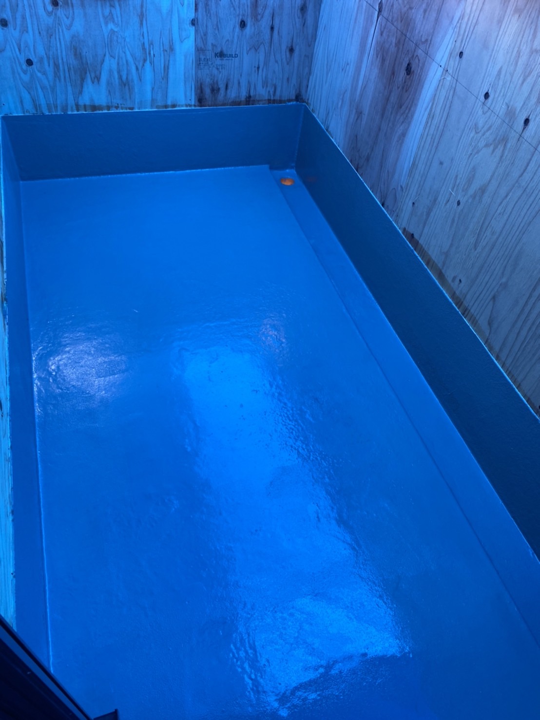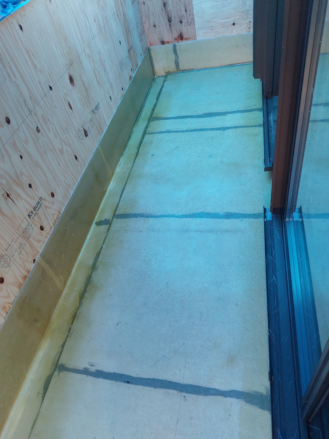 お家のリフォーム工事でベランダを新規で設置した為、ベランダ下部の防水処置としまして、FRP防水を施しました。