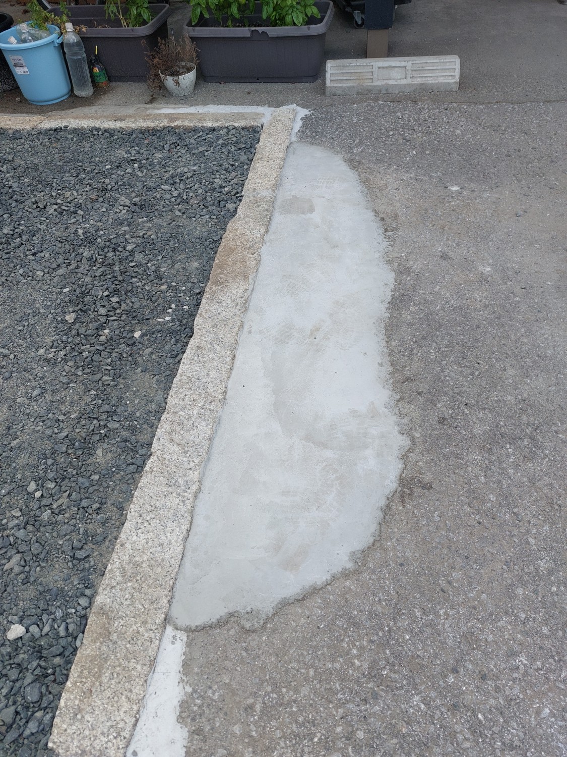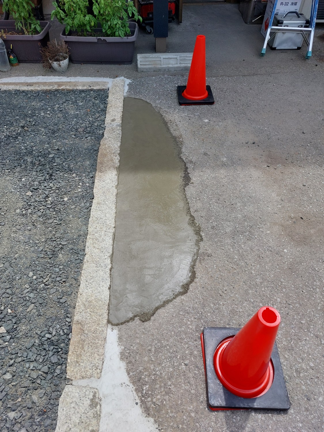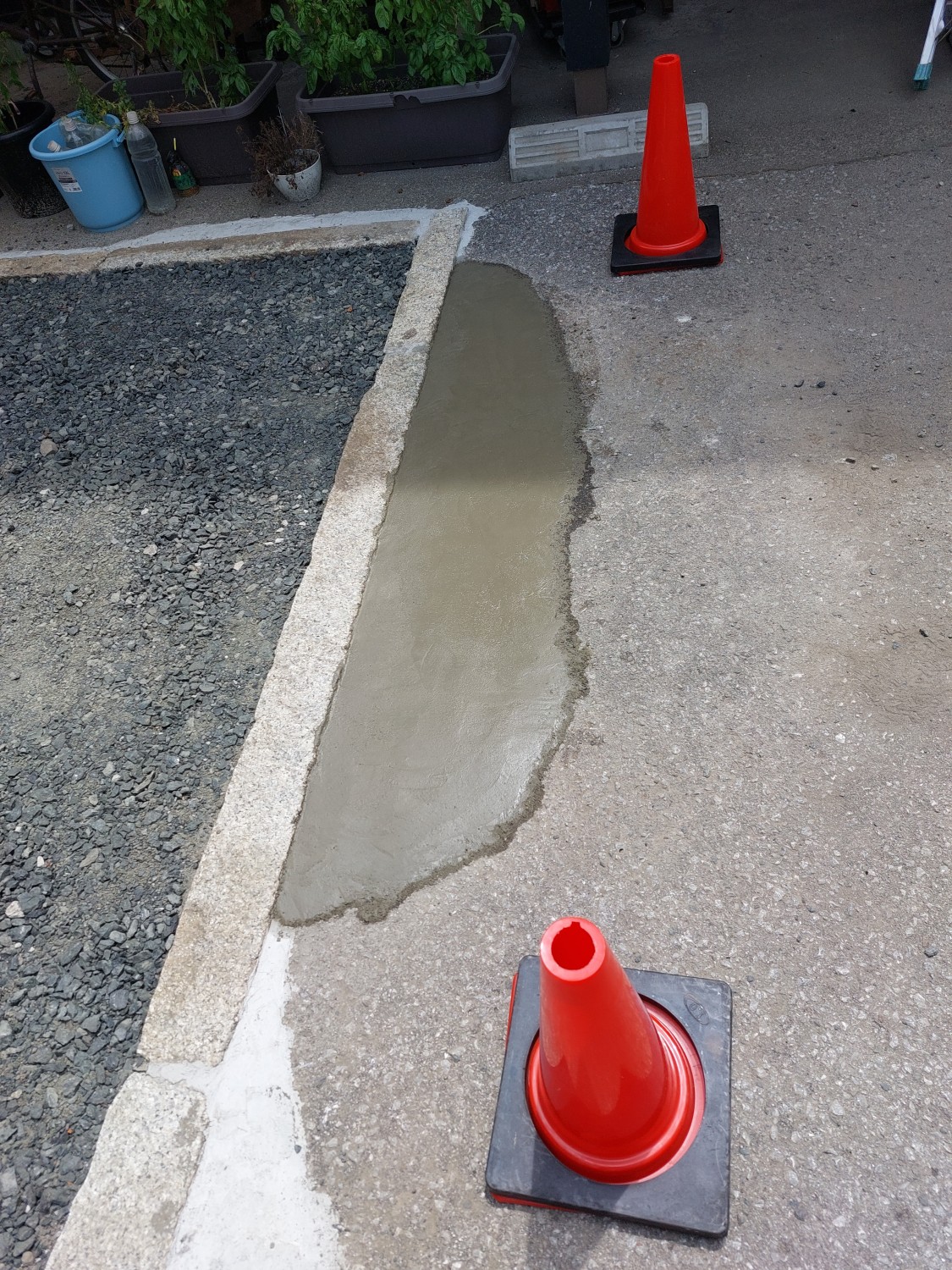 水たまりができるので、掃除をおこないモルタル接着剤を塗布し、その上にモルタルにて水たまりが出来ないように防ぎました。