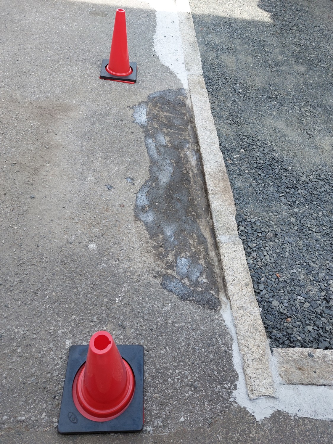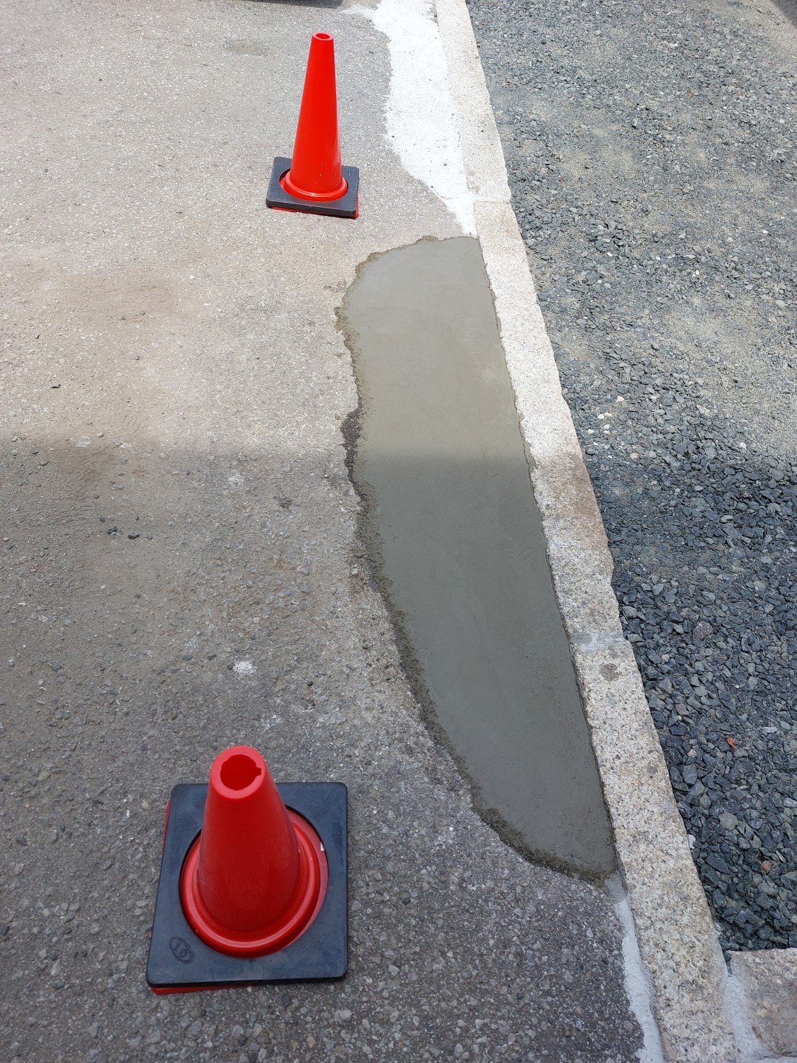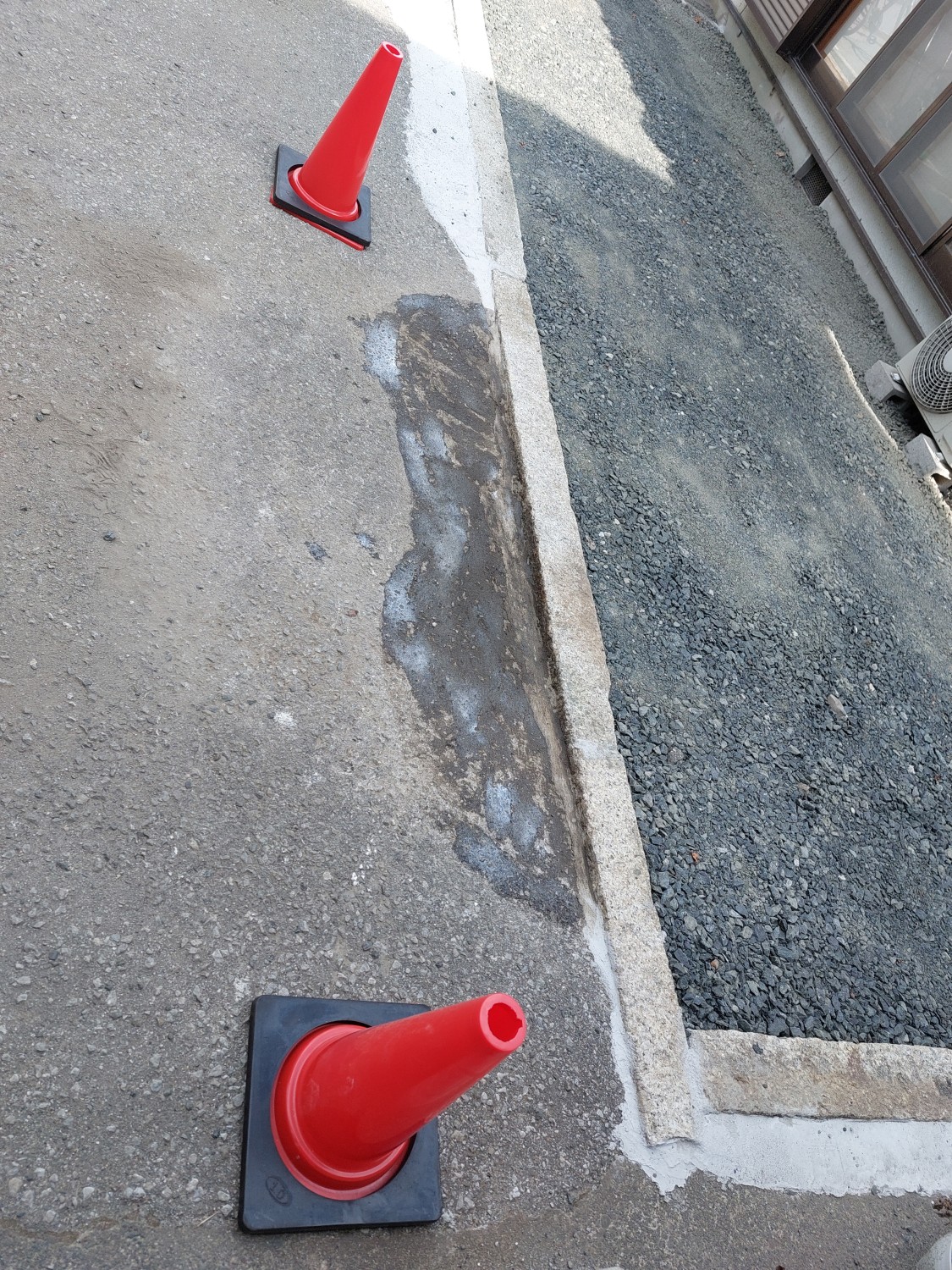 水たまりができるので、掃除をおこないモルタル接着剤を塗布し、その上にモルタルにて水たまりが出来ないように防ぎました。