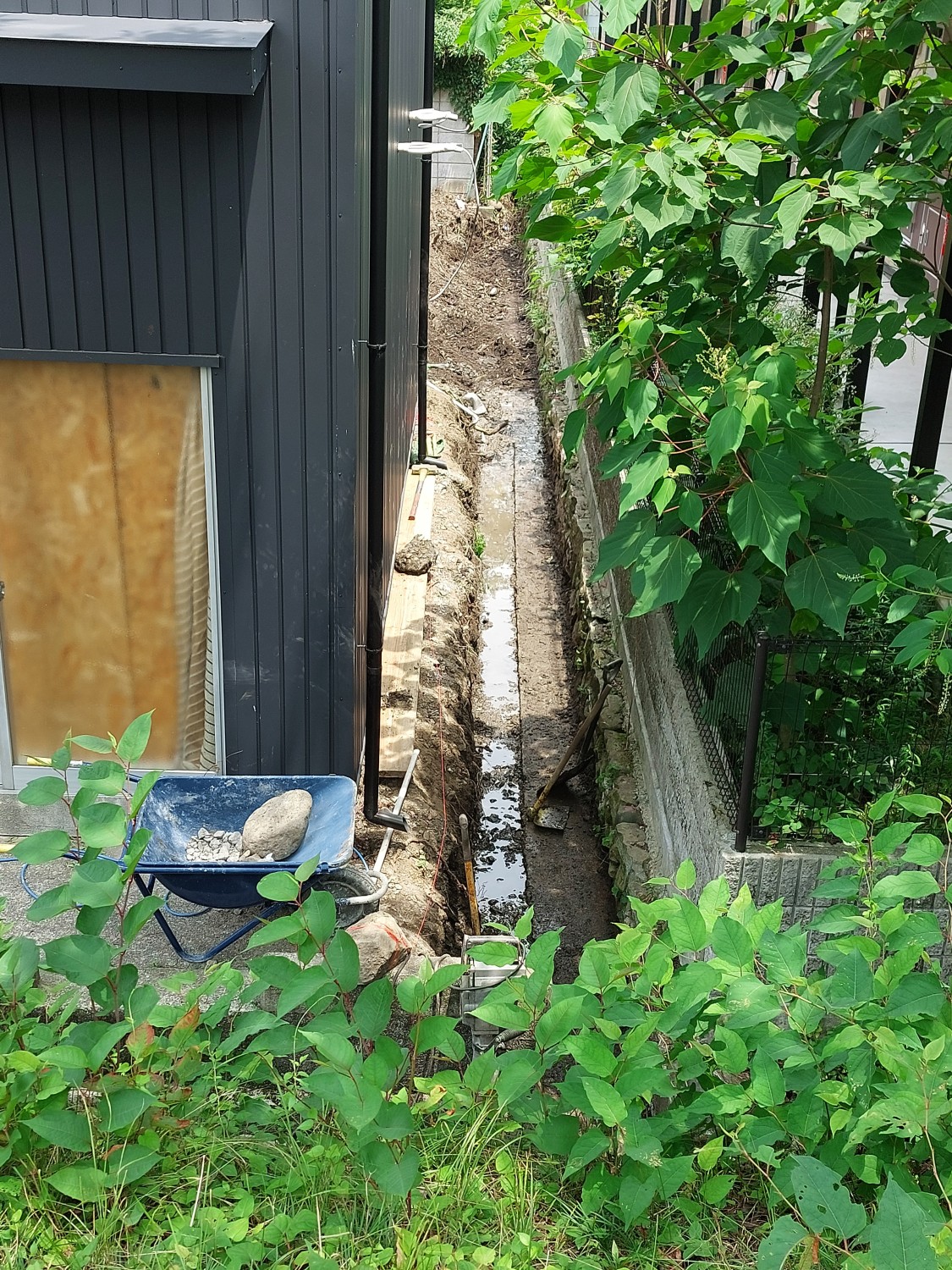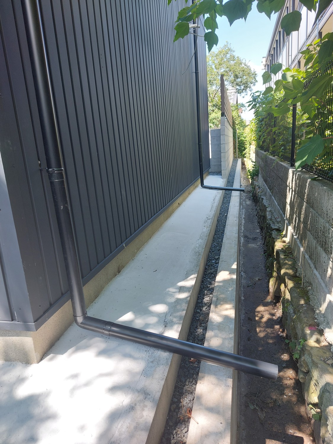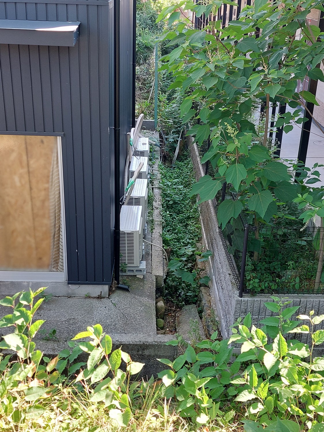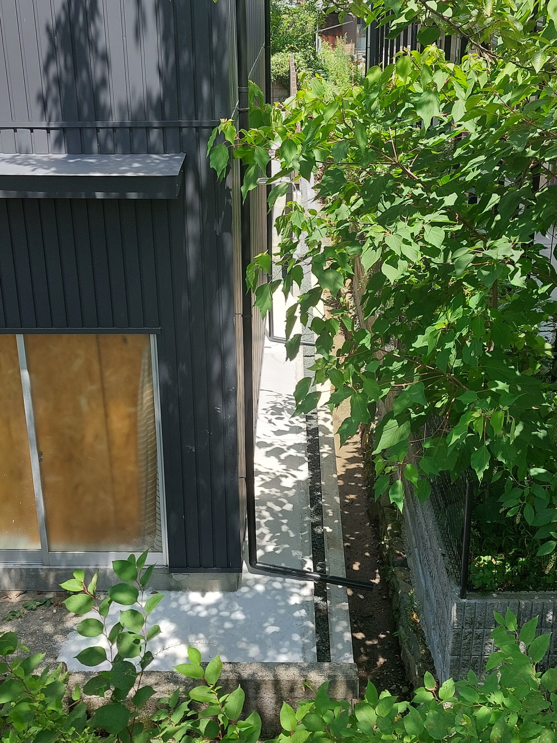 これで、事業所・庭部の裏の基礎・水路擁壁・犬走り・ブロック塀・人工木ウッドフェンス等の施工完了です。
