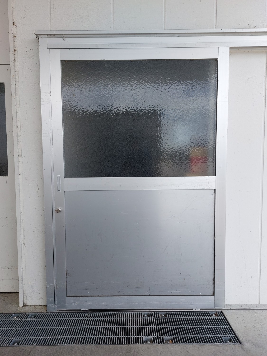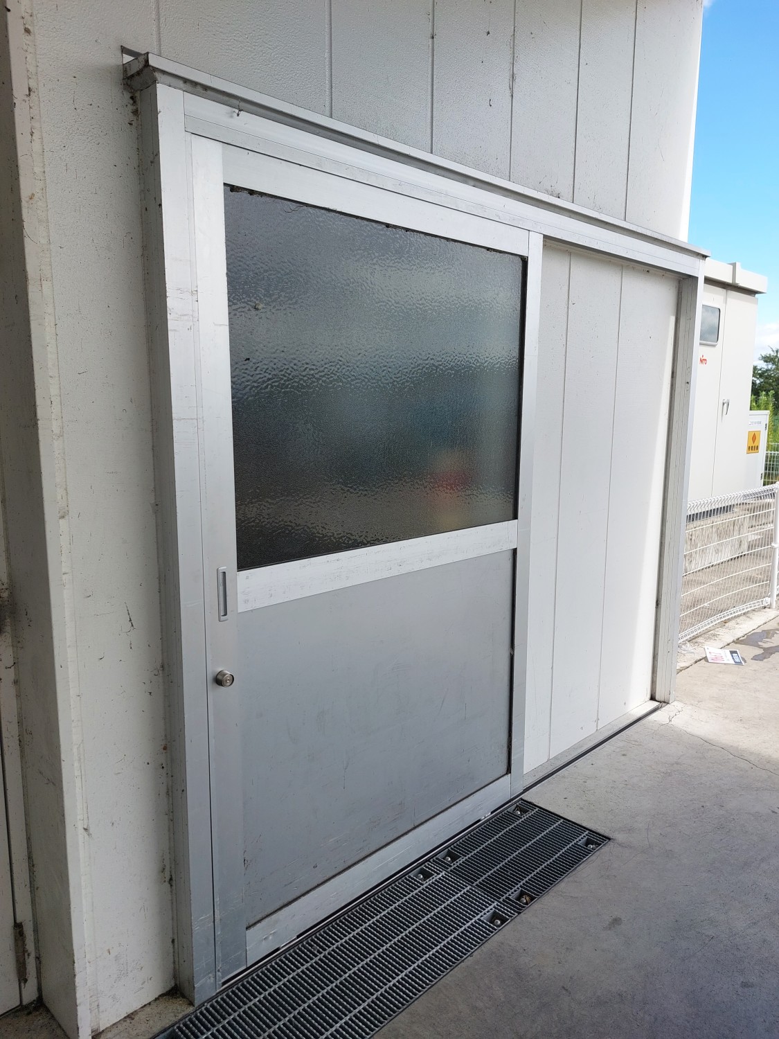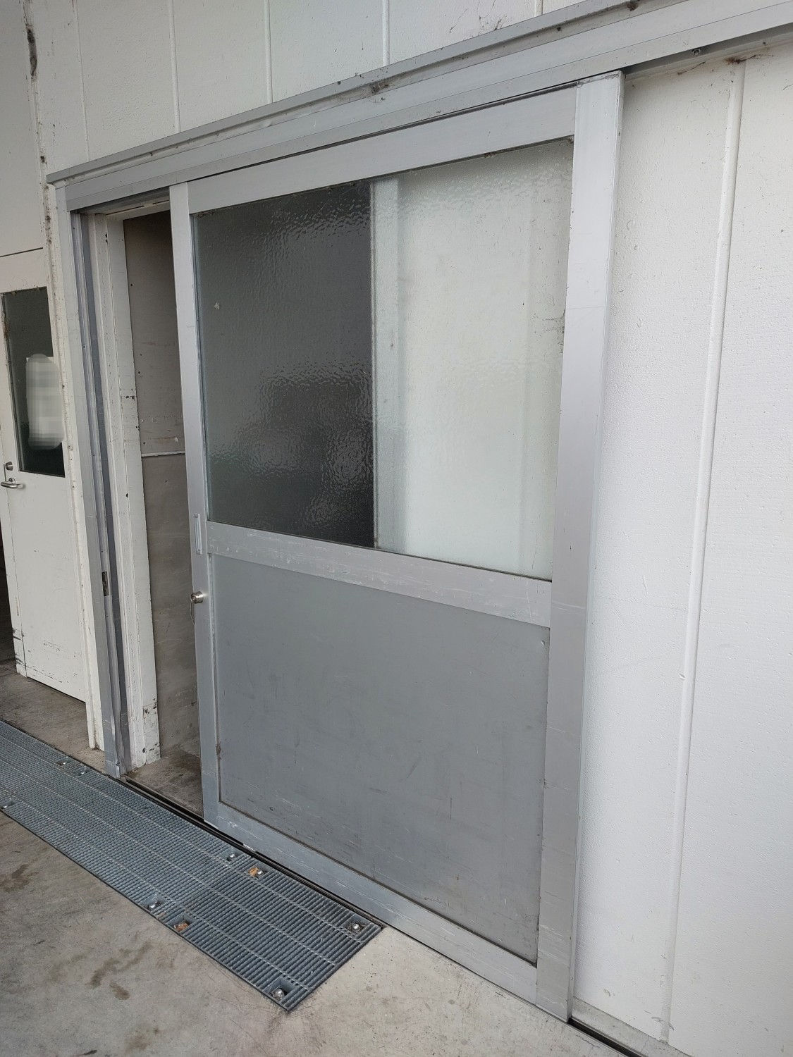 そして、変形していましたアルミサッシ部分も応急処置として成形し、引き戸ドアを復旧しました。