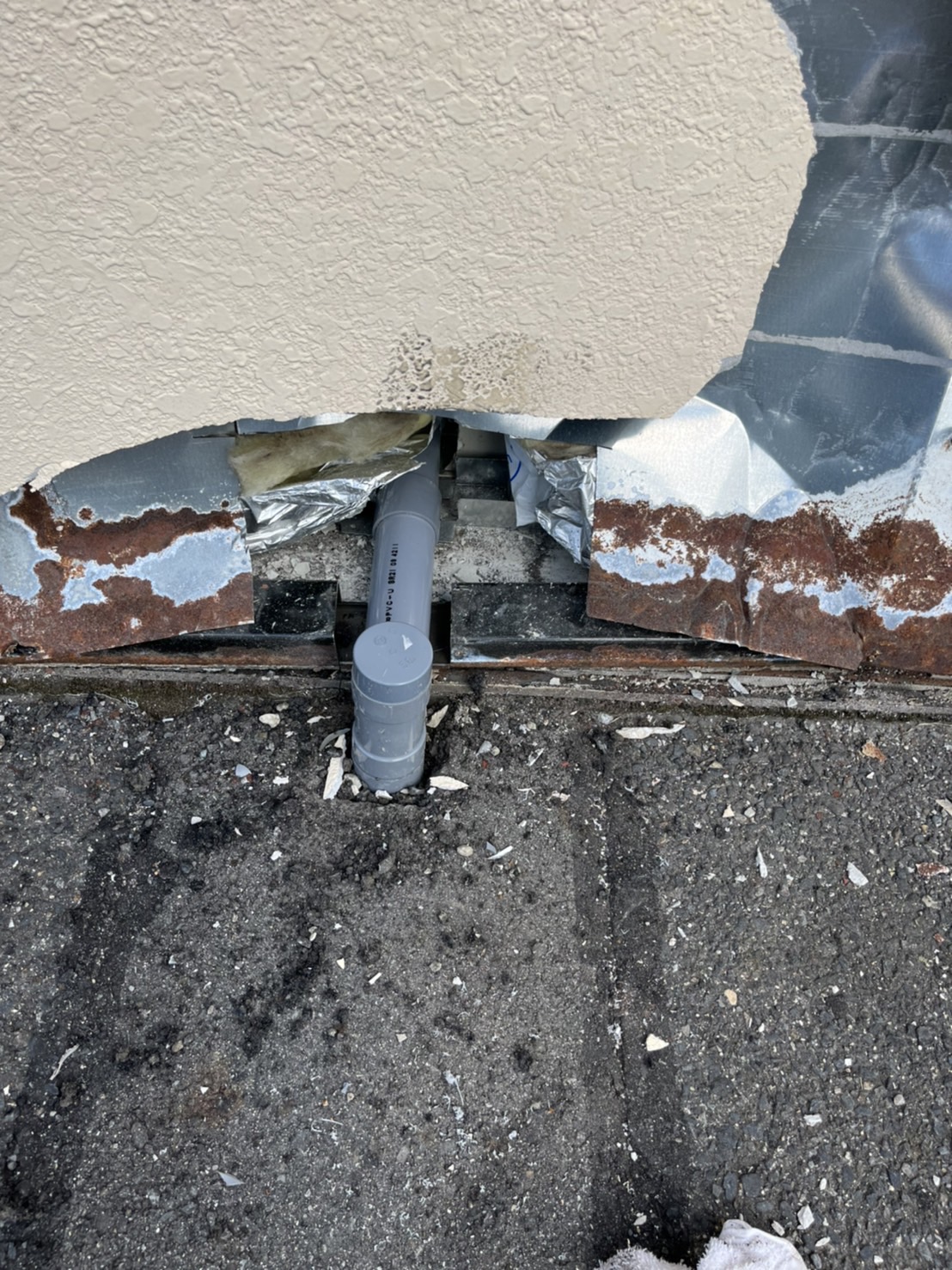 大型冷凍庫の排水配管が、屋外の方は破損していましたので排水配管をやり替えました。