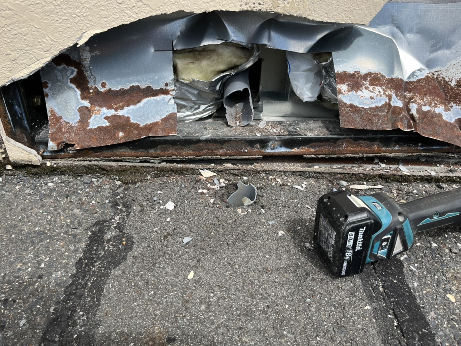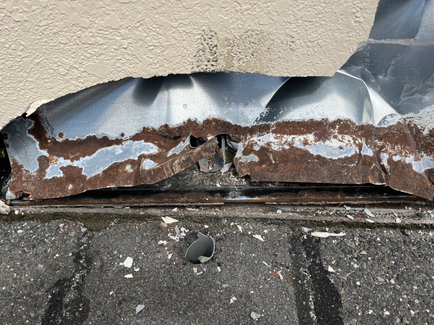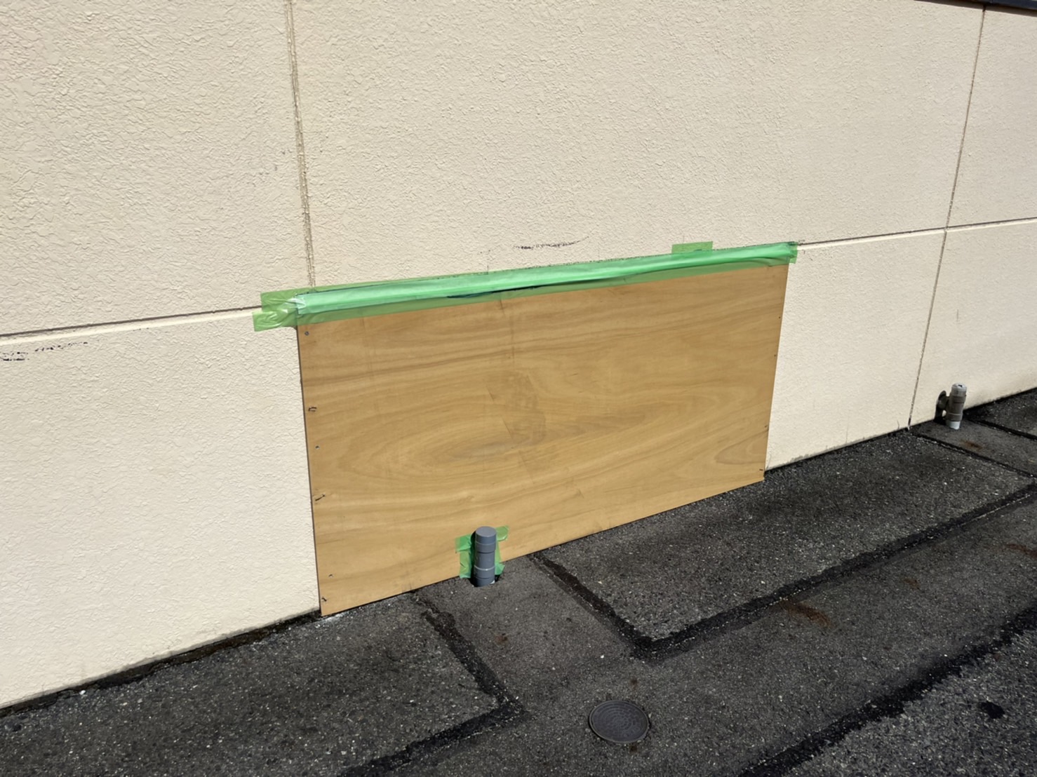 そして最後に応急処置のコンパネを加工して、外壁に再取り付けをおこない復旧しました。