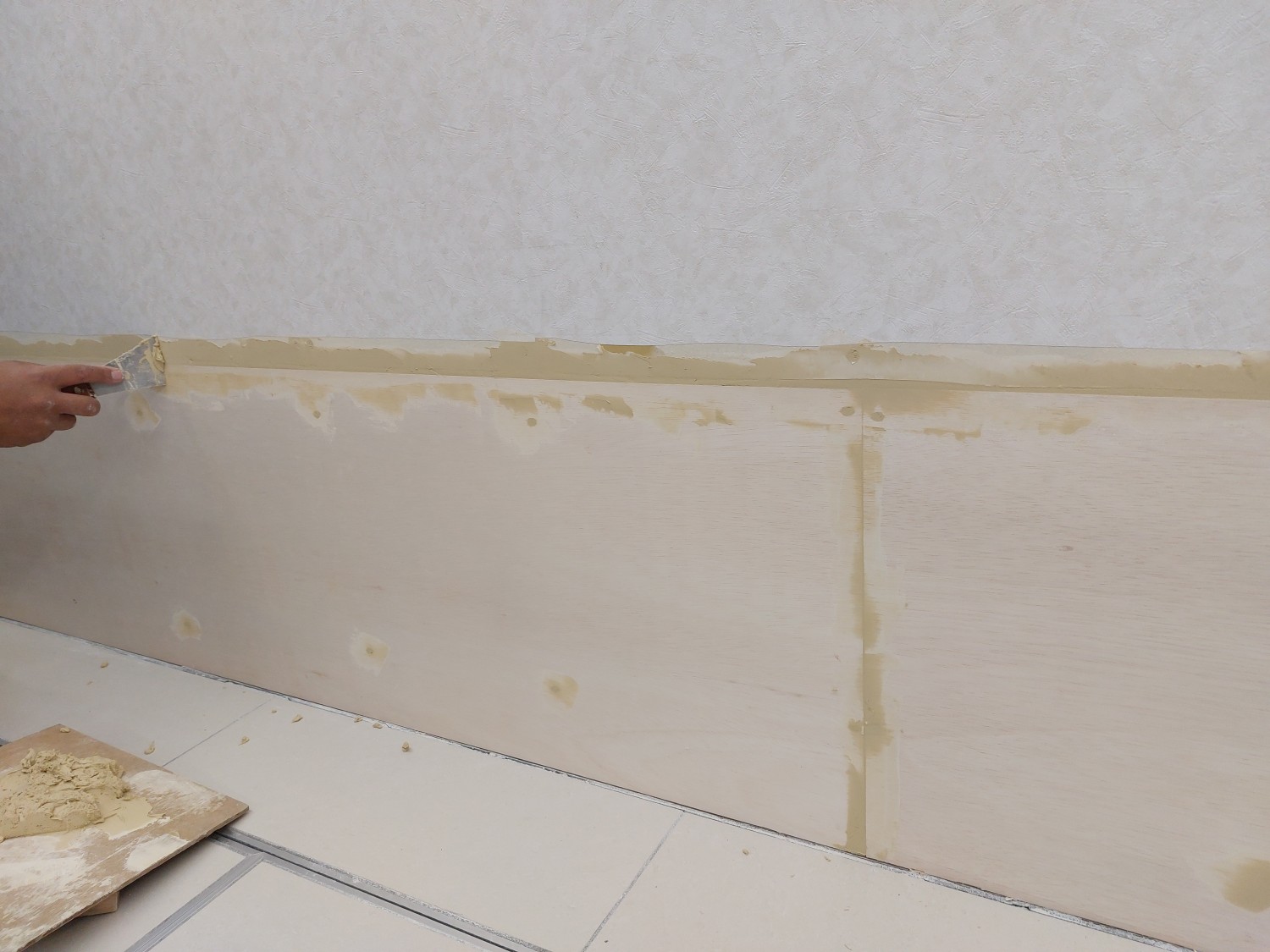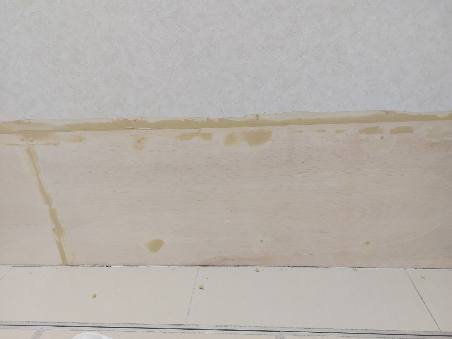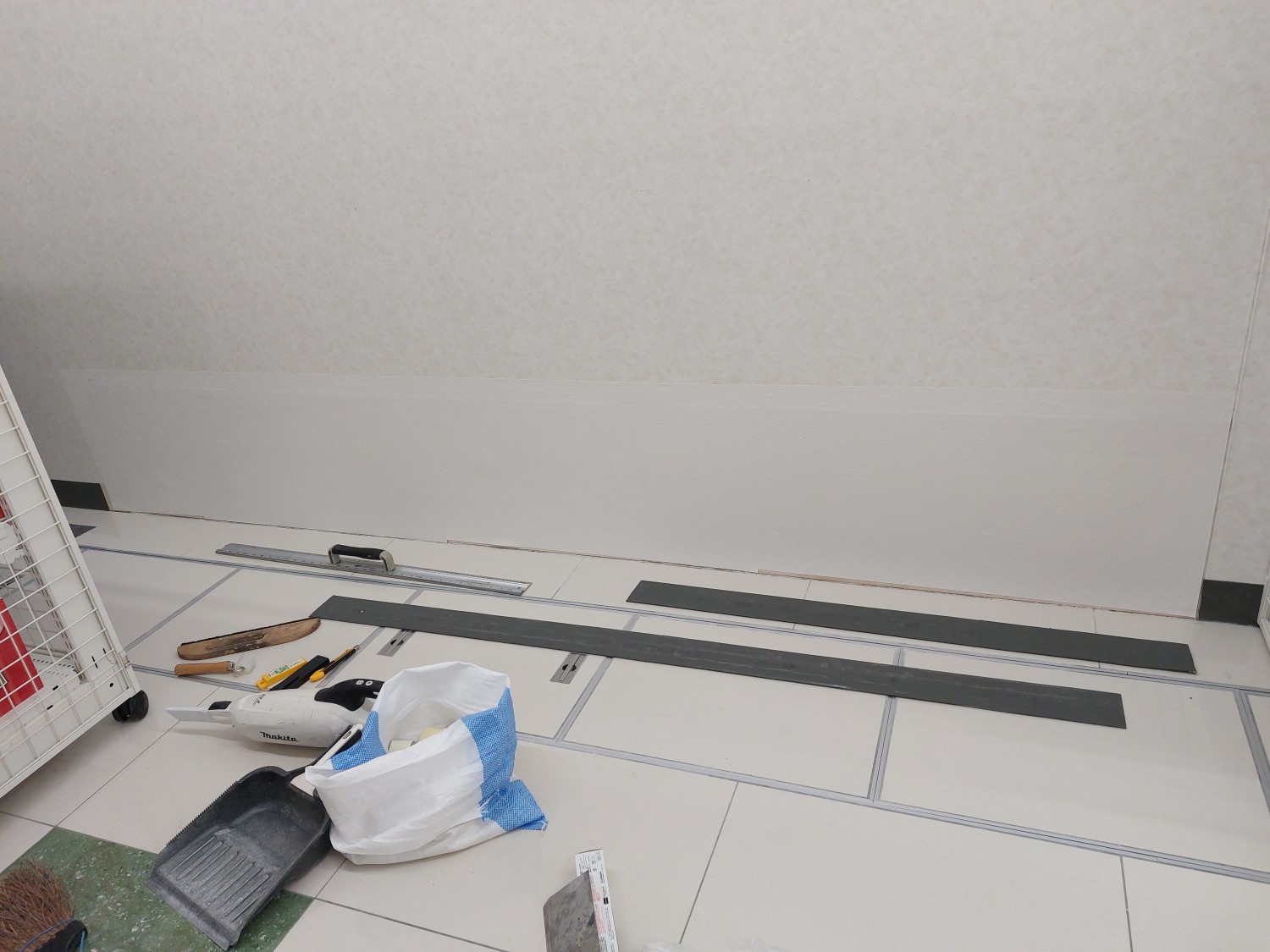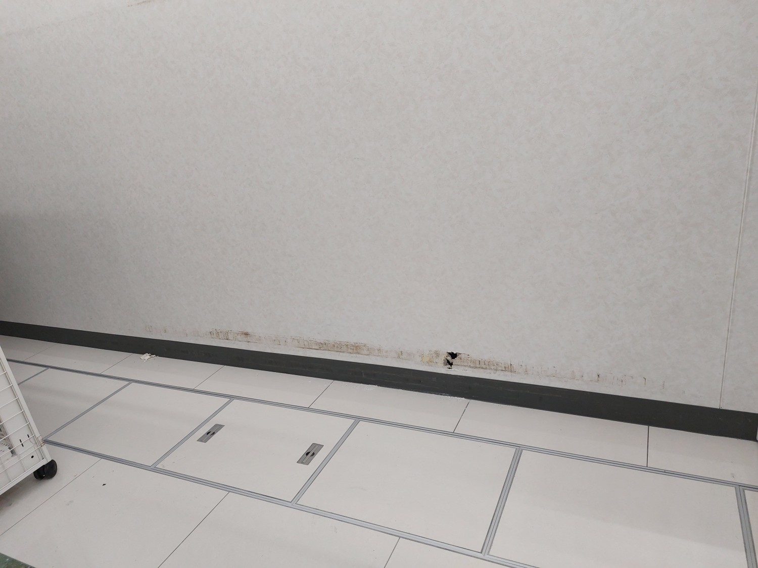 室内壁の石膏ボードに穴が開いていましたので、石膏ボードを切り取りコンパネに張り替えて補強をして、隙間やビスの頭をパテにて埋めて綺麗に表面をならしてから、同じ型番のクロスを張りました。