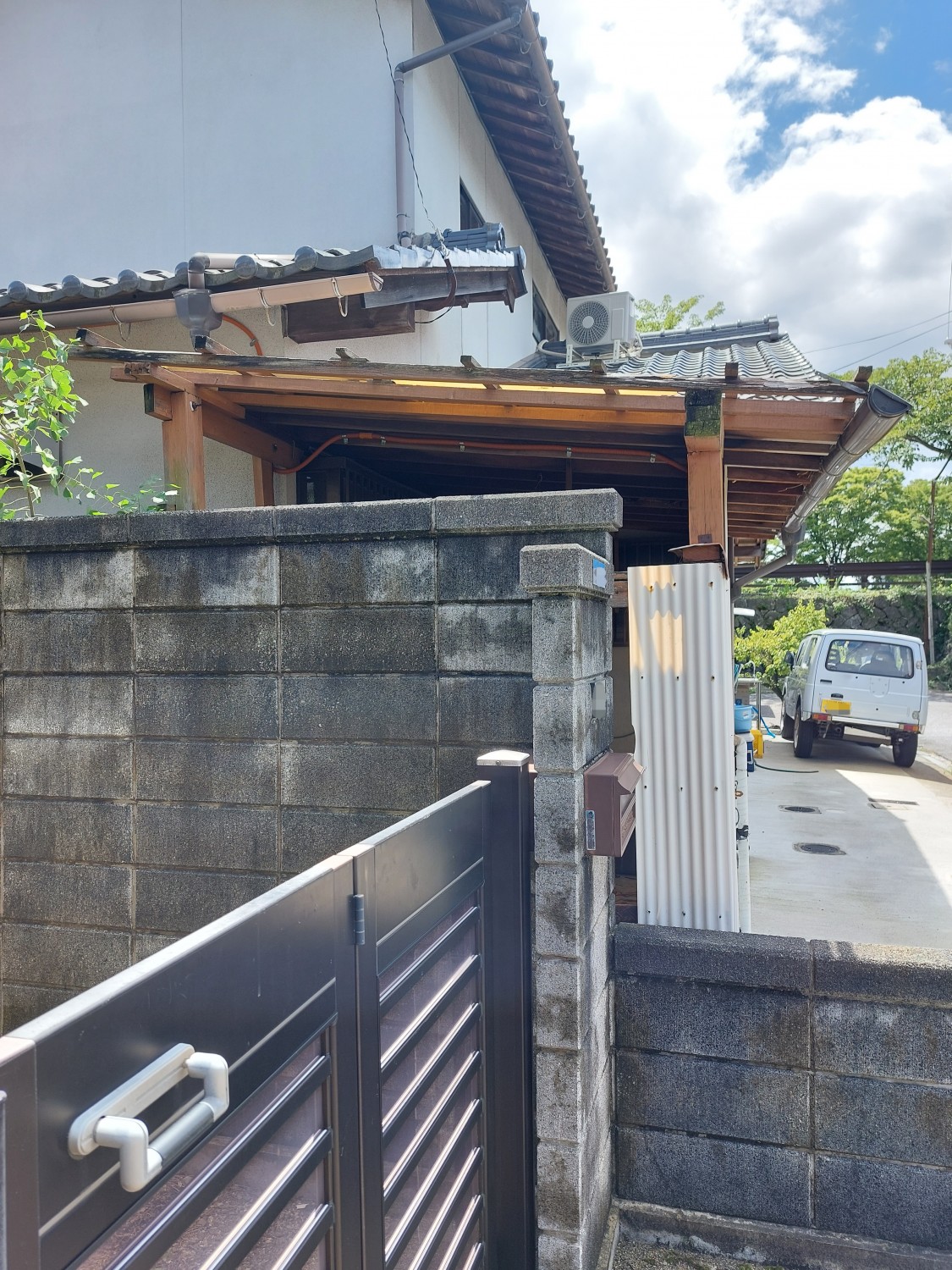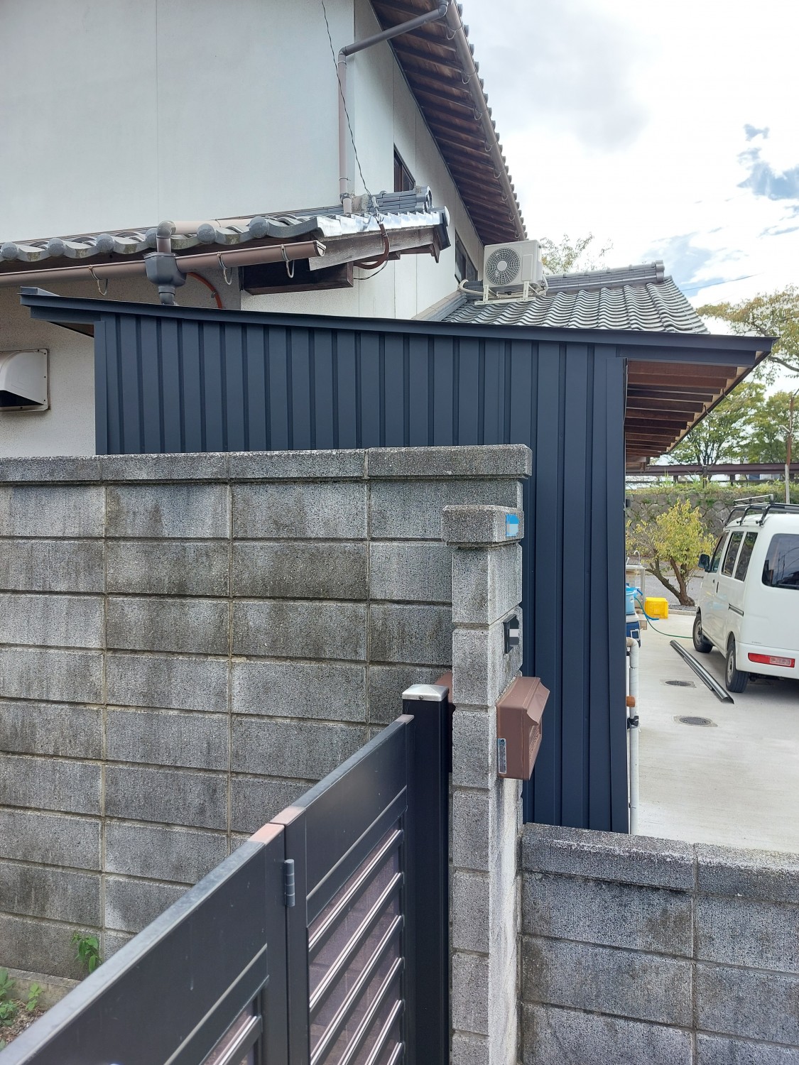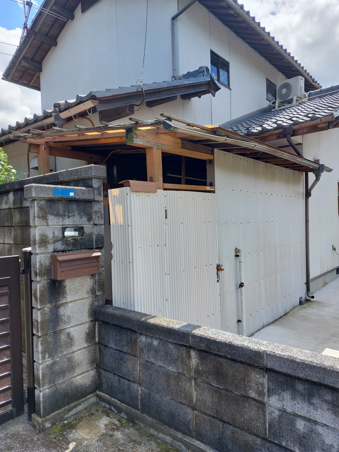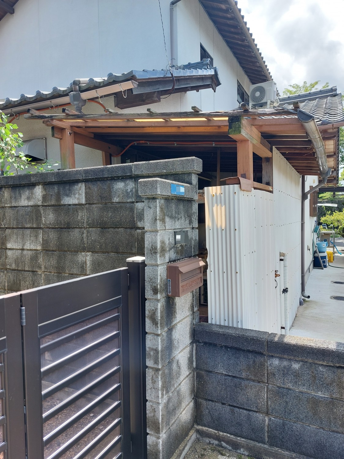 こちら側は、トタンと境界を超えていました胴縁(木棒)を解体してから、新たに胴縁を取り付けてそこにガルバリウム鋼板を張りました。