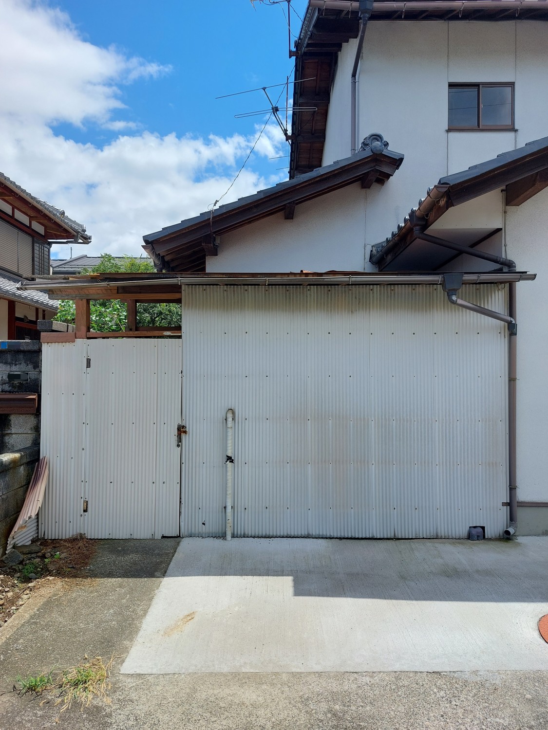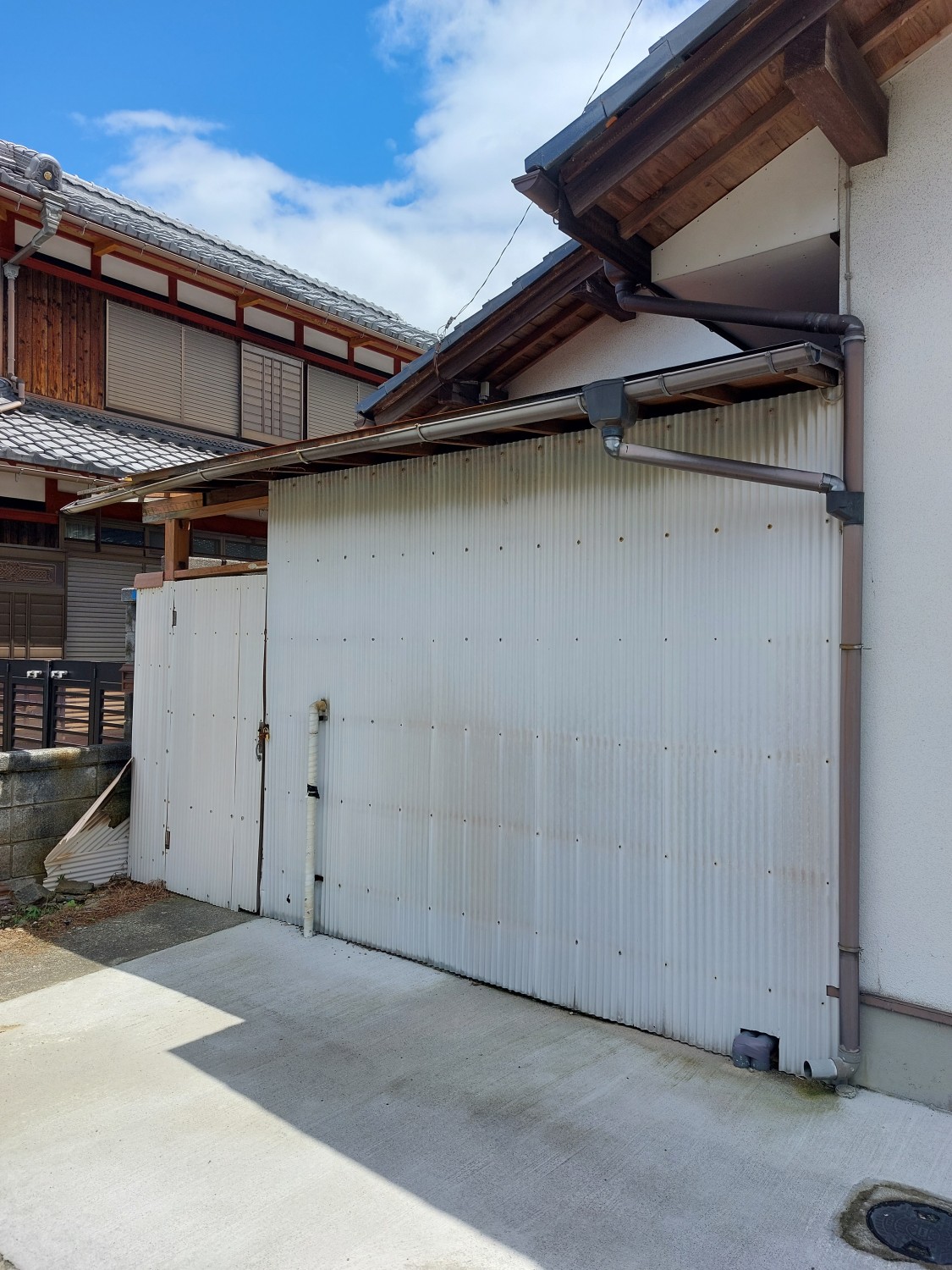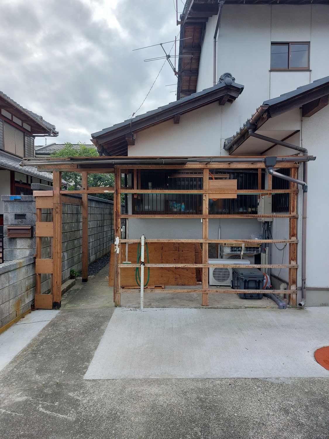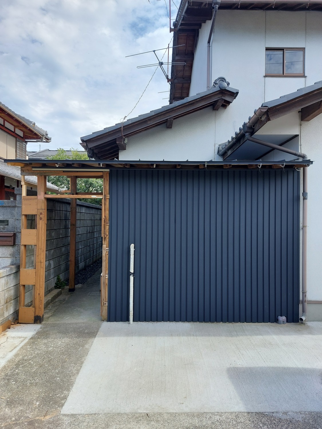 こちら側は、トタンの解体と胴縁(木棒)の追加をおこない、その後ガルバリウム鋼板を張りました。