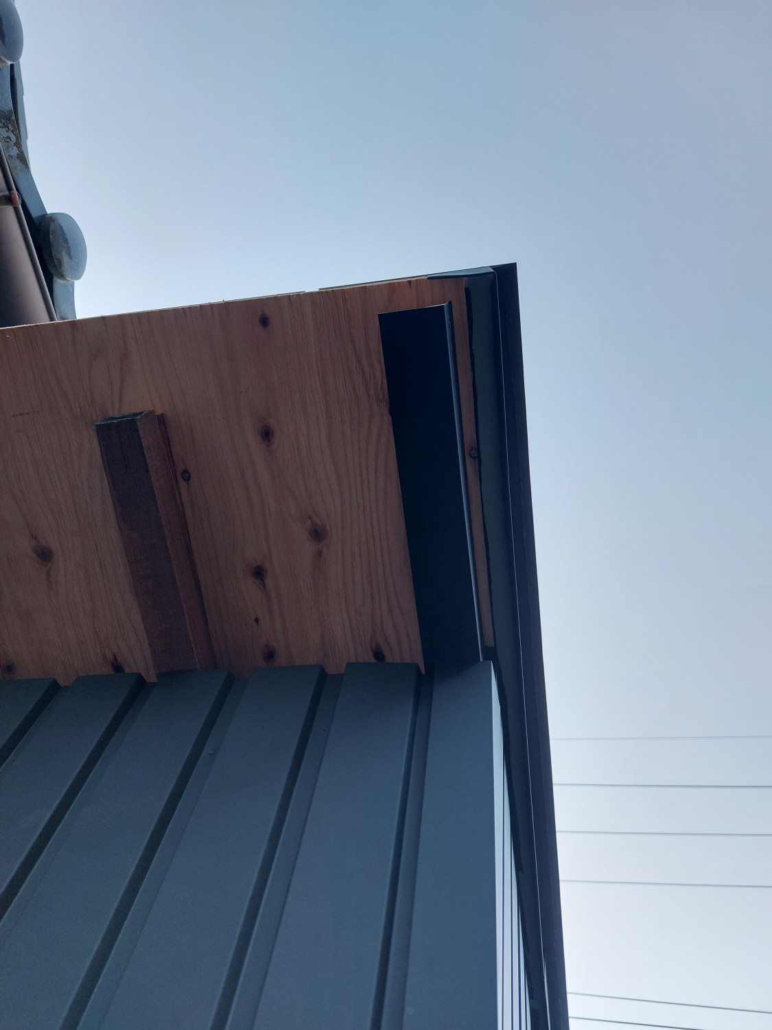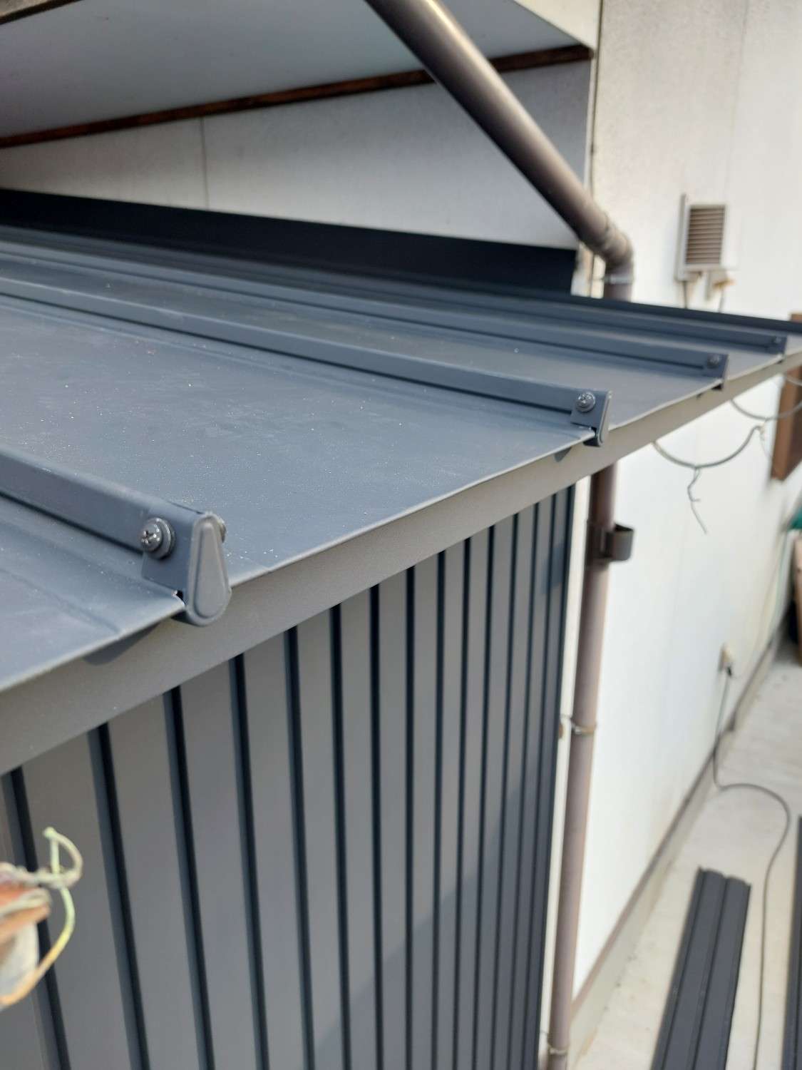 納屋の板金工事の隅じまいの各箇所となります。