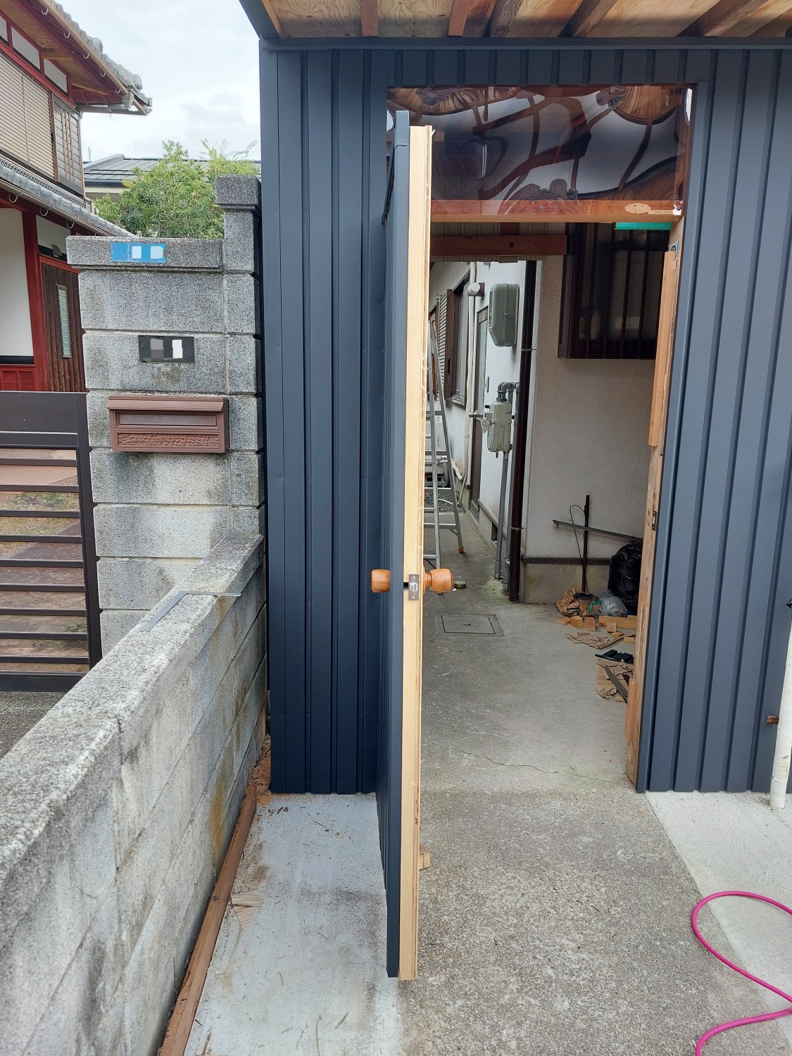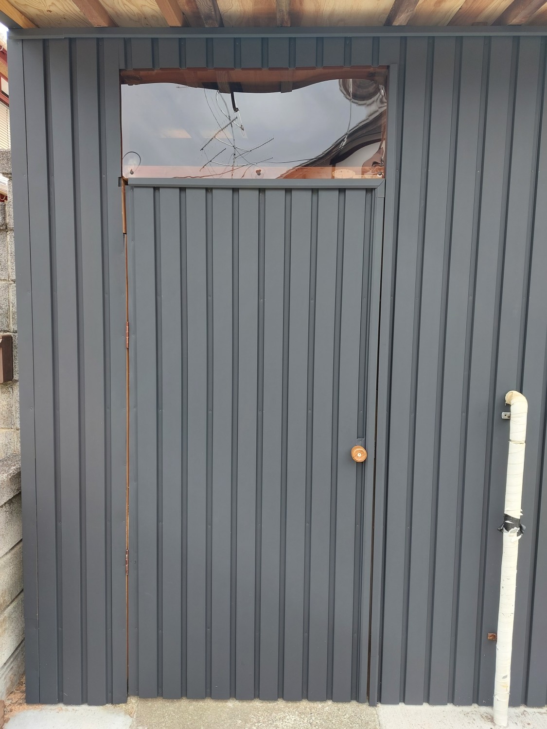 そして最後に、ガルバリウム鋼板を外壁の模様と合うように張りました。