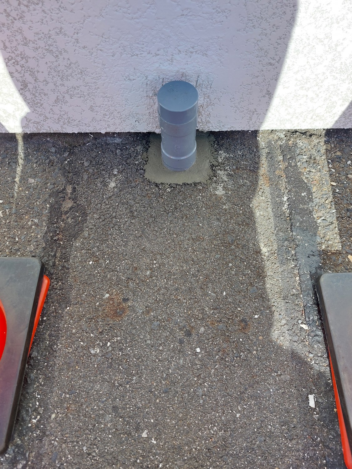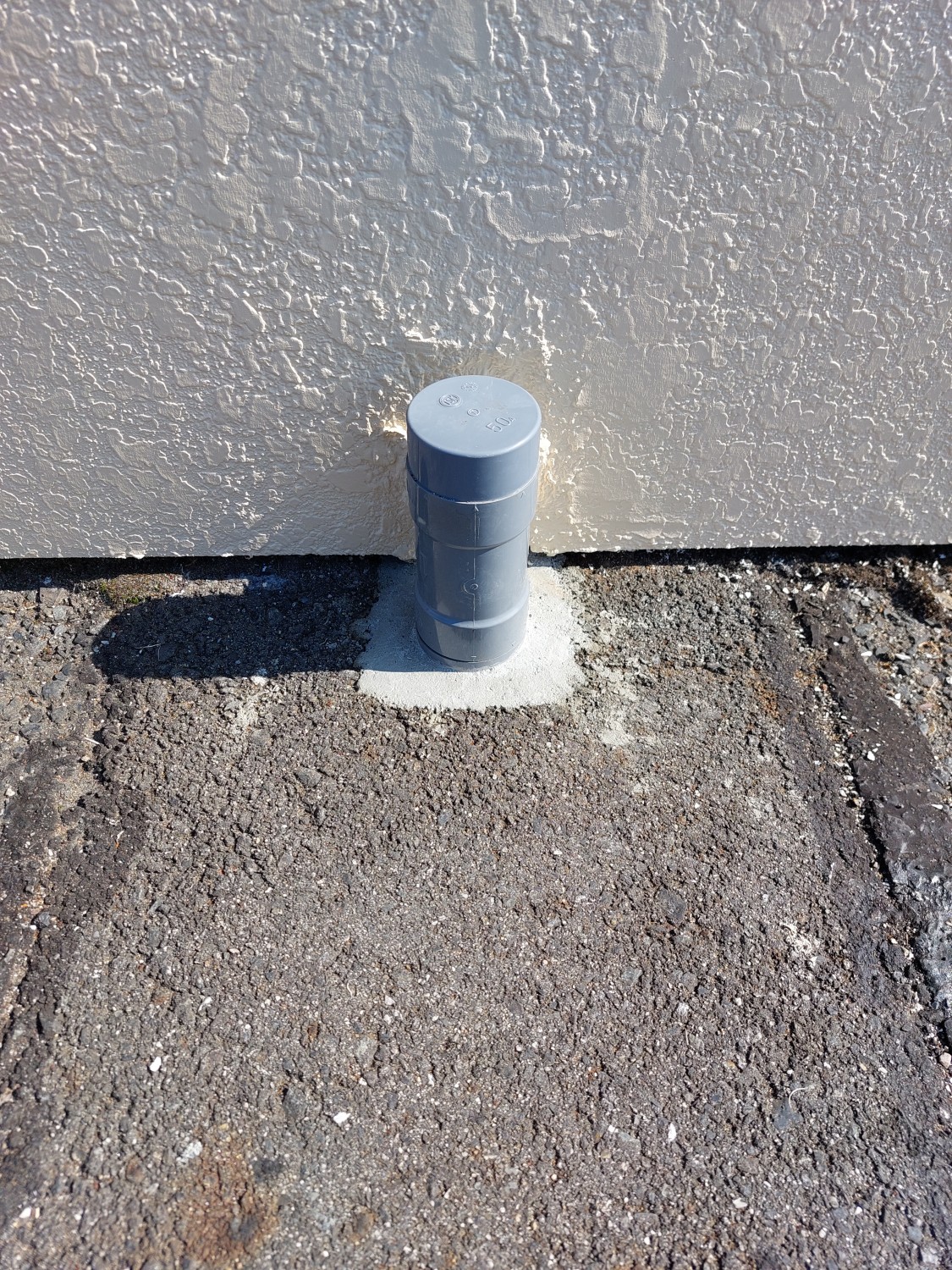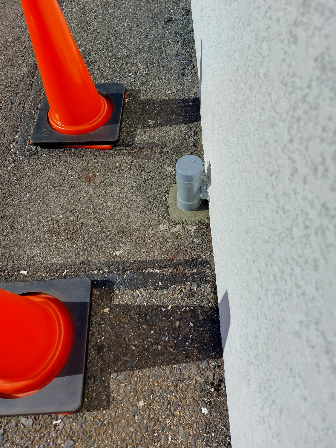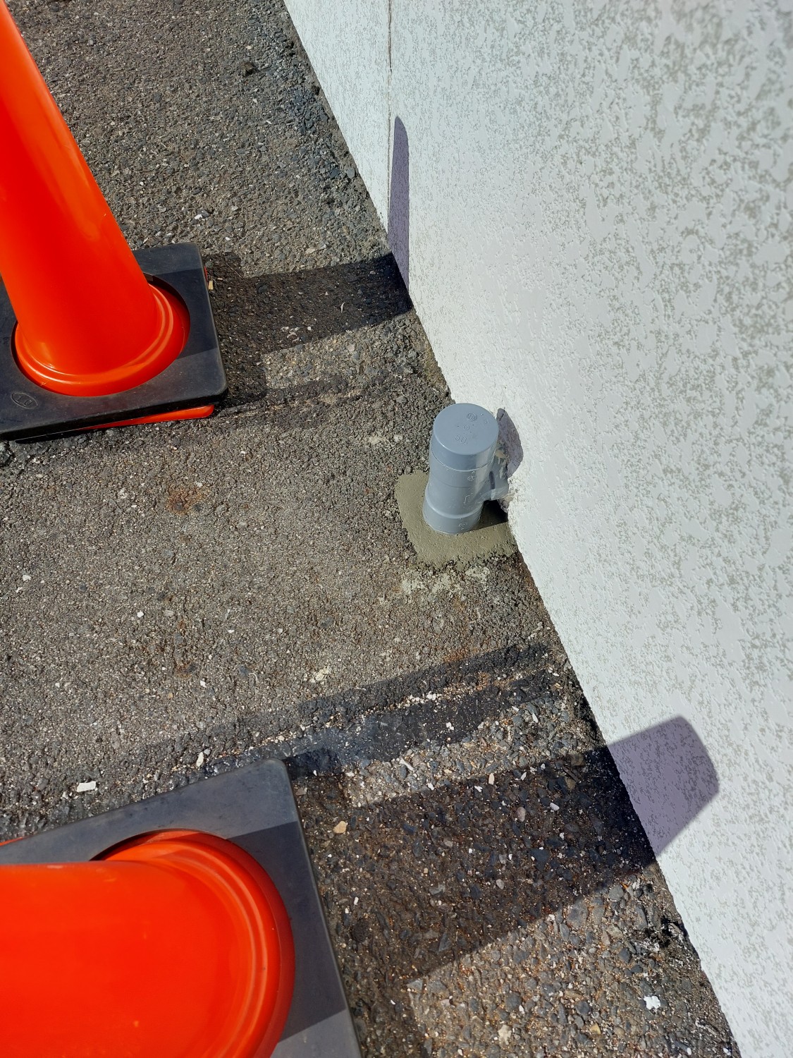 排水配管の埋設部が剝き出しになっており、配管がグラついていましたので、モルタルにて補強及び固定をしました。