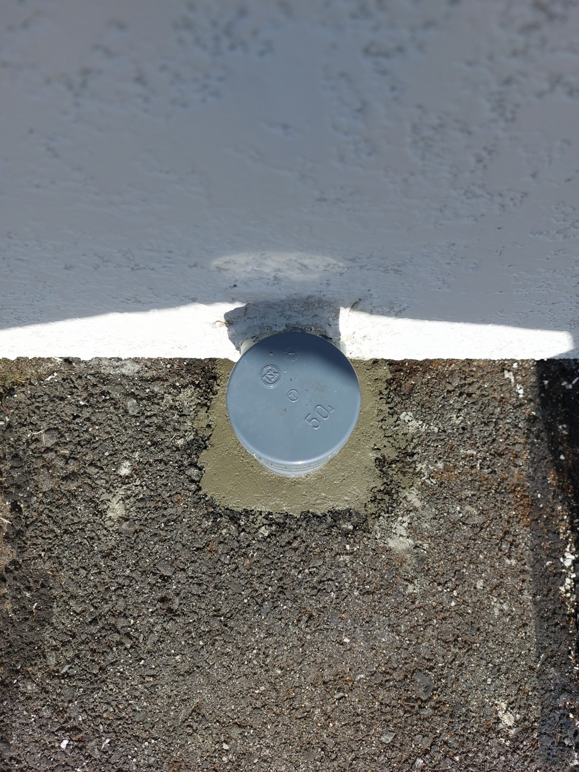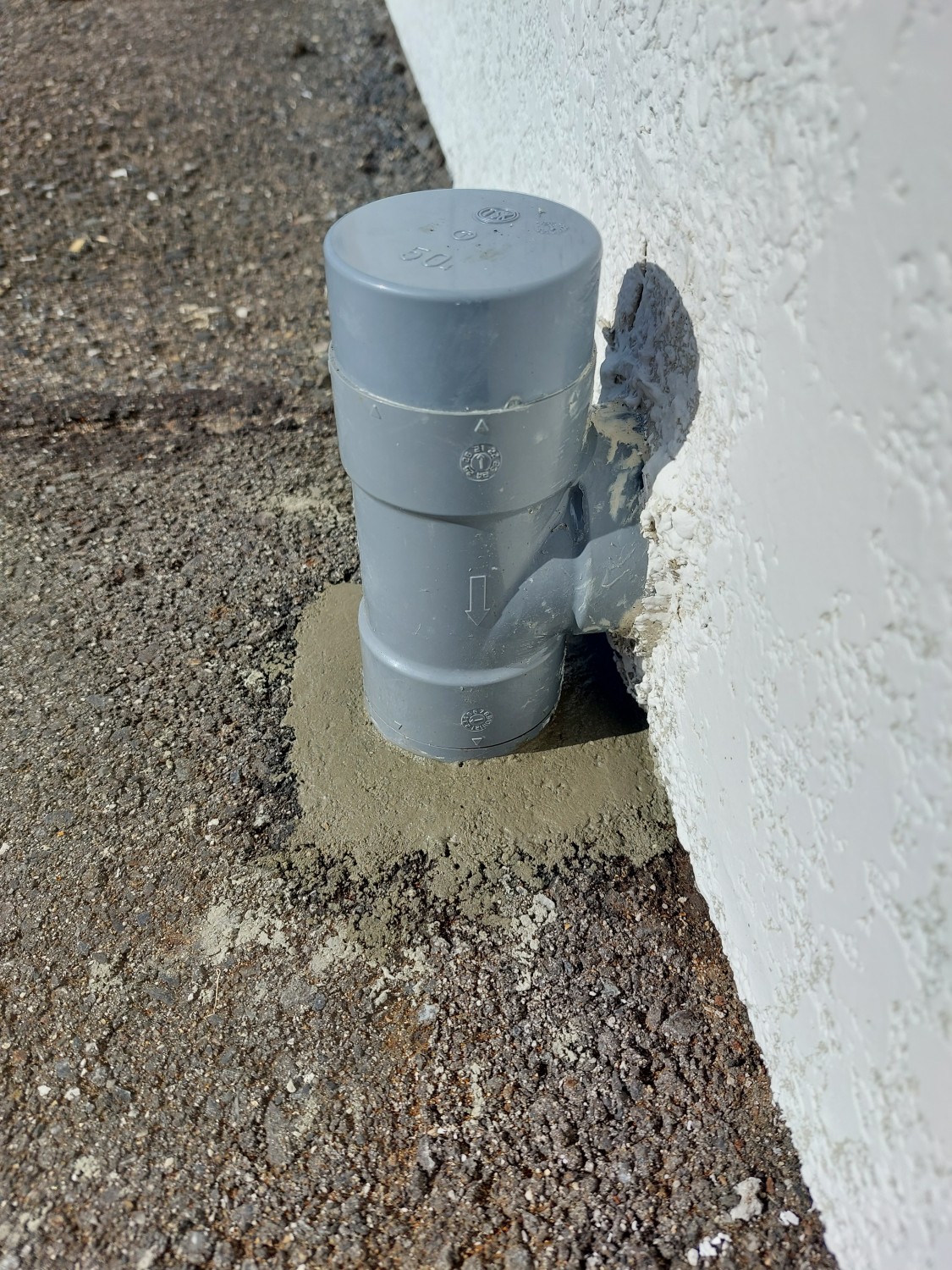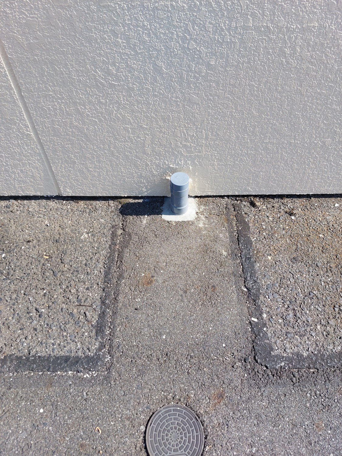排水配管の埋設部が剝き出しになっており、配管がグラついていましたので、モルタルにて補強及び固定をしました。