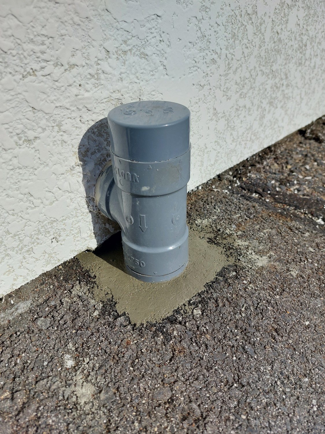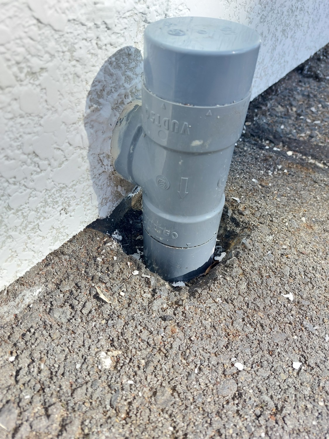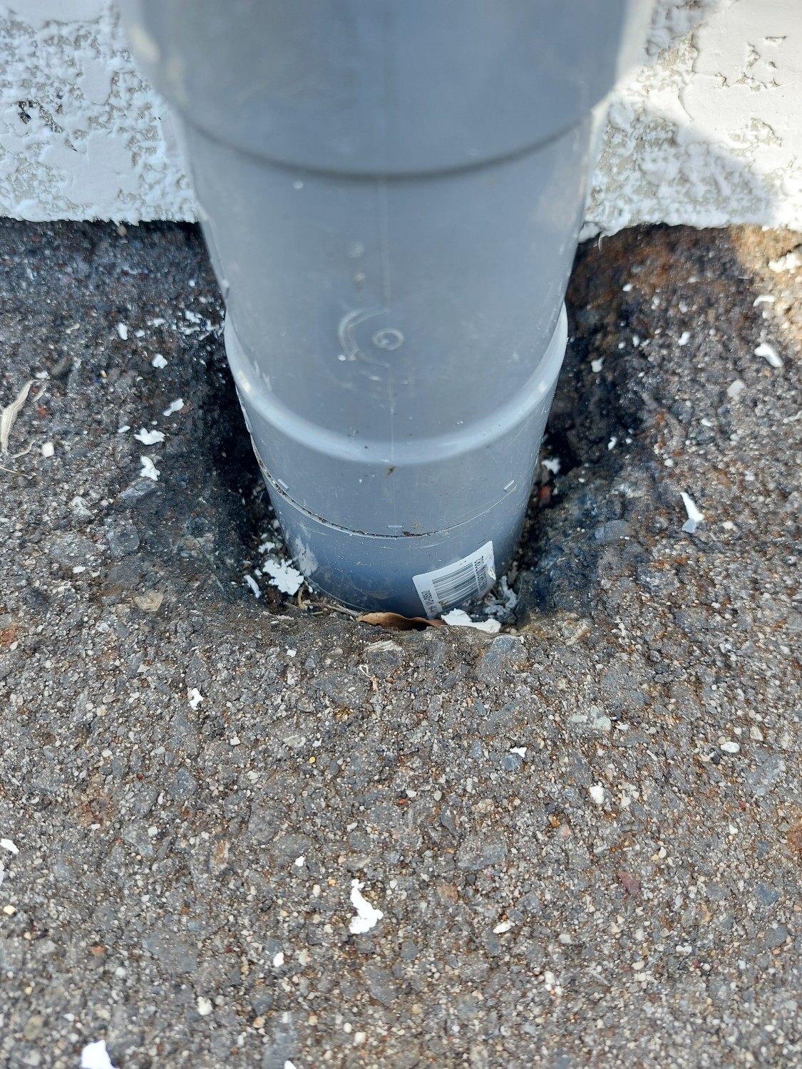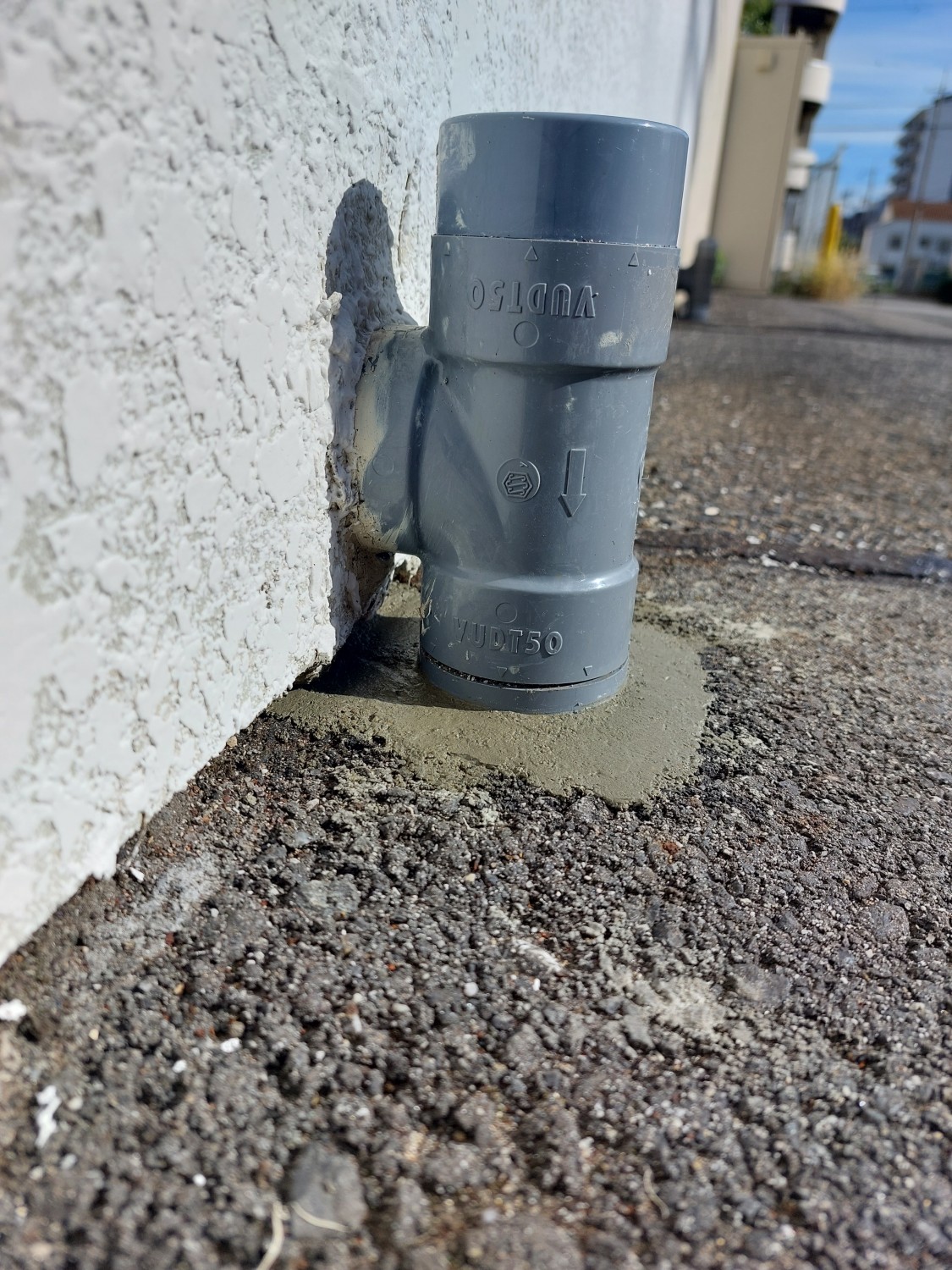 排水配管の埋設部が剝き出しになっており、配管がグラついていましたので、モルタルにて補強及び固定をしました。