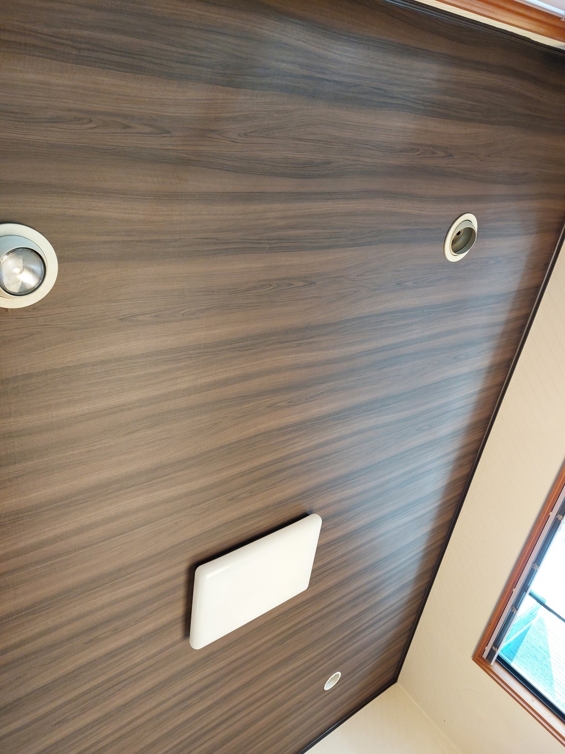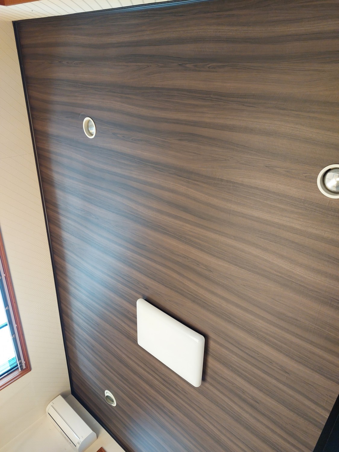 天井のクロスを、木目調のクロスへ張り替えました。