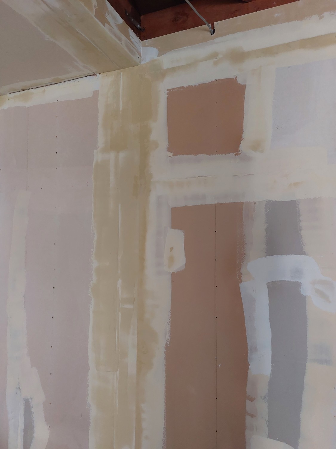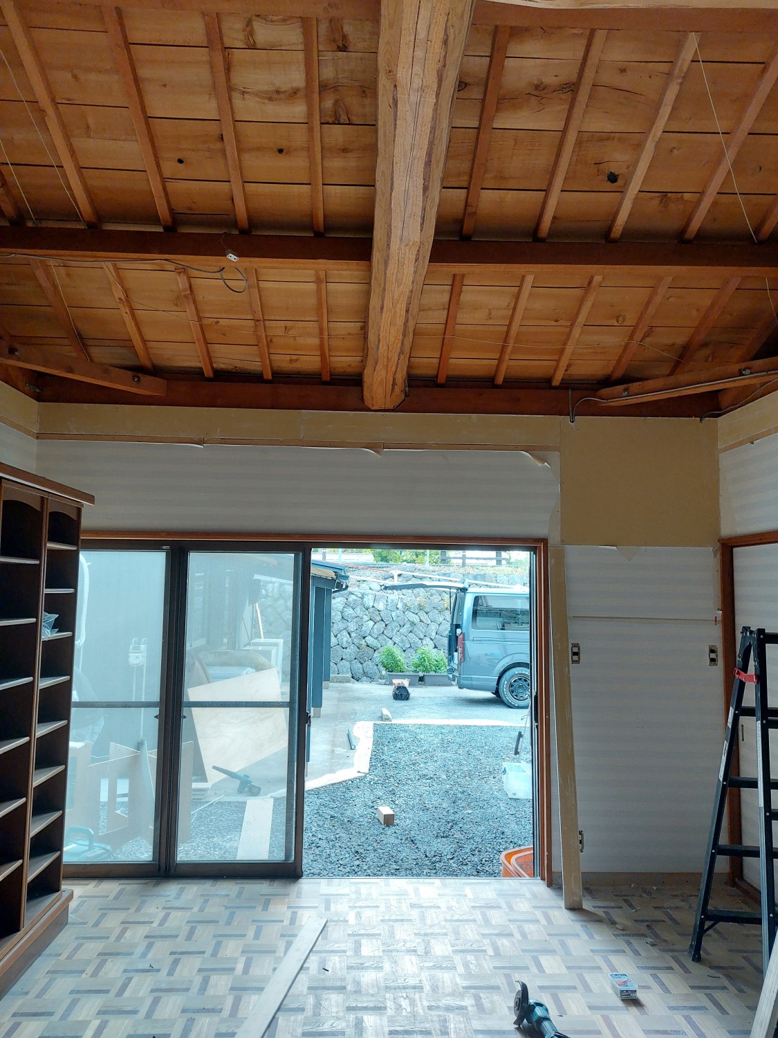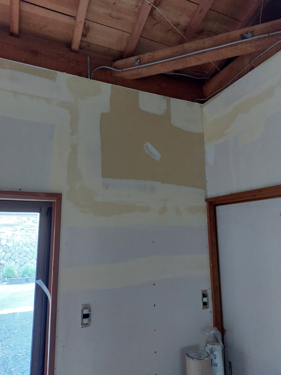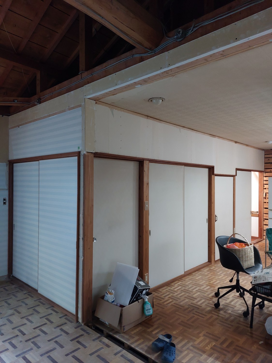 クロスを張る為に、既存のクロスをめくってからパテにて凸凹をならしました。