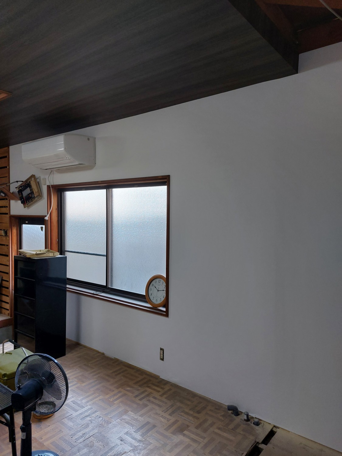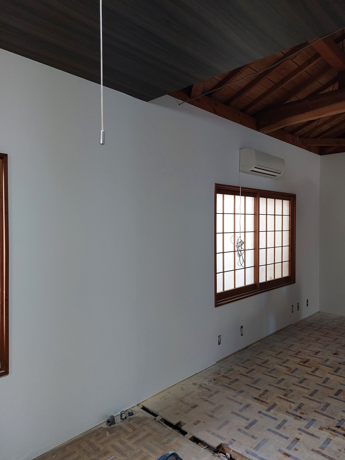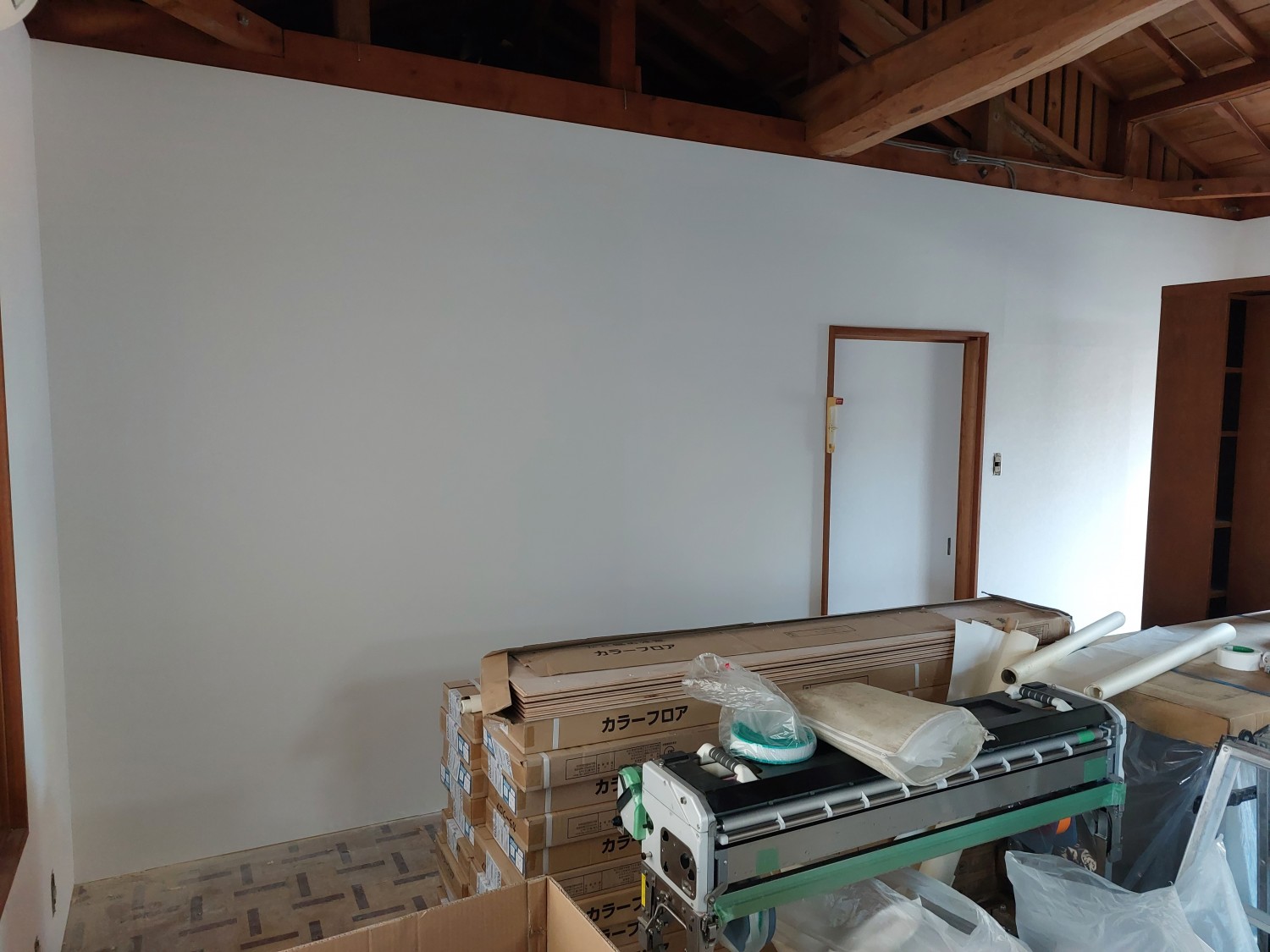 パテ埋めをしてならしました壁に、クロスを張りました。