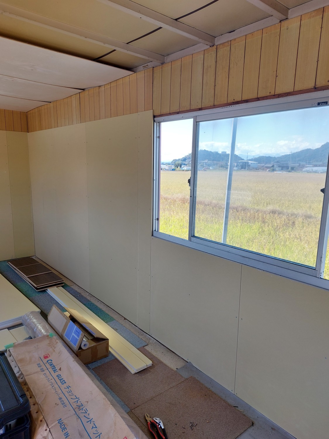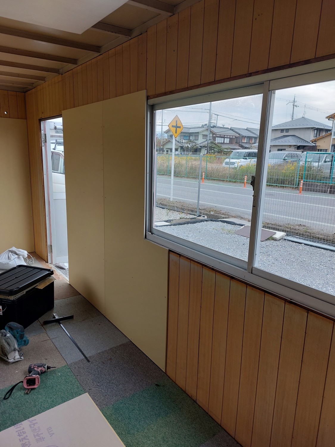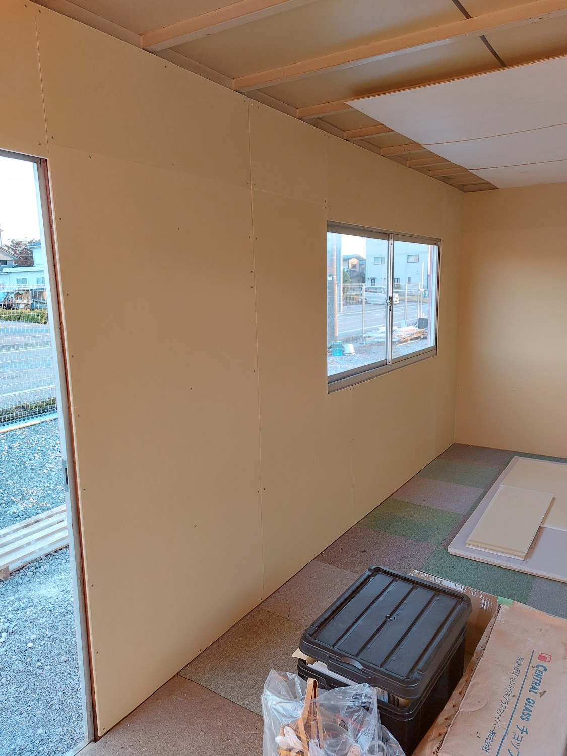 事務所作成にあたり、内壁に傷(穴)や劣化が見られたため、石膏ボードを張りました。
