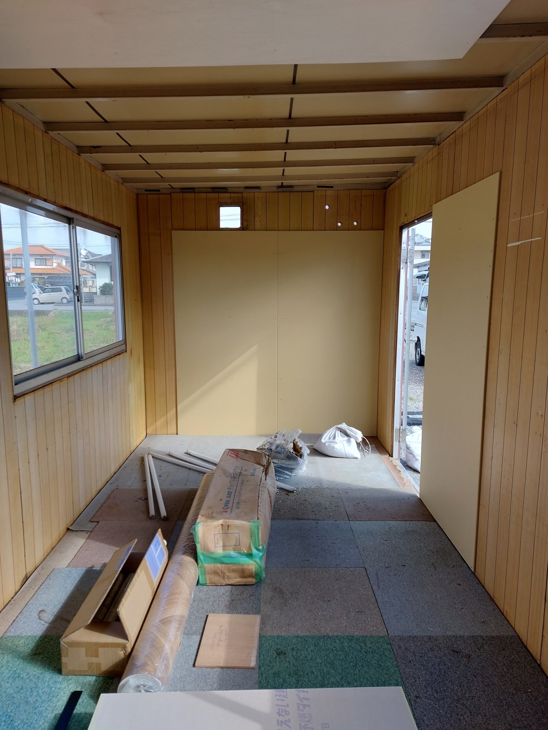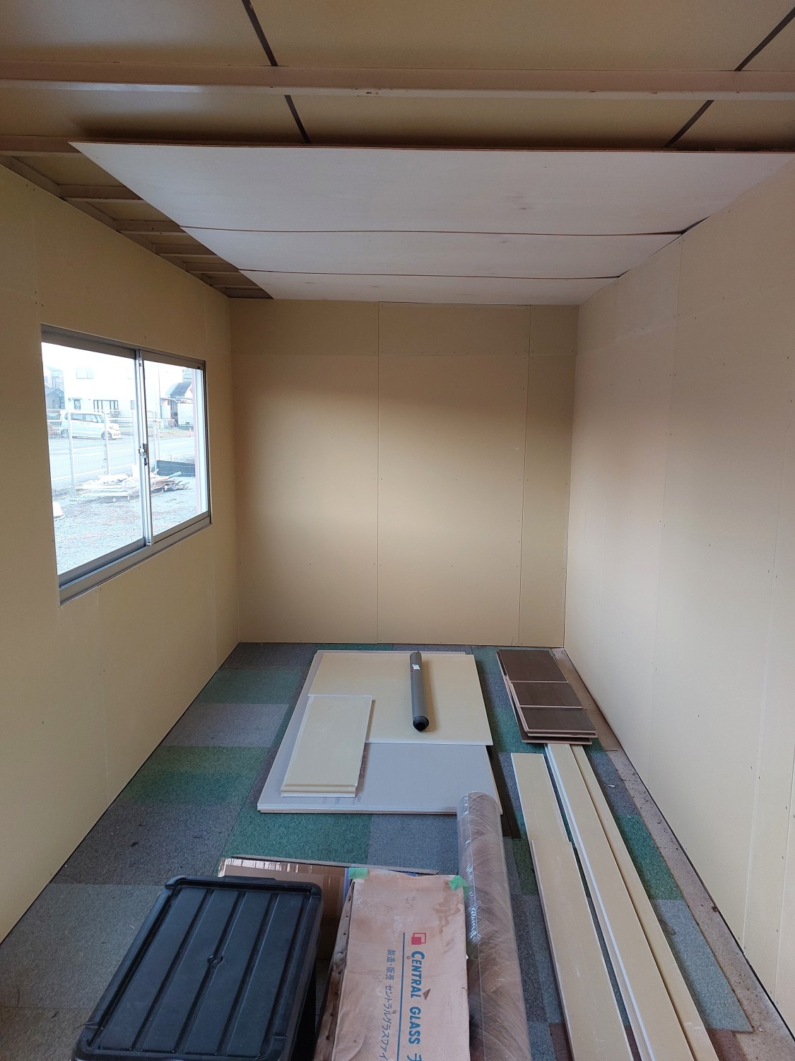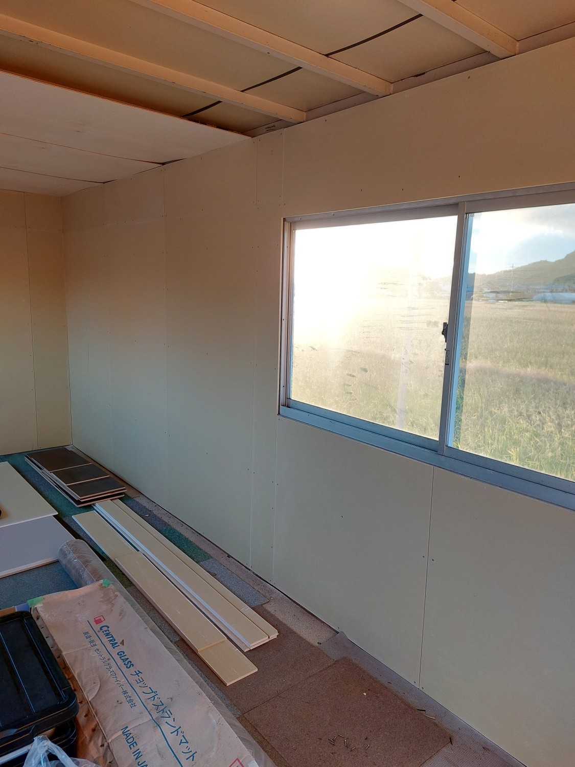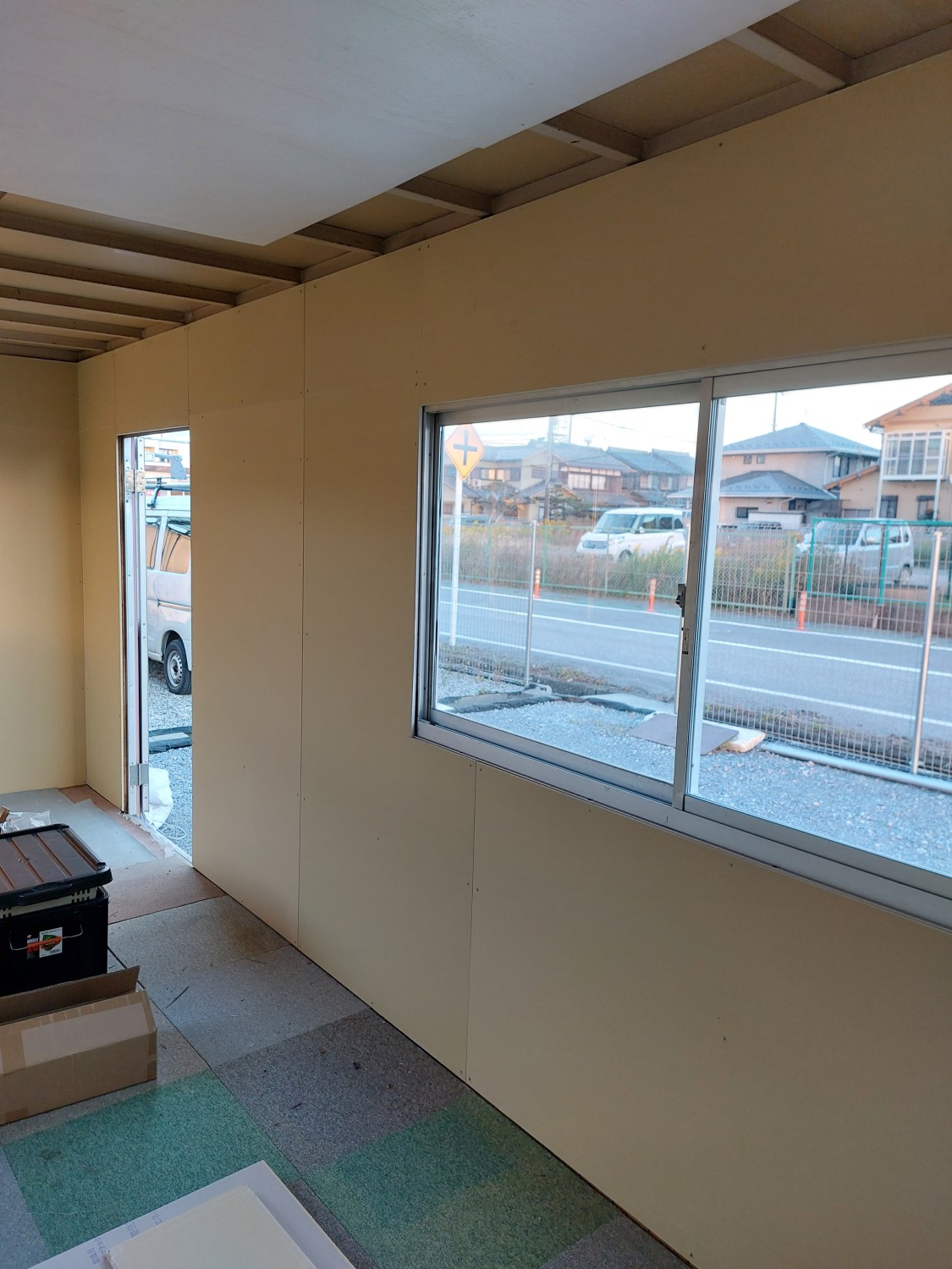 事務所作成にあたり、内壁に傷(穴)や劣化が見られたため、石膏ボードを張りました。