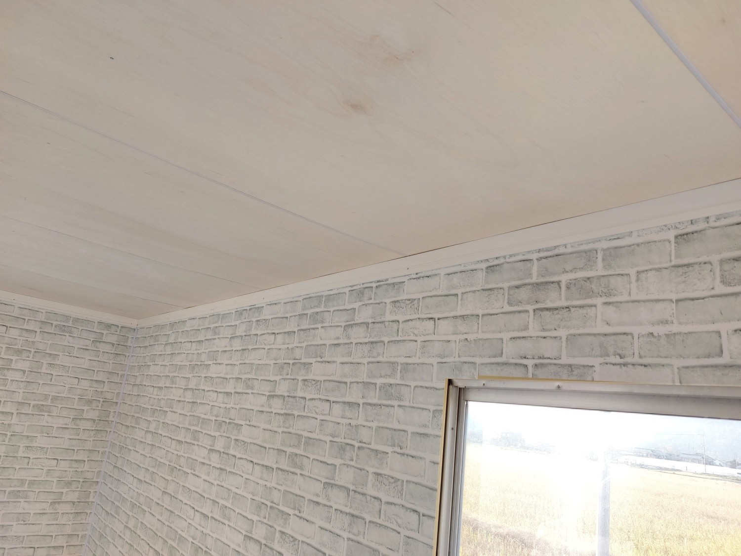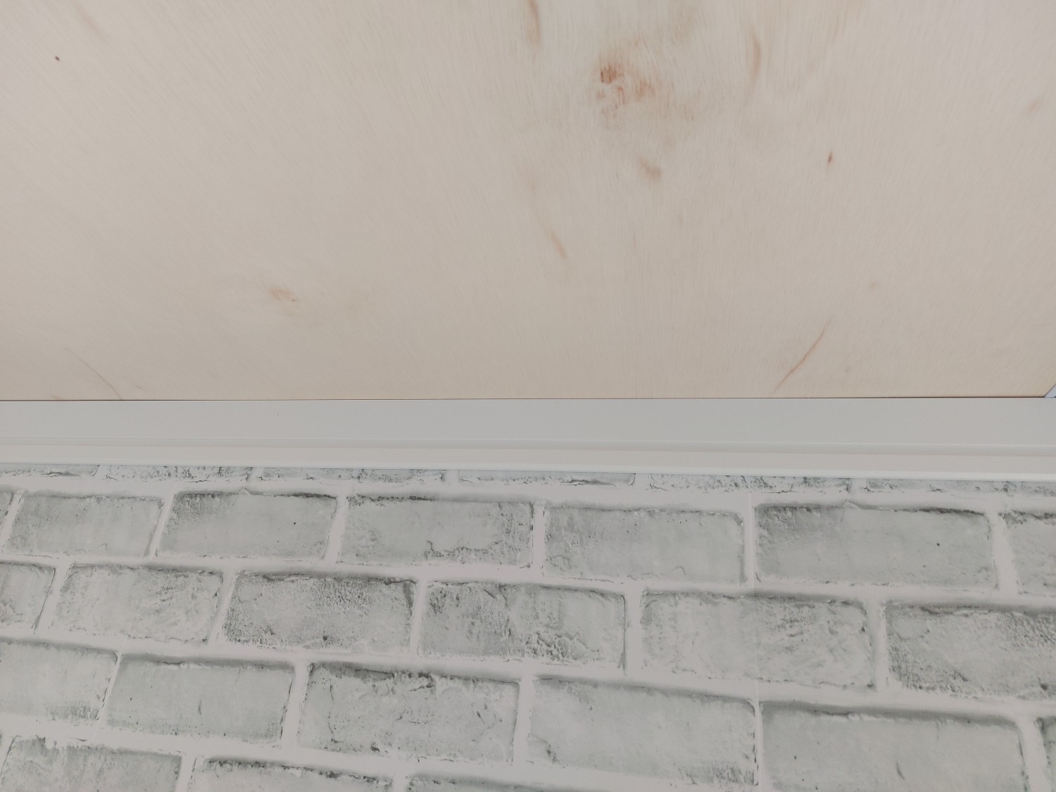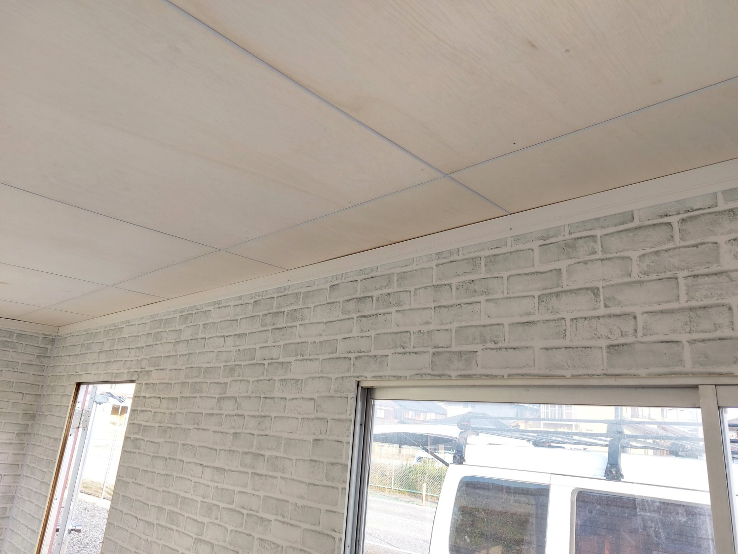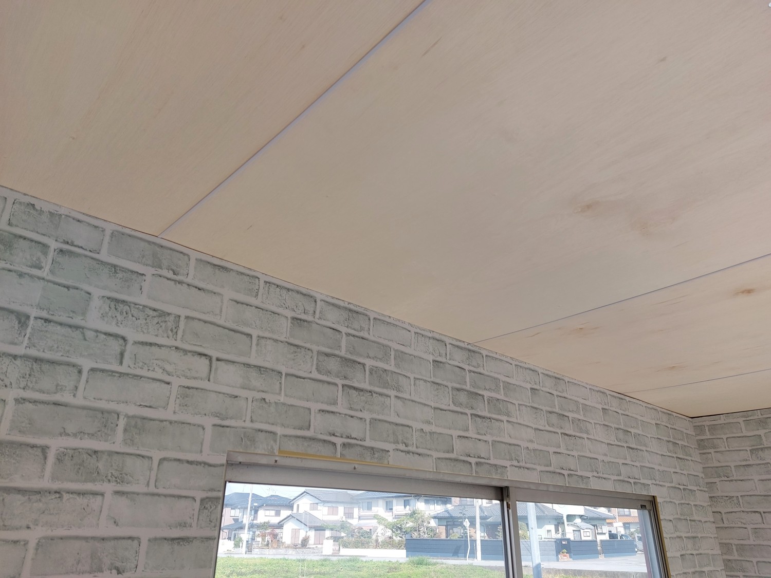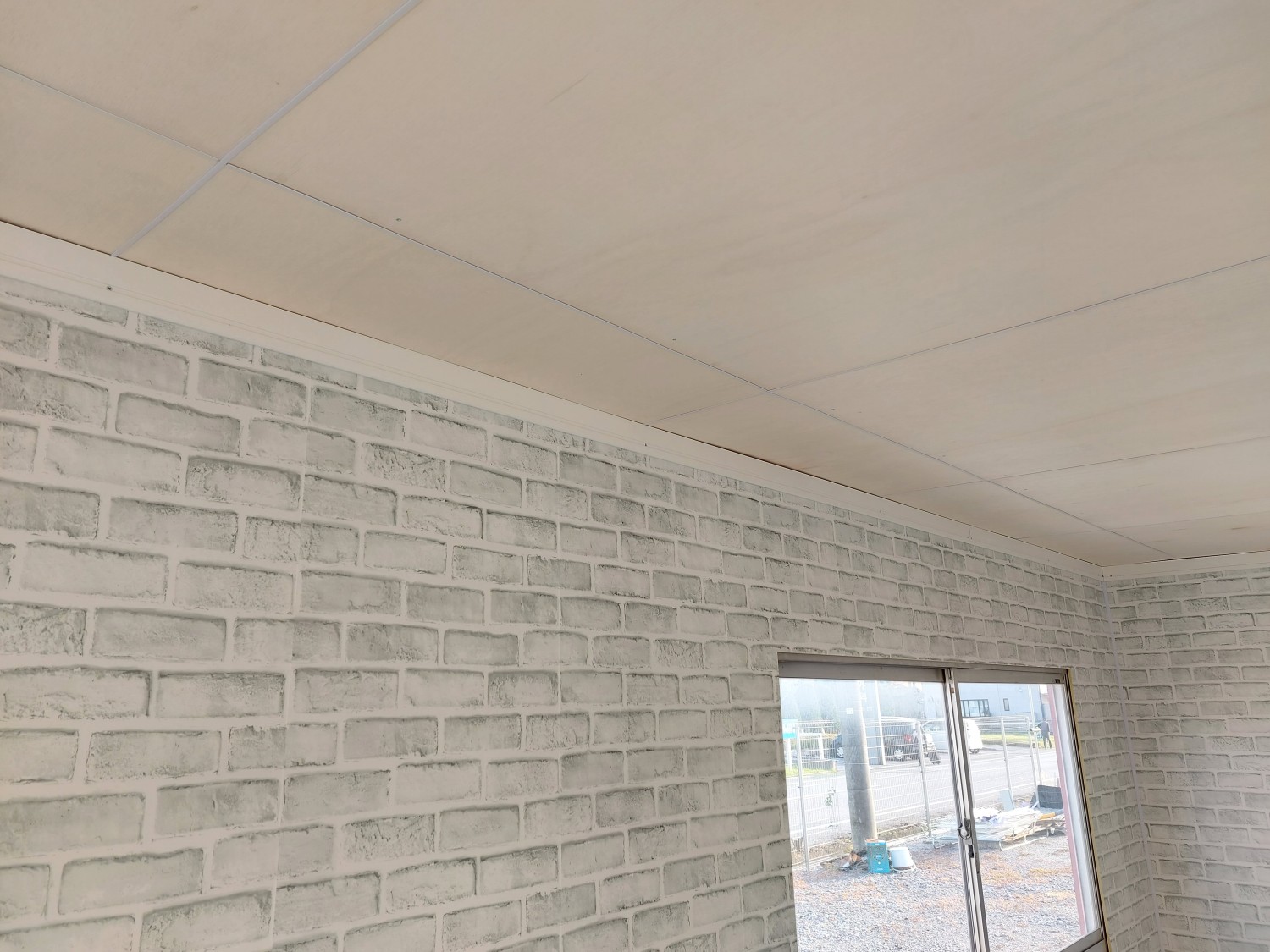 事務所の天板とクロス張りが終わりましたので、上部の巾木を取り付けました。