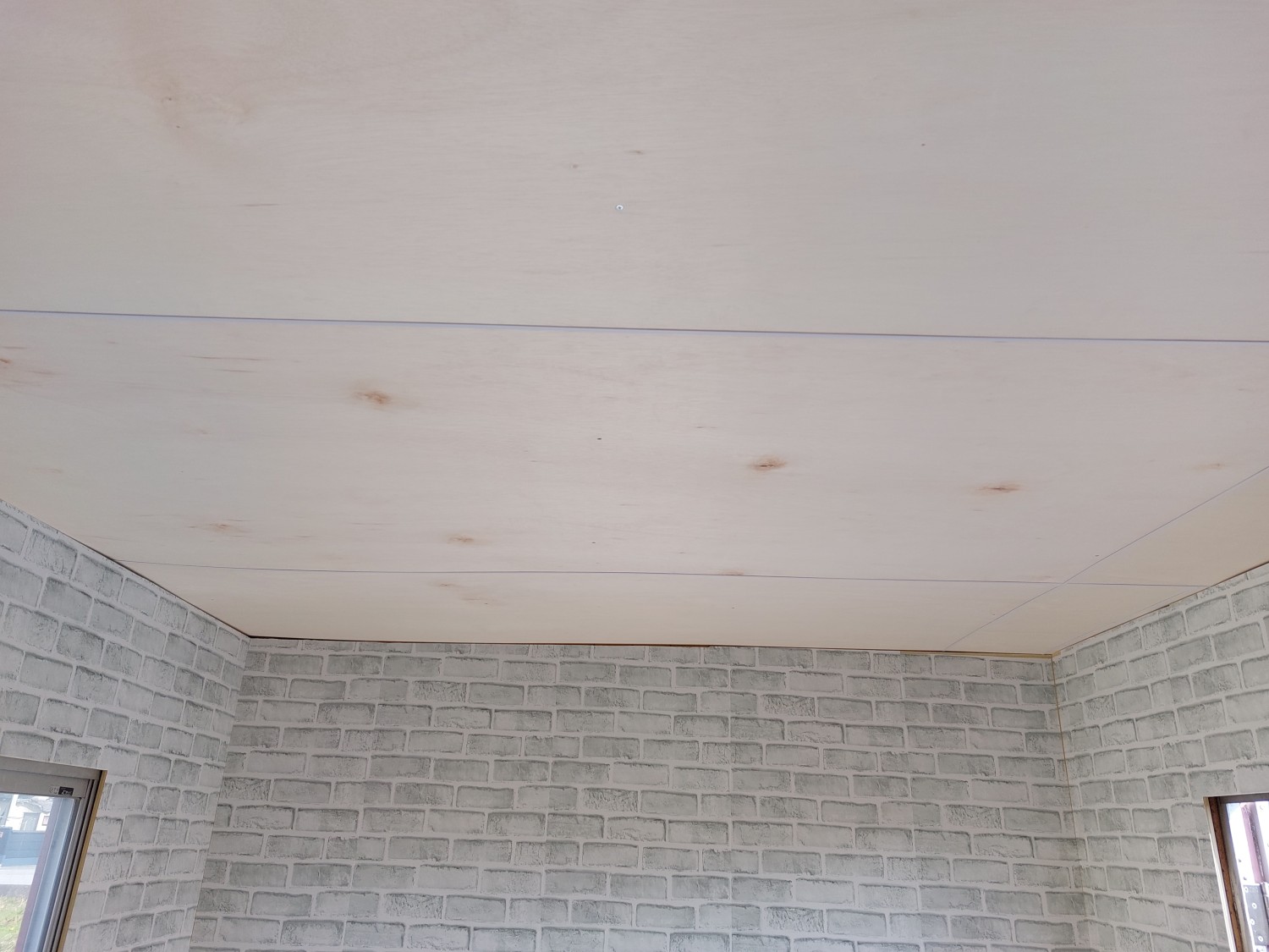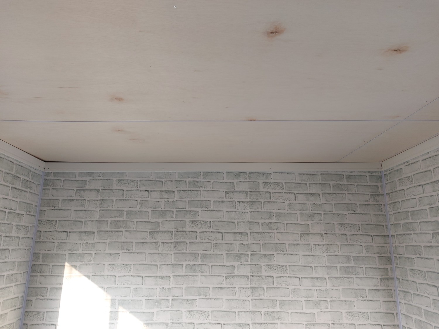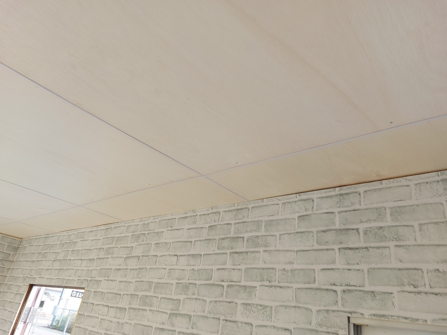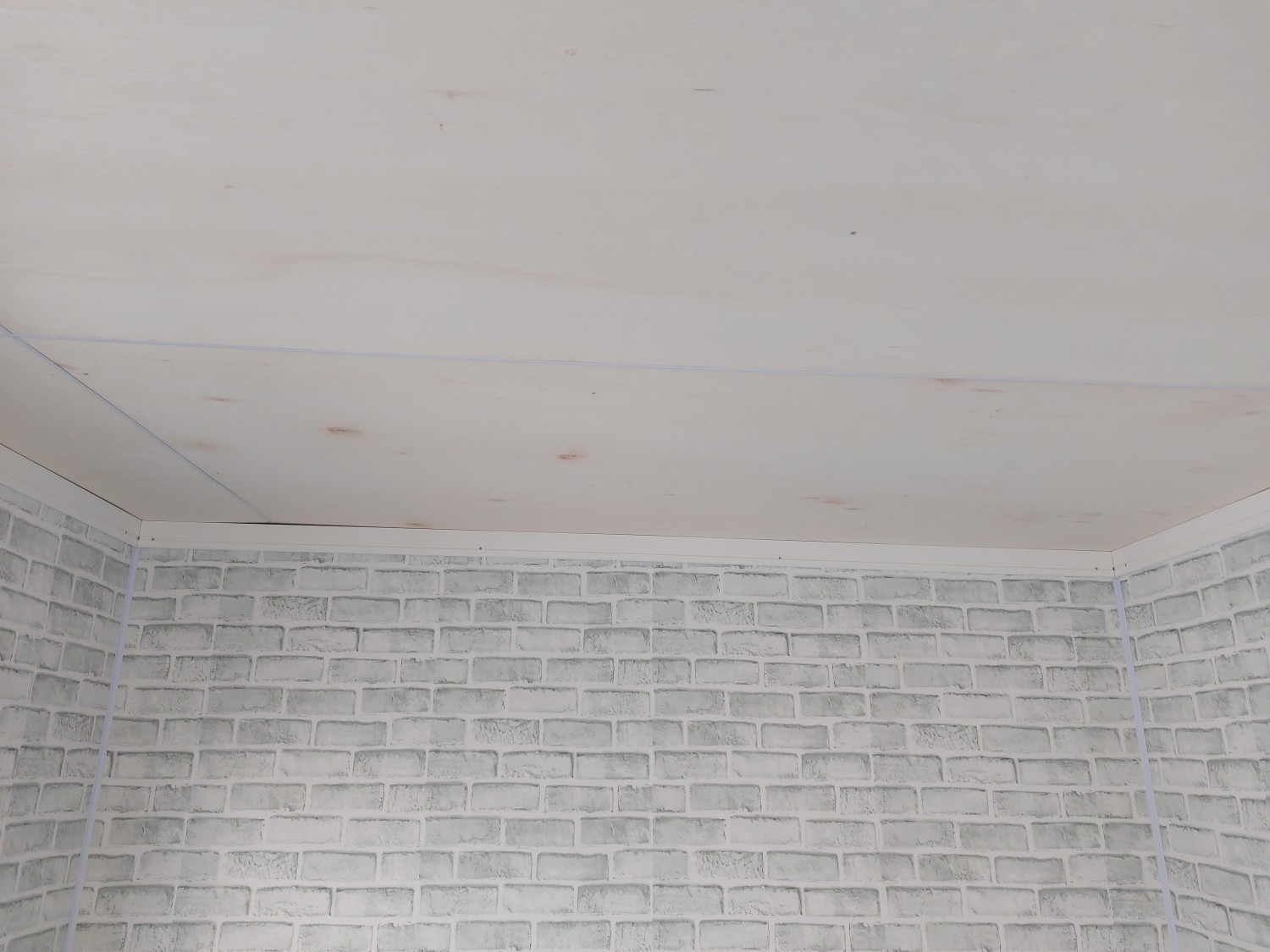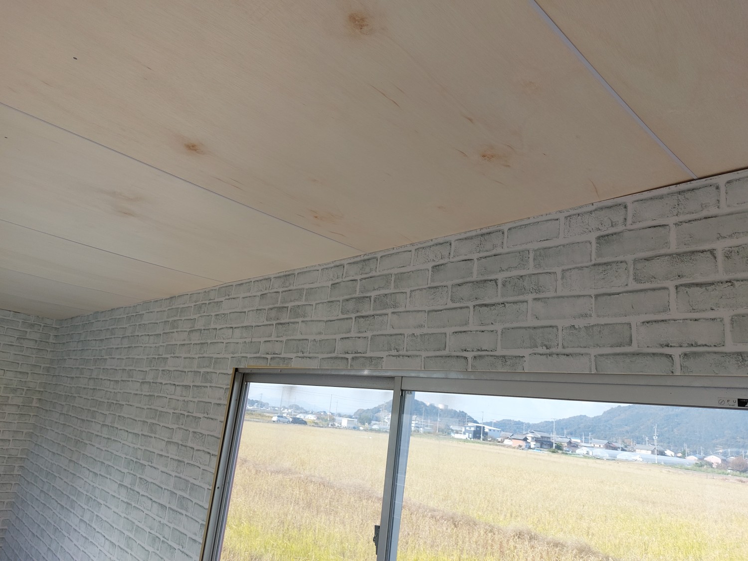 事務所の天板とクロス張りが終わりましたので、上部の巾木を取り付けました。