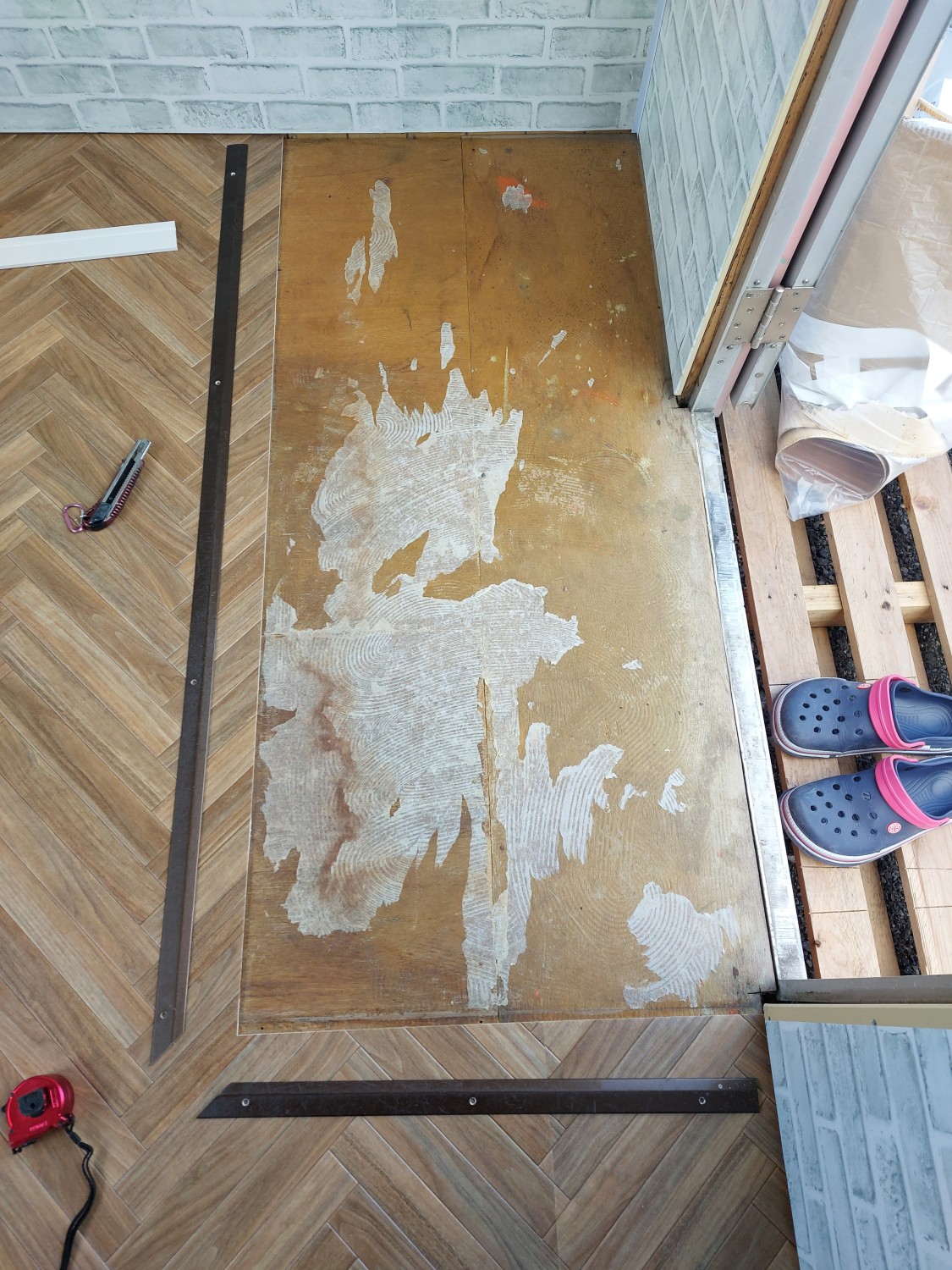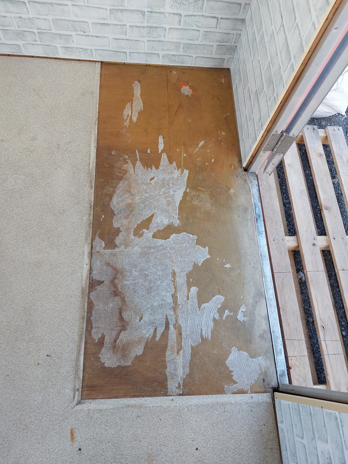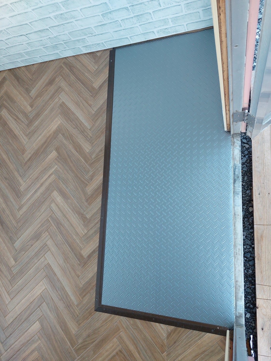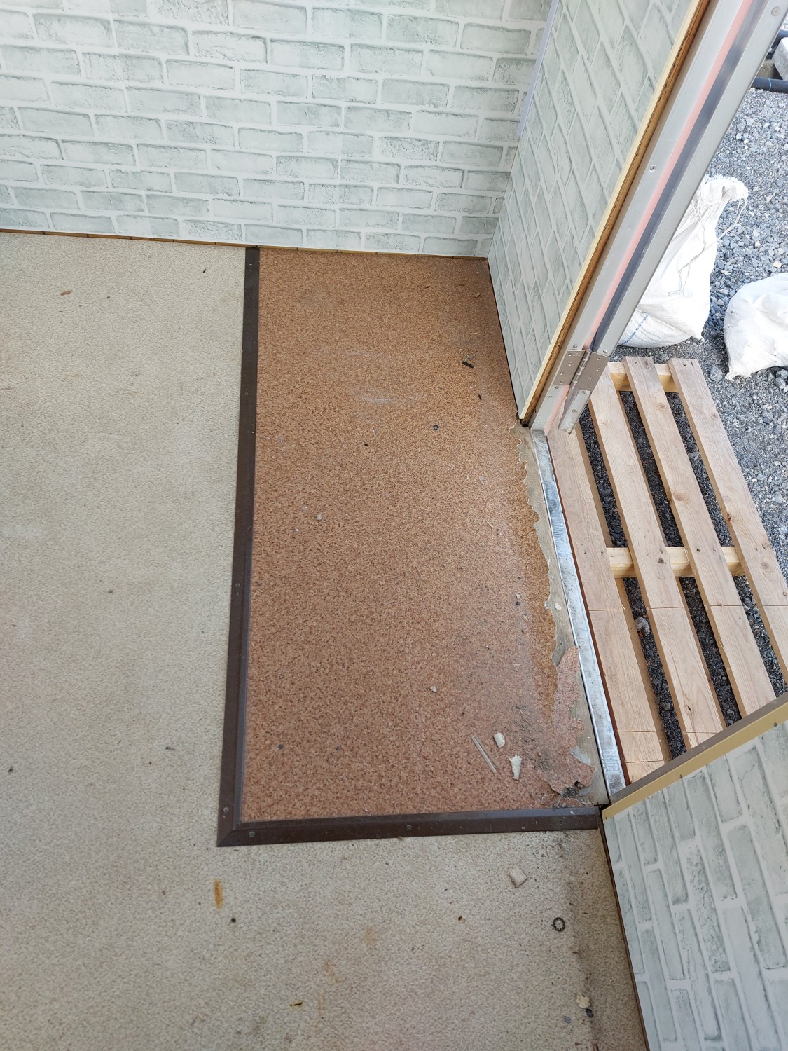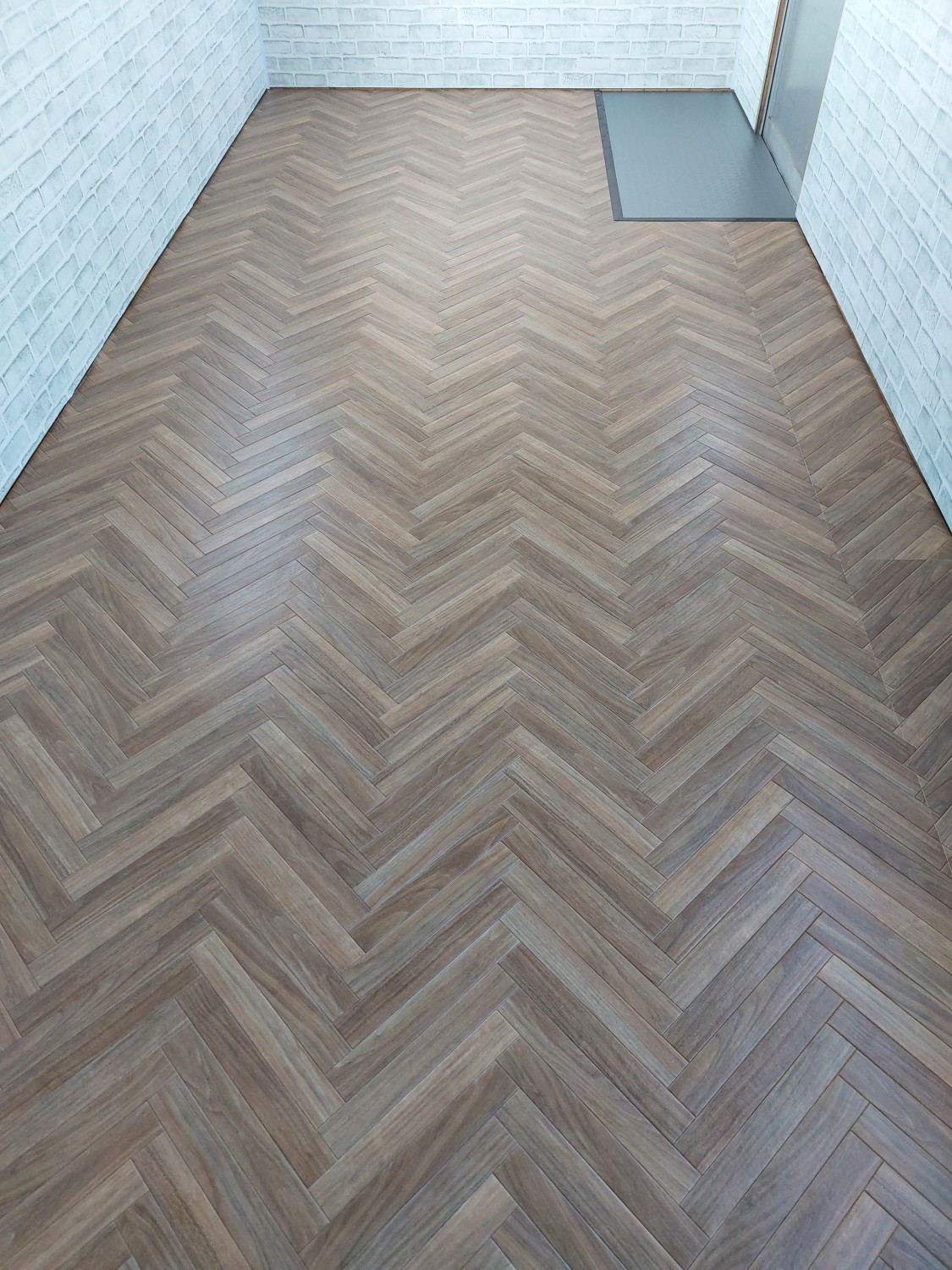 玄関部分は防水性のクッションフロアを敷いて、靴で上がれる玄関部分を作成しました。