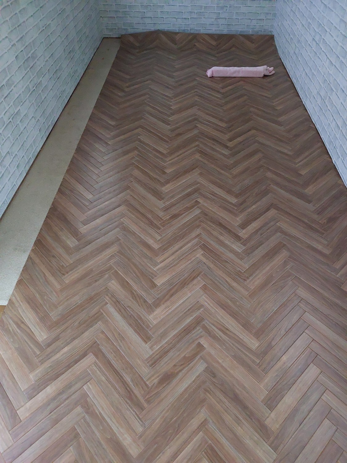 床にクッションフロアを敷きました。