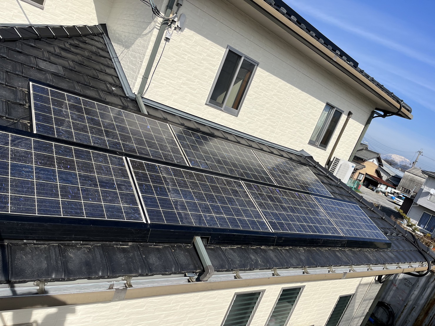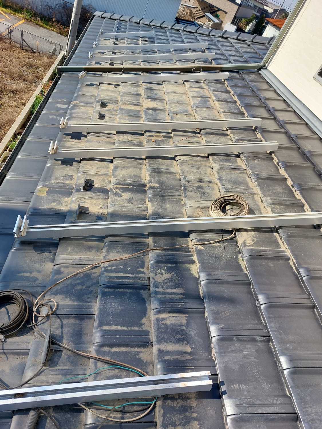 瓦が割れてソーラーパネルが下がっていましたので、ソーラーパネルを外して割れていました瓦を9枚交換しました。