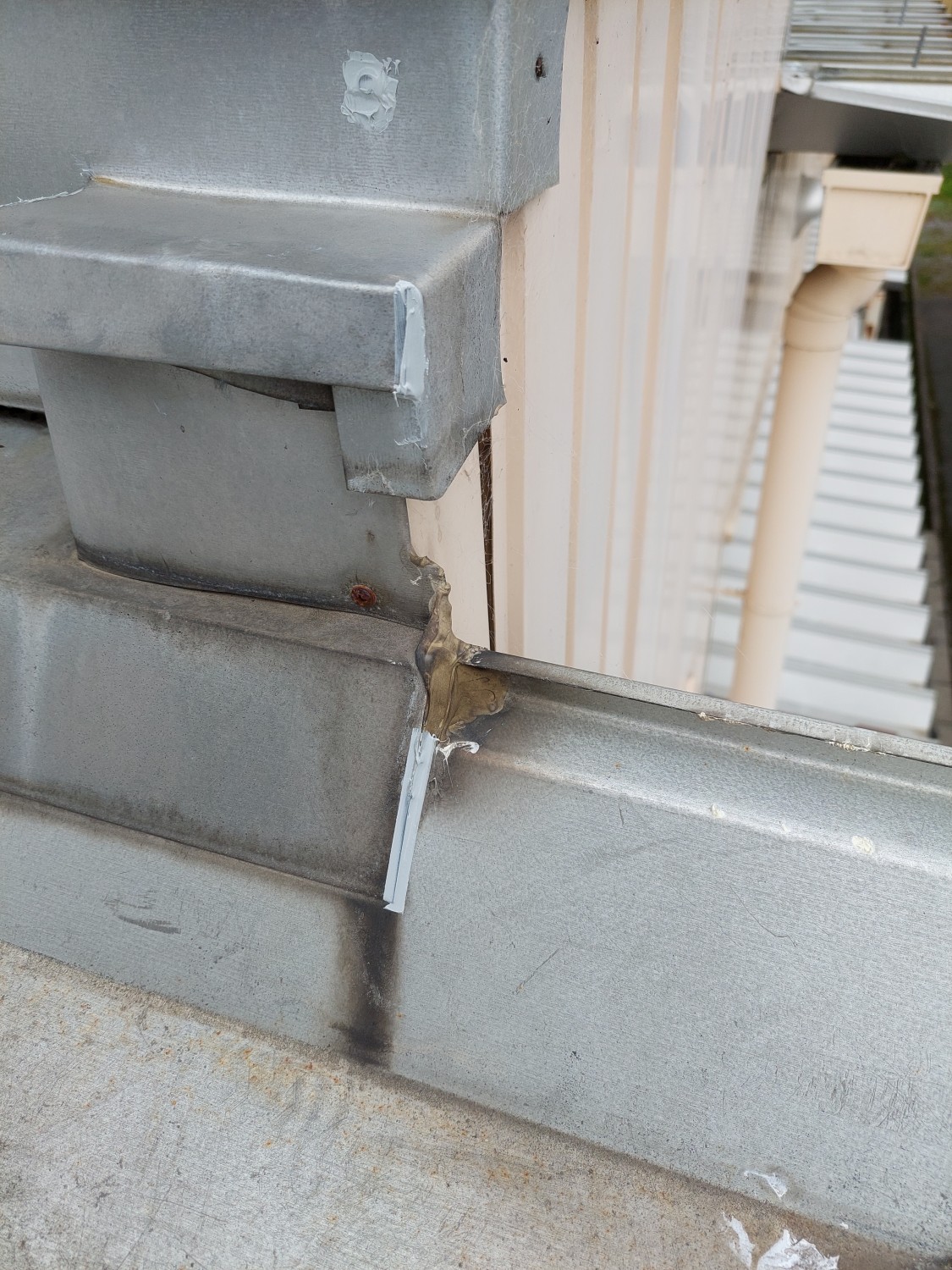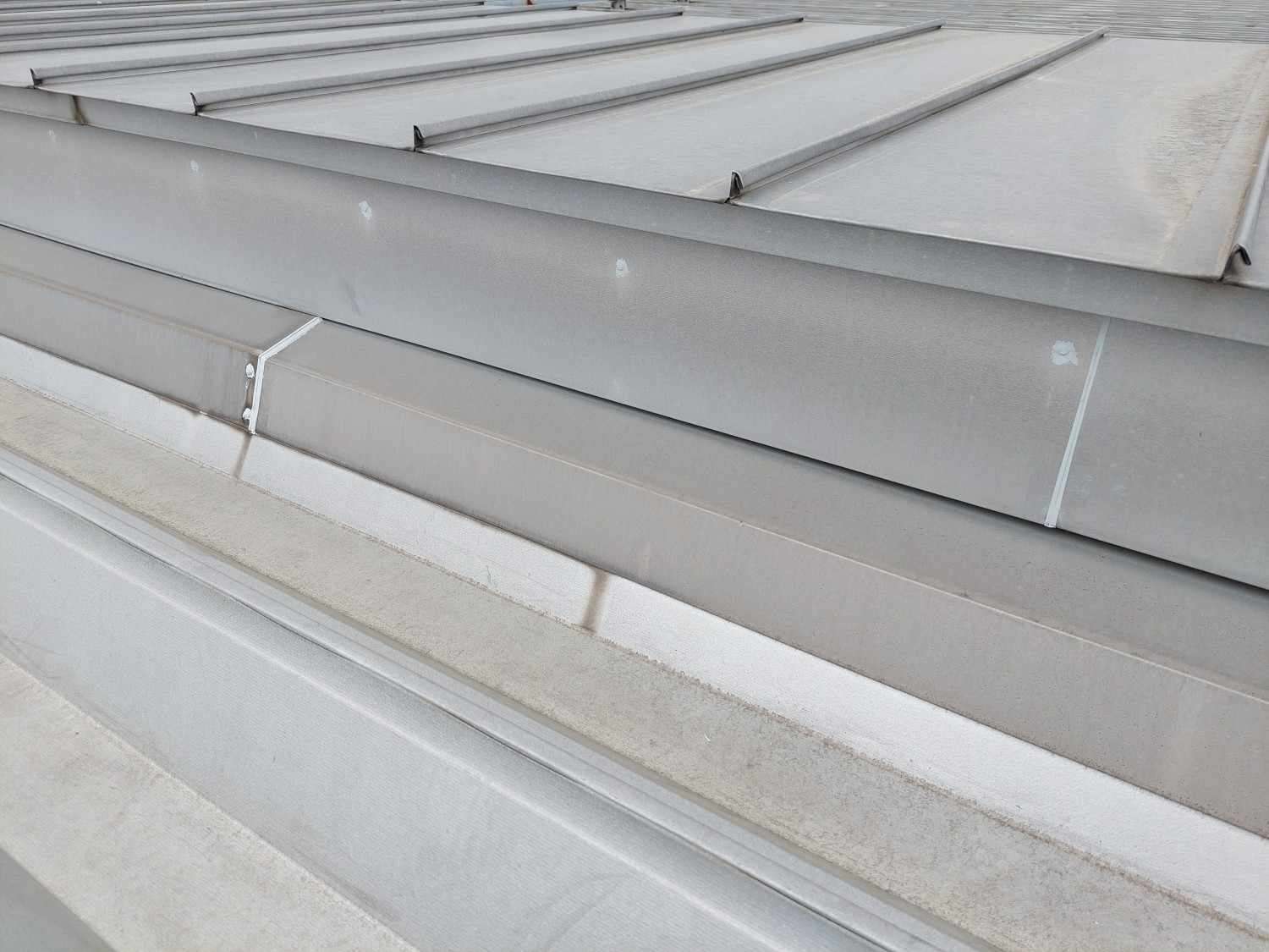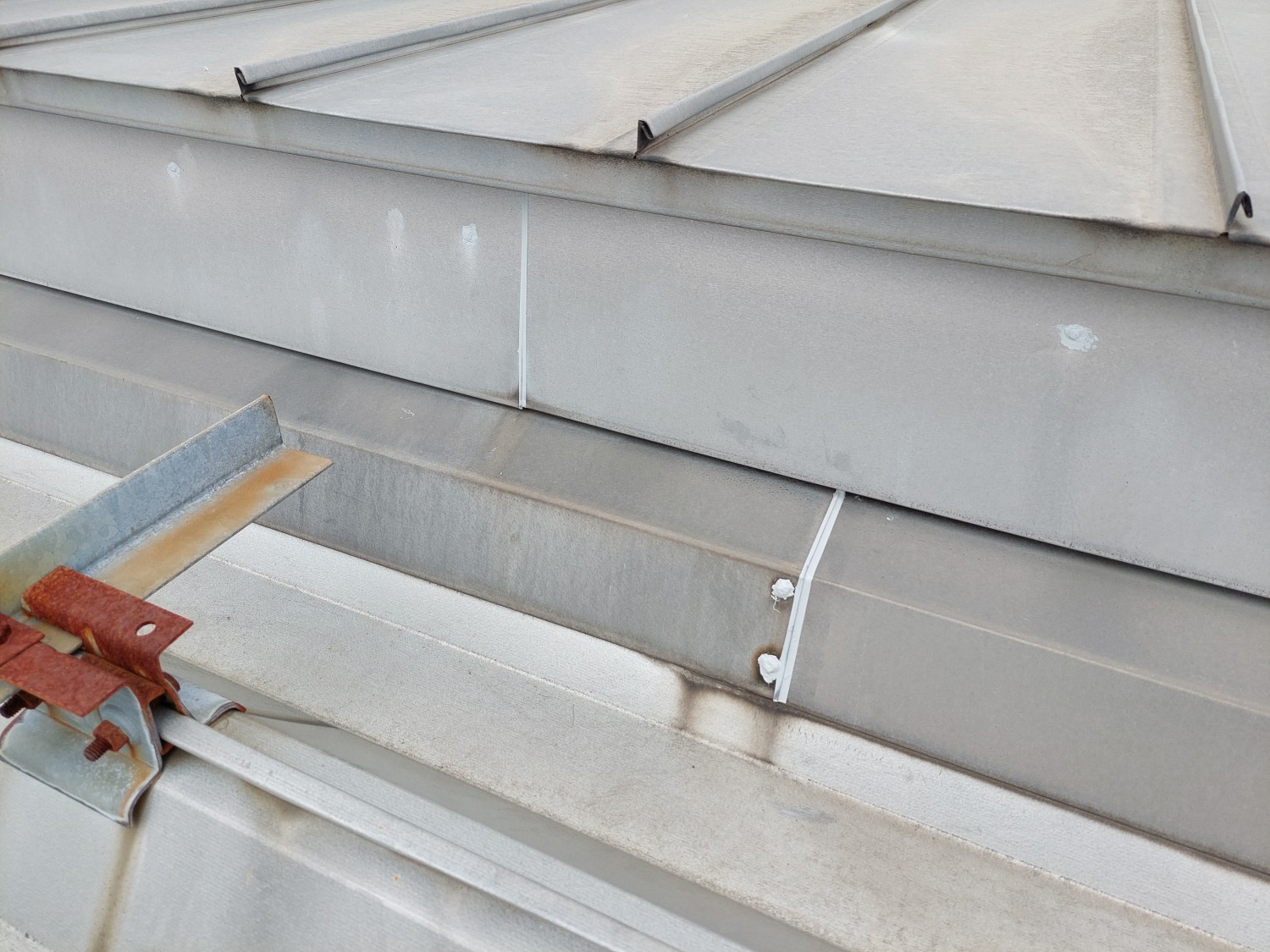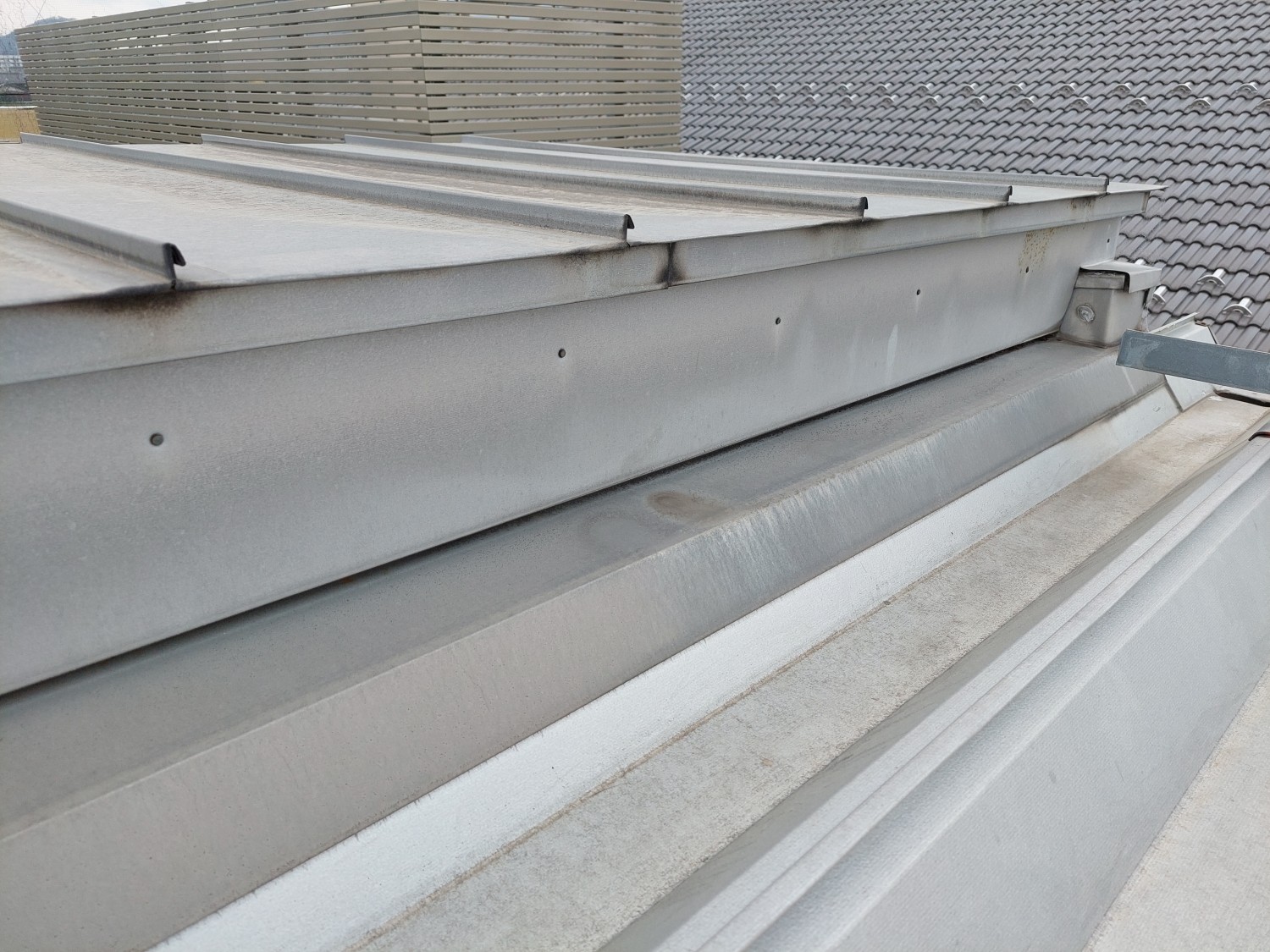 天井から雨漏りがありましたので、屋根を確認しましたところ金属屋根の取り合い部であったため、その箇所の繋ぎ目・ビス・被せ部等をシーリング補修しました。