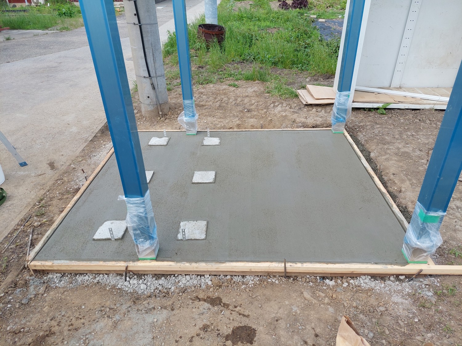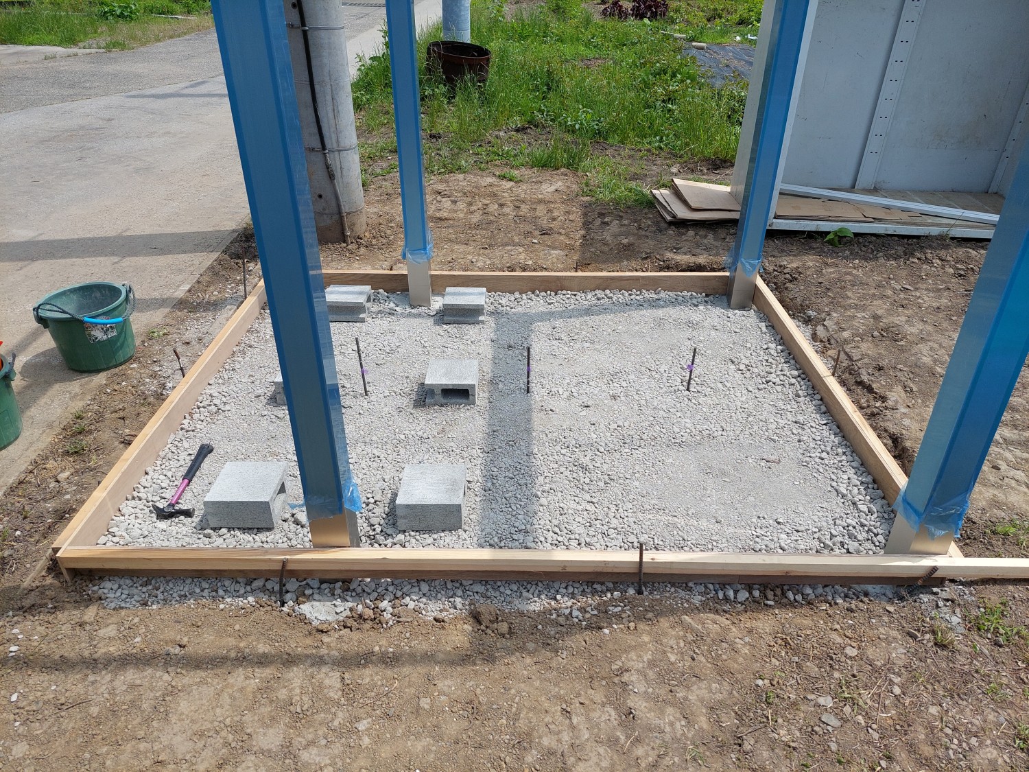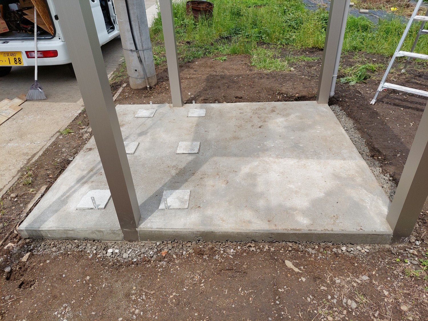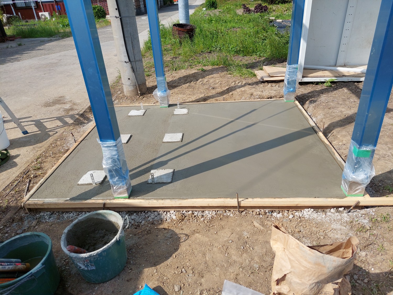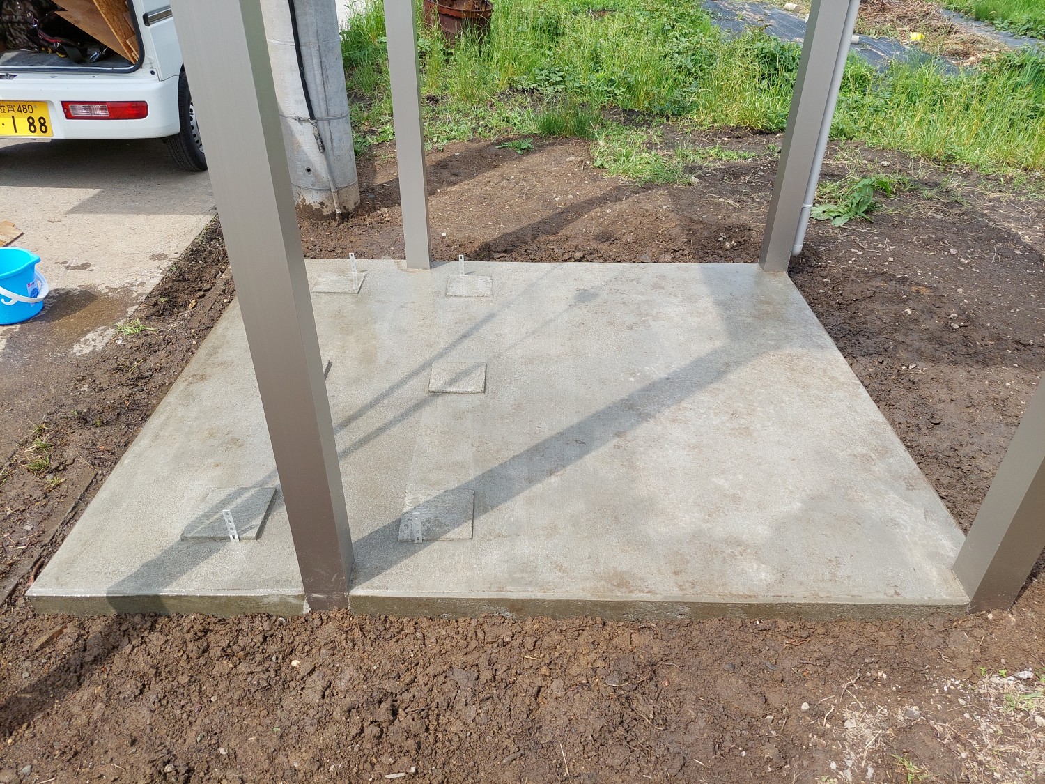 また、倉庫を乗せるブロックとアンカーも土間コンクリートに埋設して、固定及びスマートに見えるようにしました。