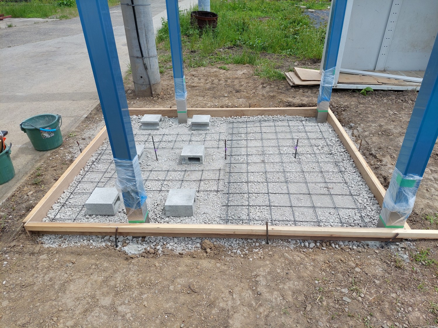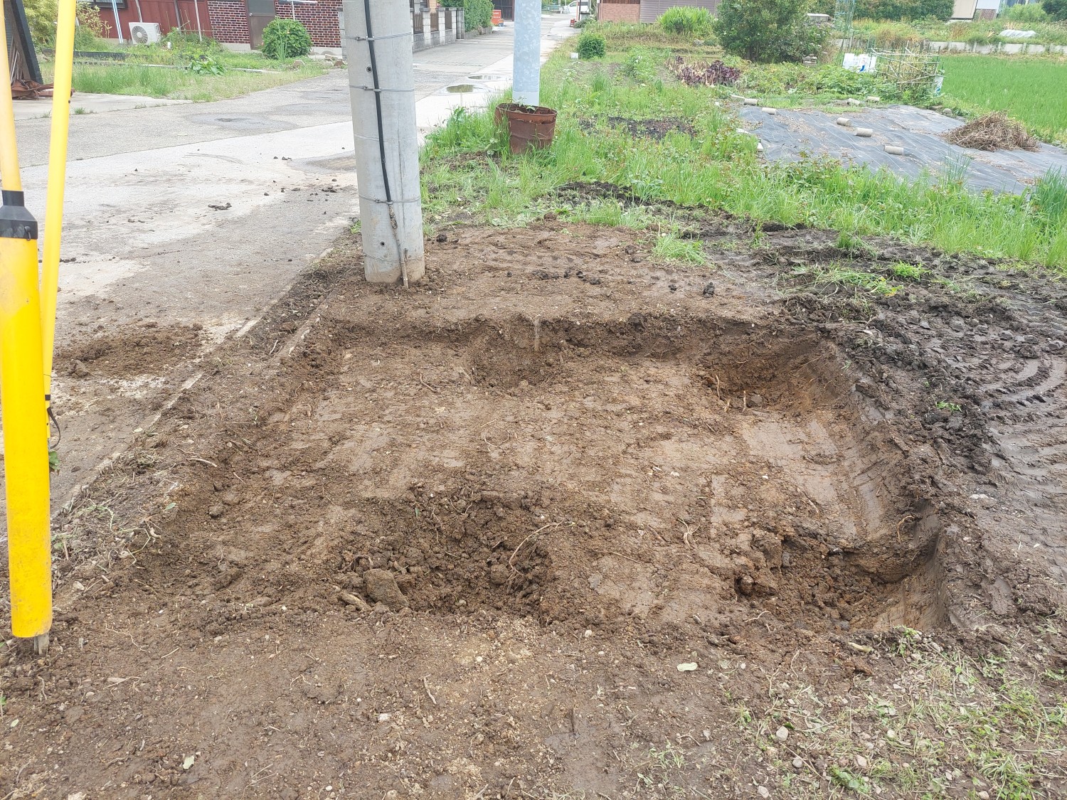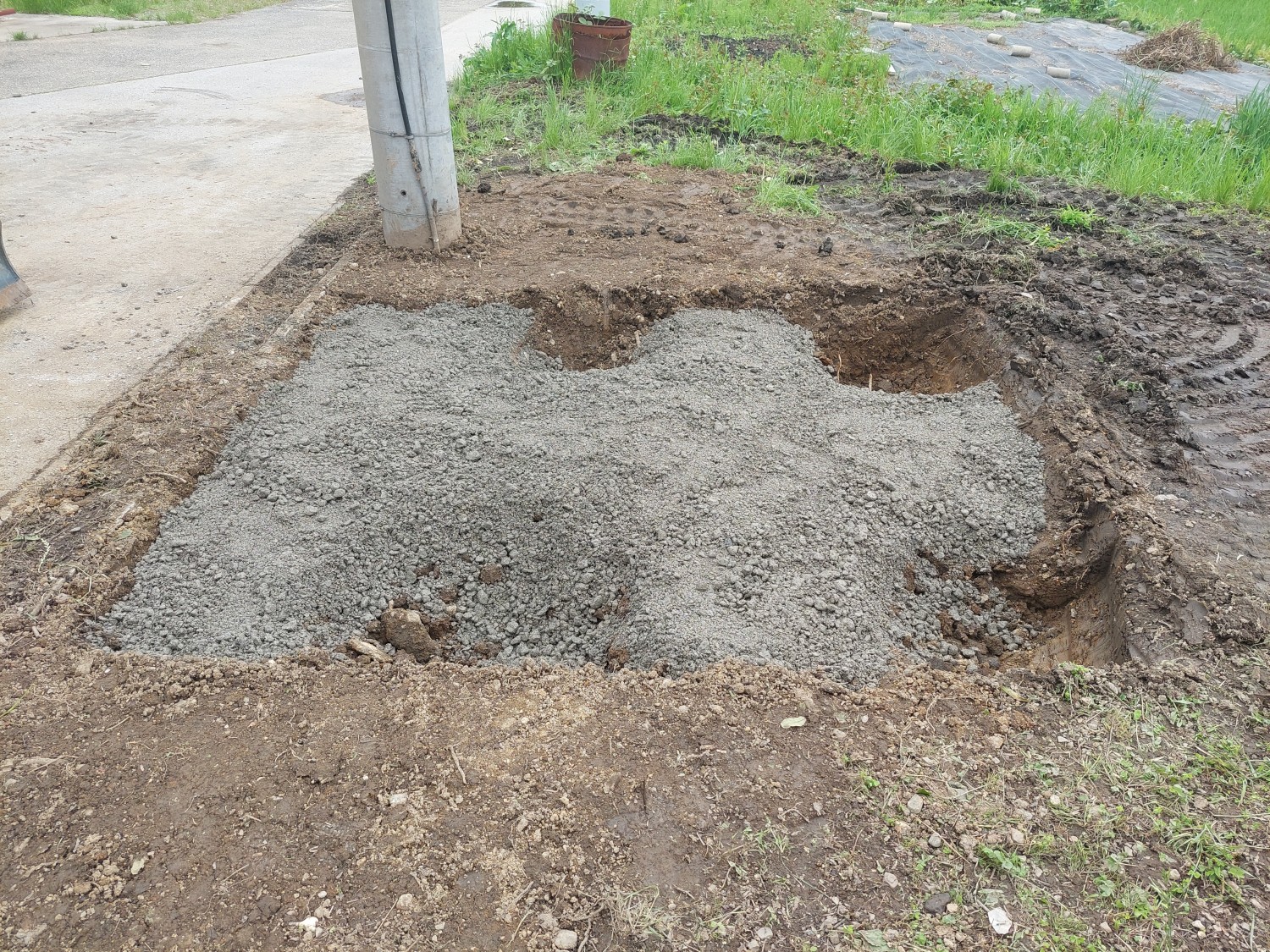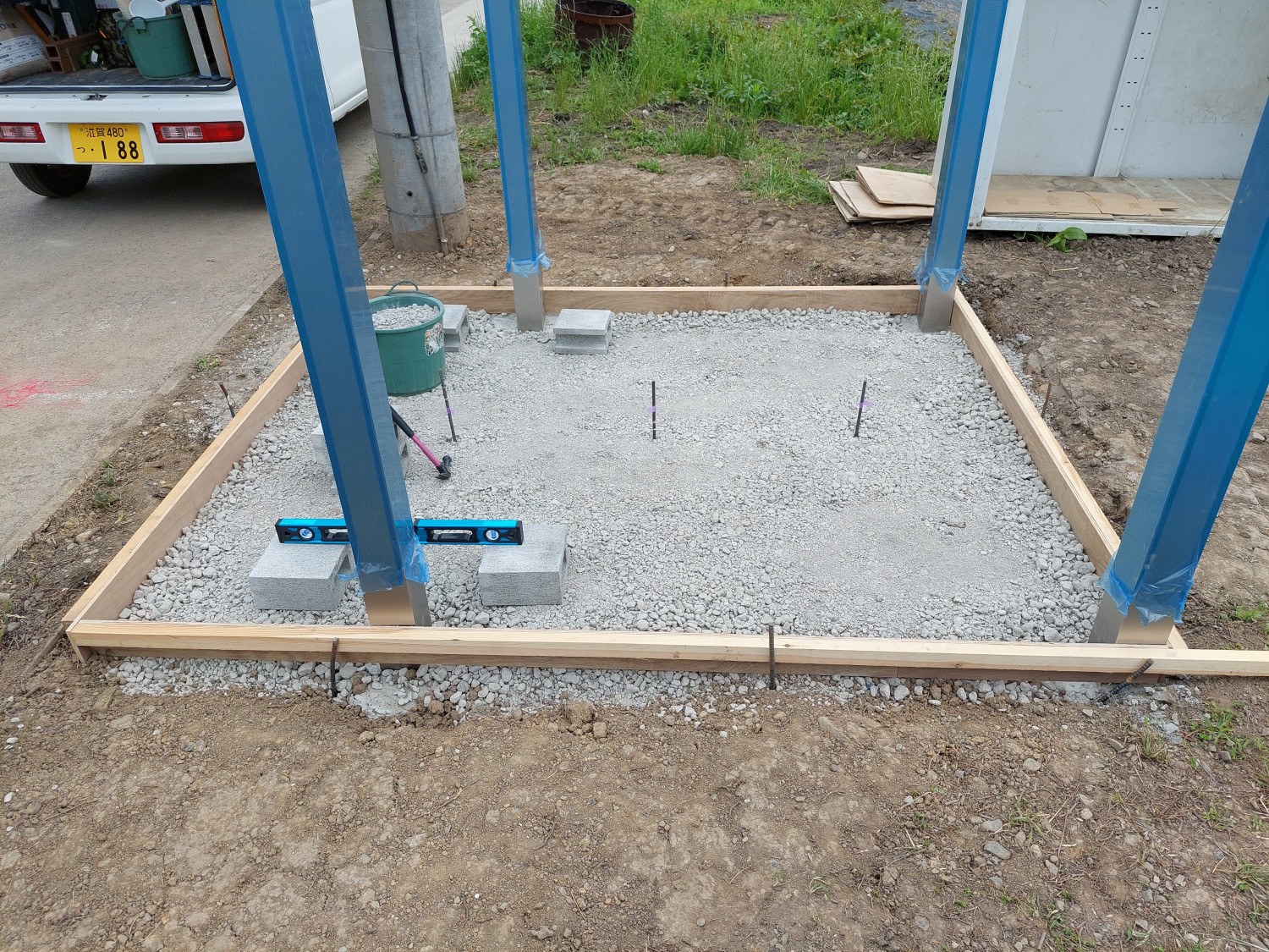 倉庫を移設するのにあたって、下地がやわらかいので土間コンクリートを打ちました。