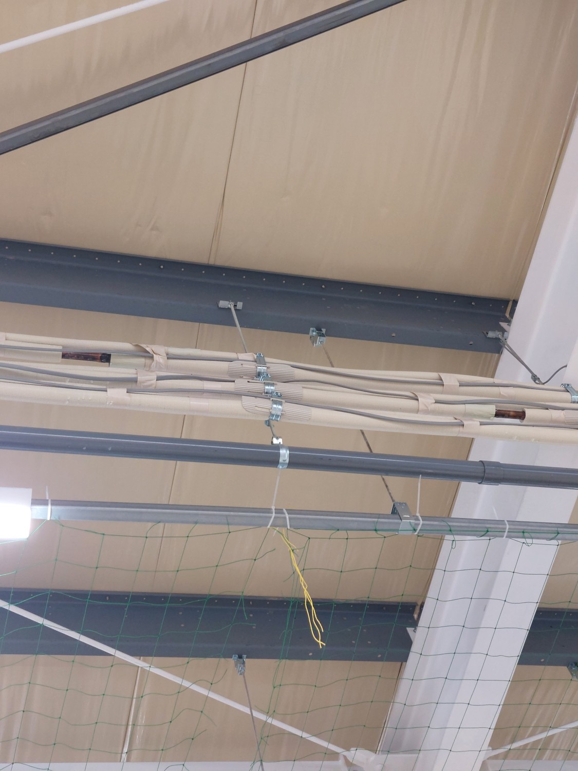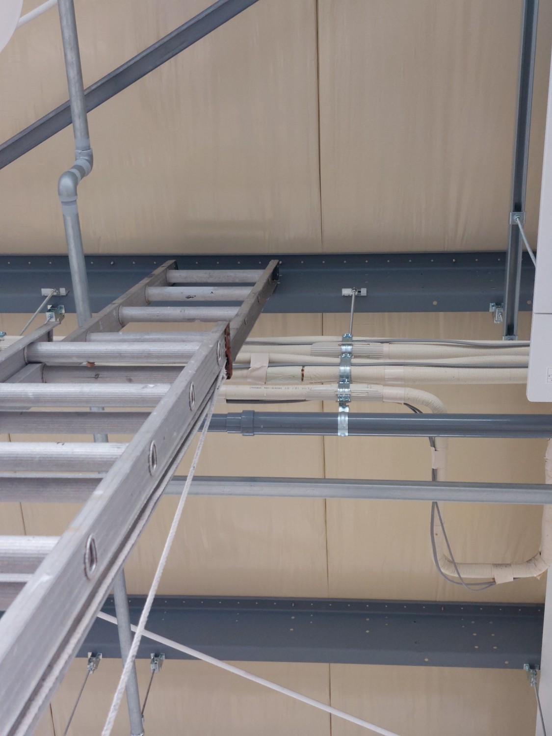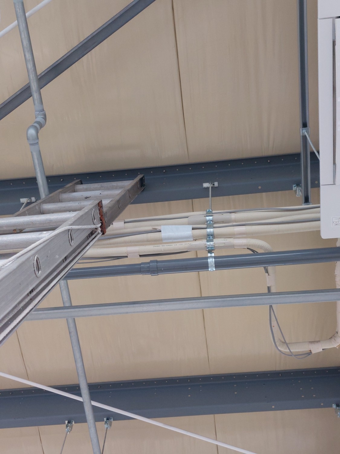 銅管が剝き出しになっており、結露により水滴が落ちてくるので、保温材を巻いて結露を防ぎました。