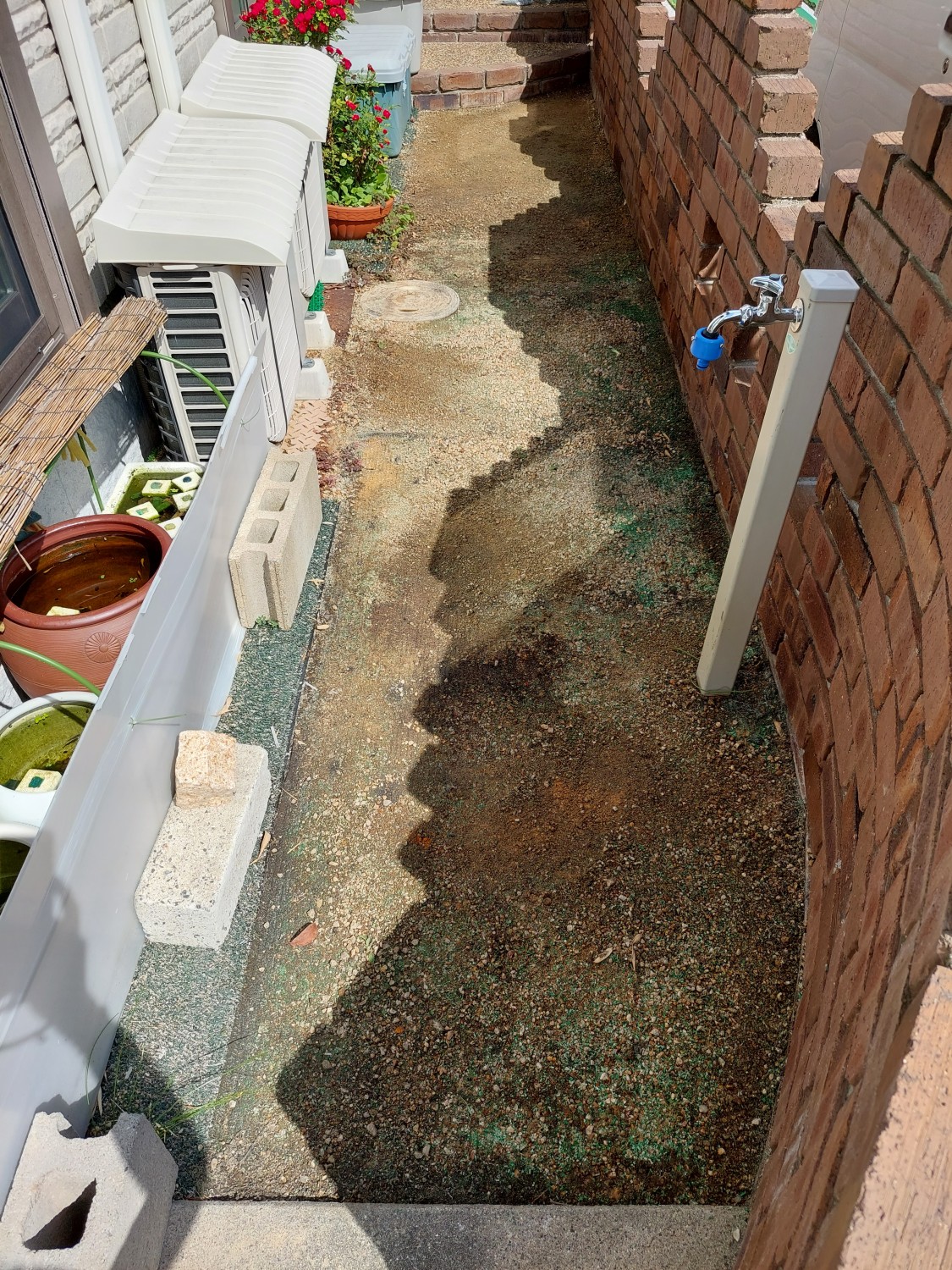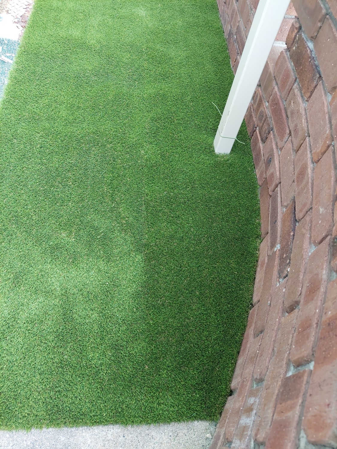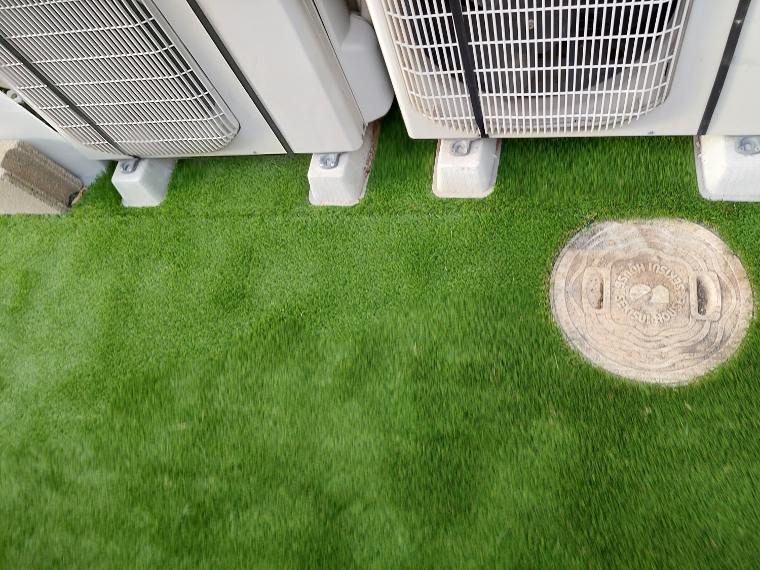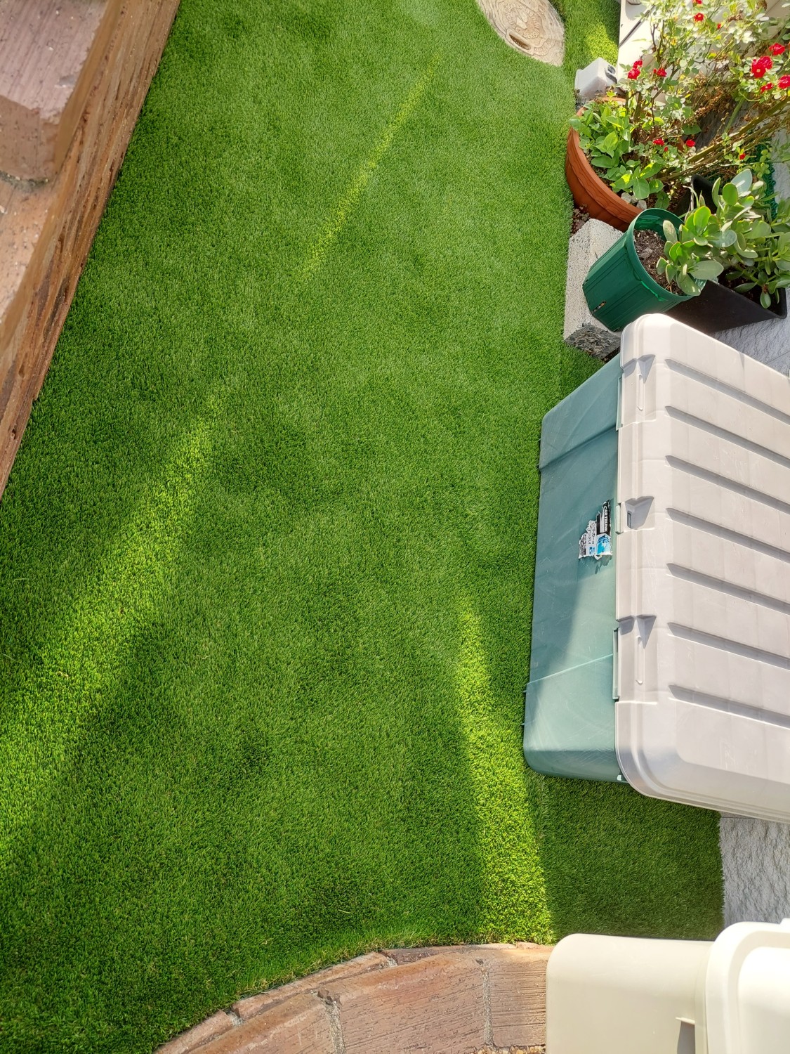 既存の人工芝がヘタっていましたので、防草シート性能を含んだ一体型になっている人工芝を敷きました。