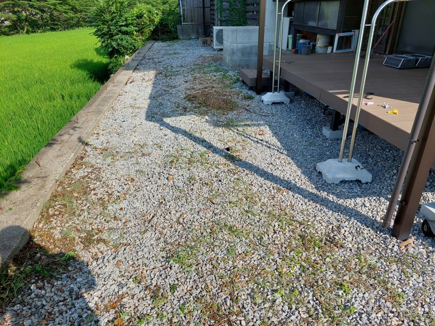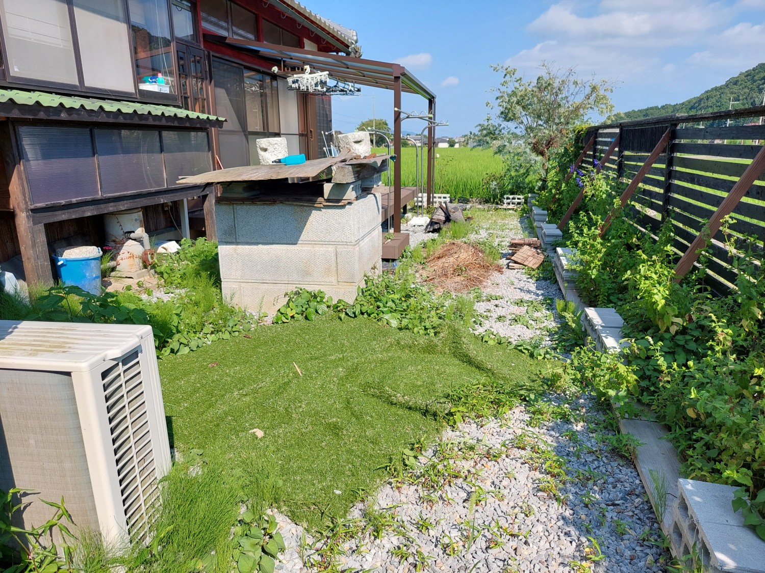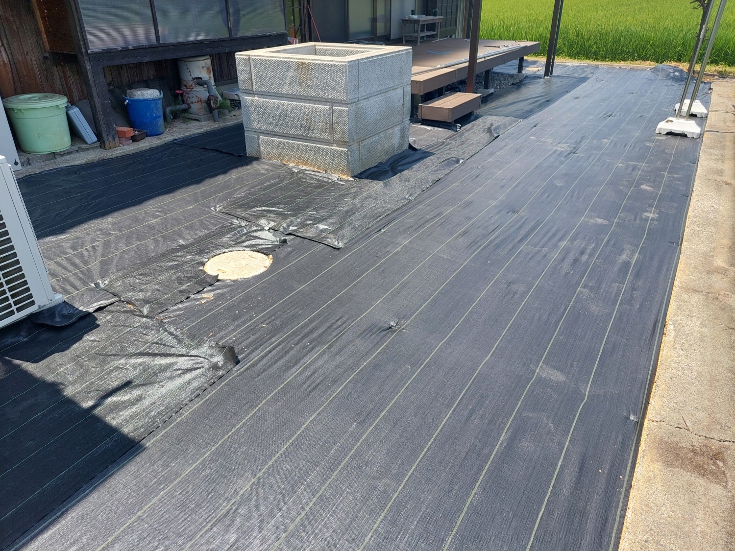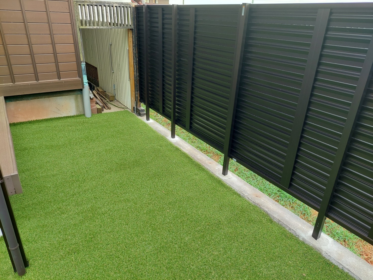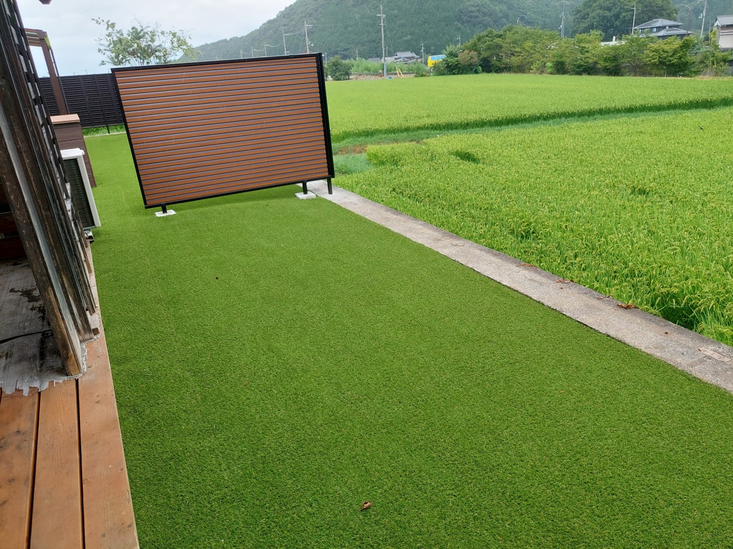 整地してから防草シートを敷き詰めて、人工芝を敷きました。