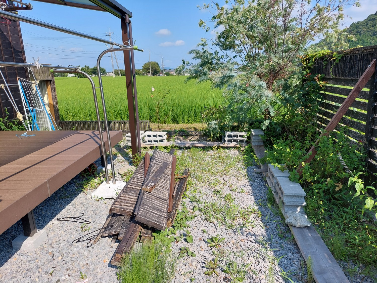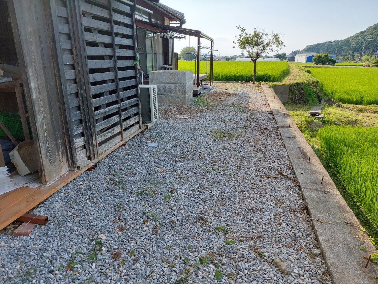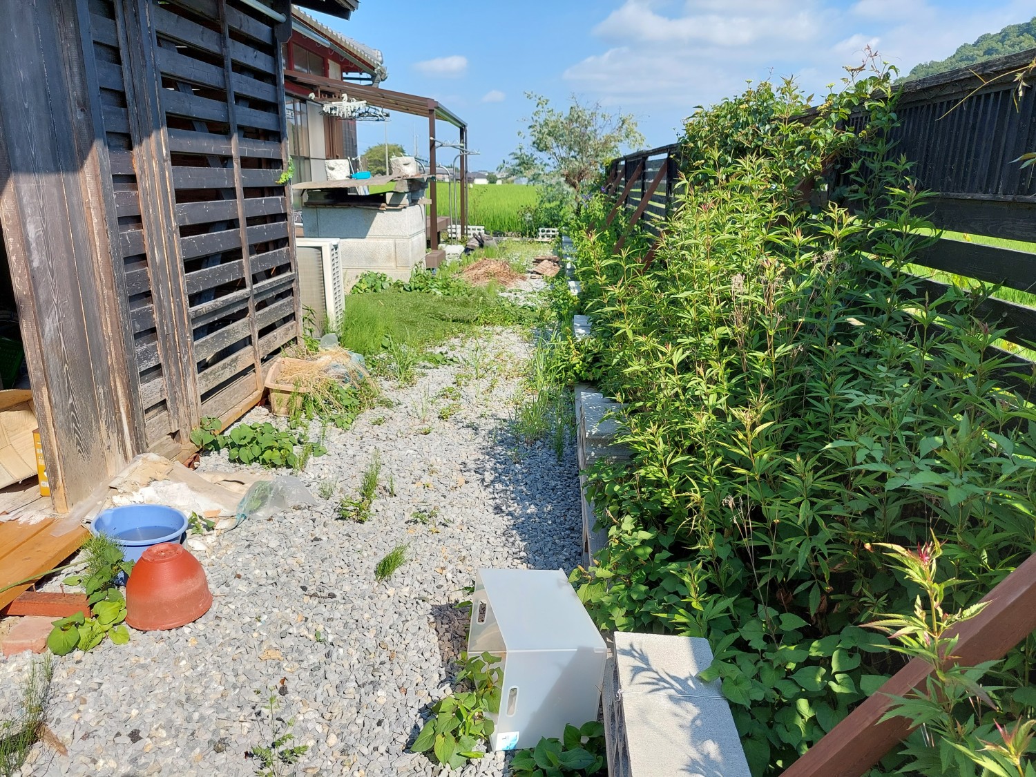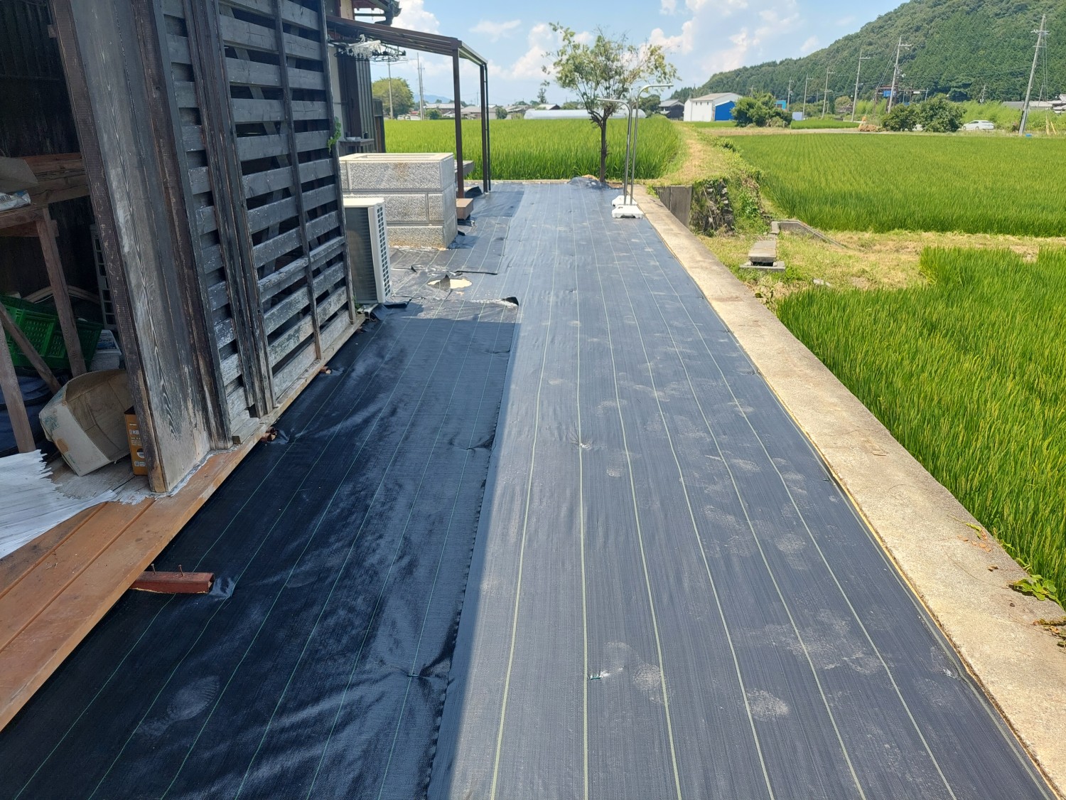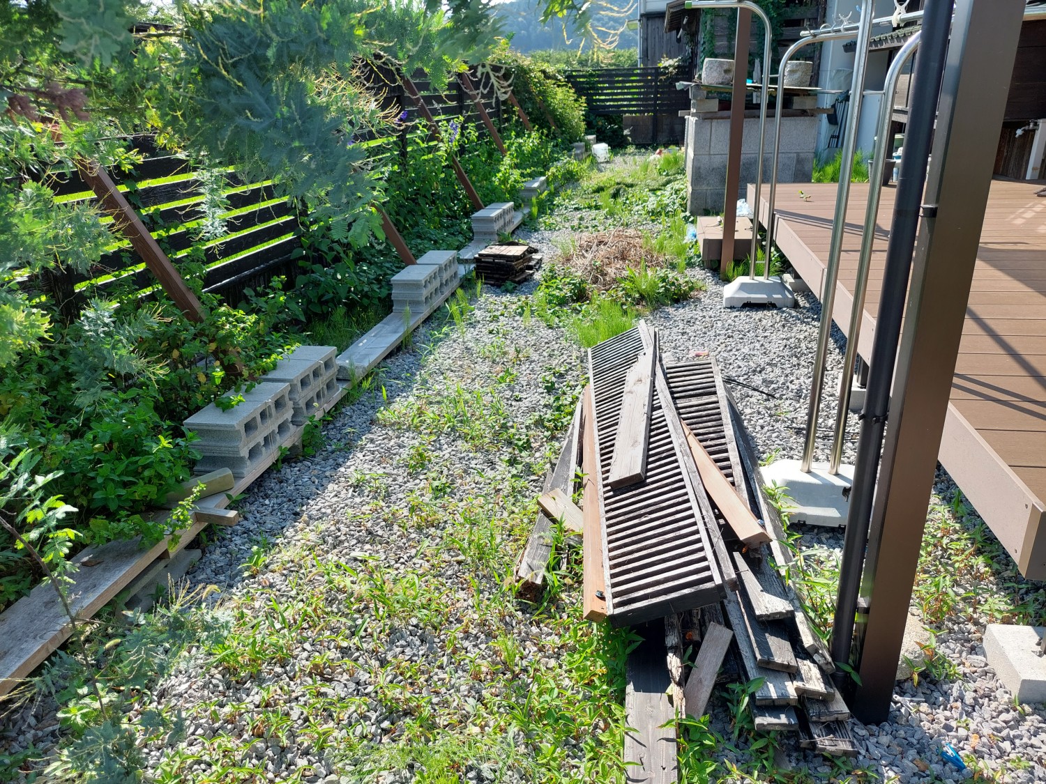 整地してから防草シートを敷き詰めて、人工芝を敷きました。