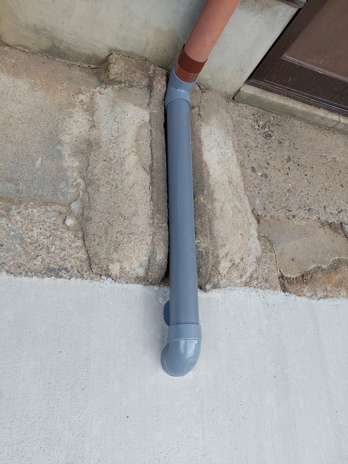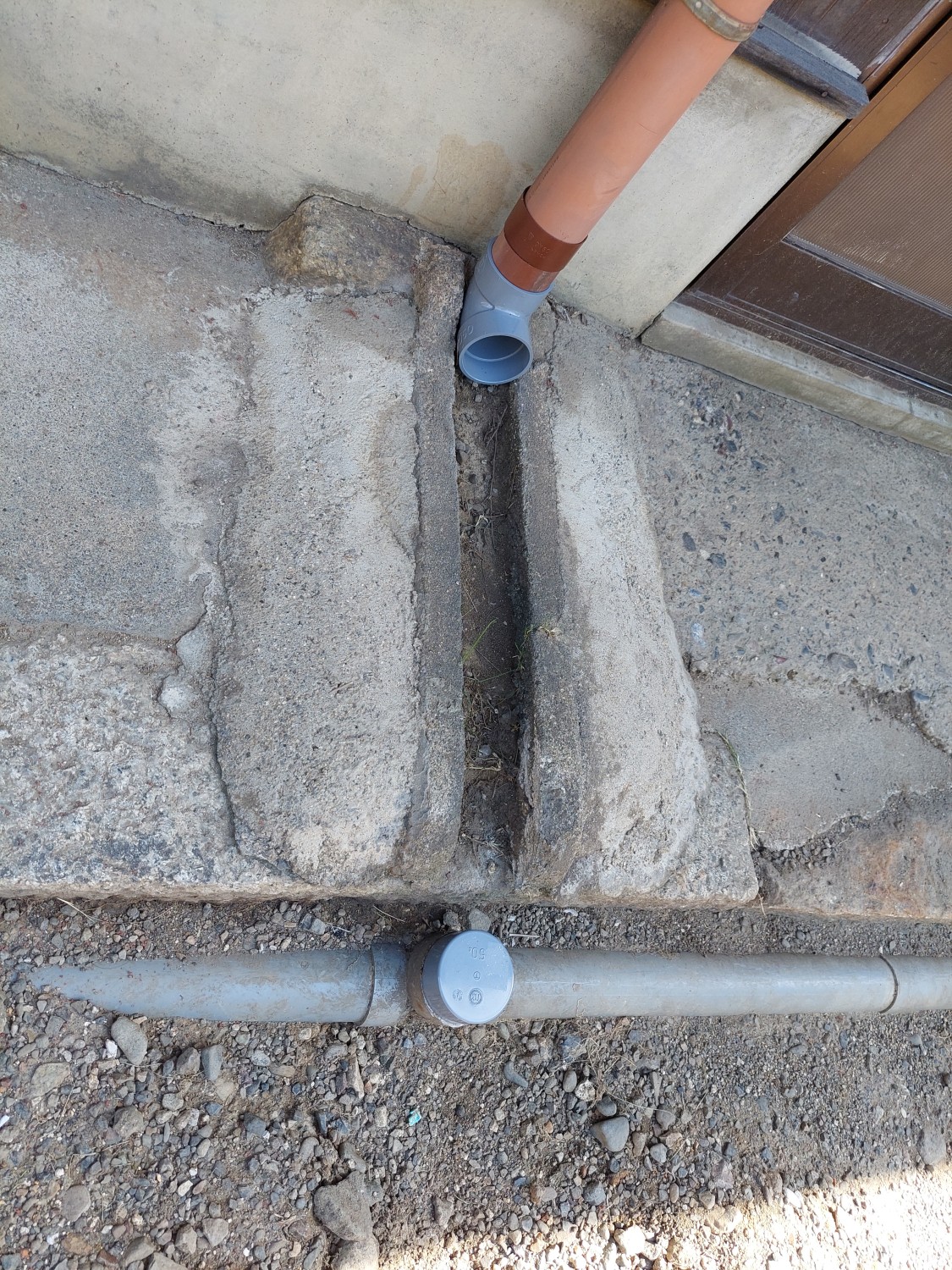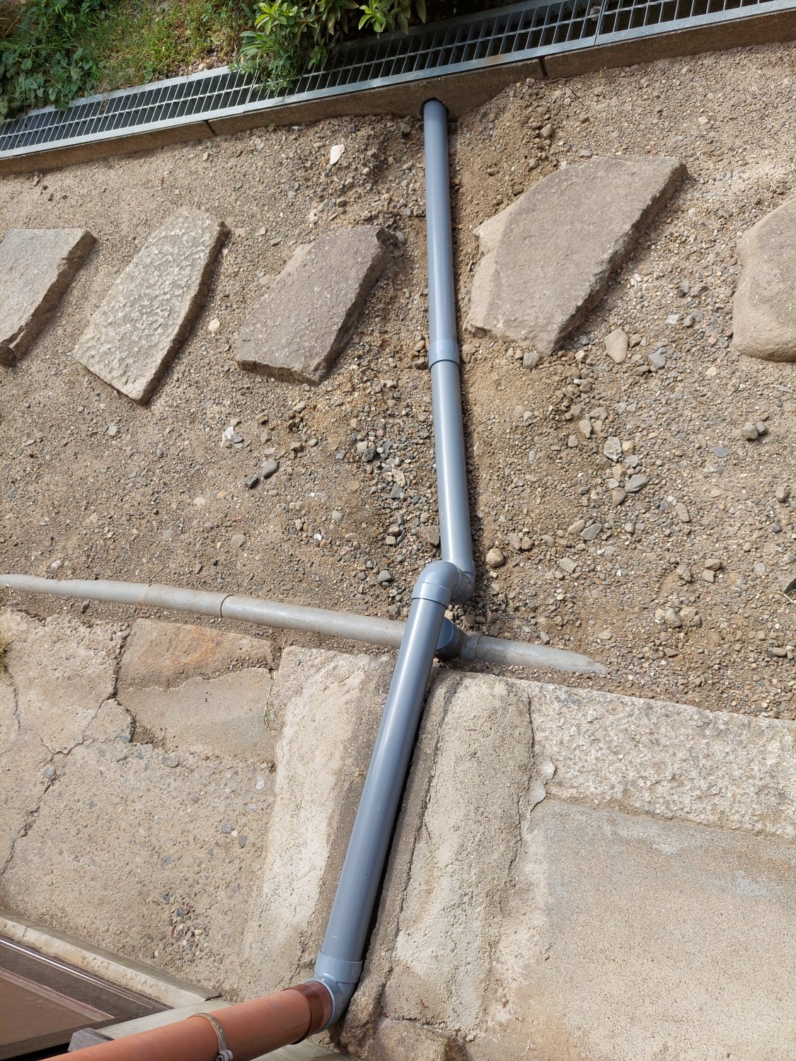 雨樋の排水を埋設にて配管を接続して、新しくU字溝に流れるように設置しました。