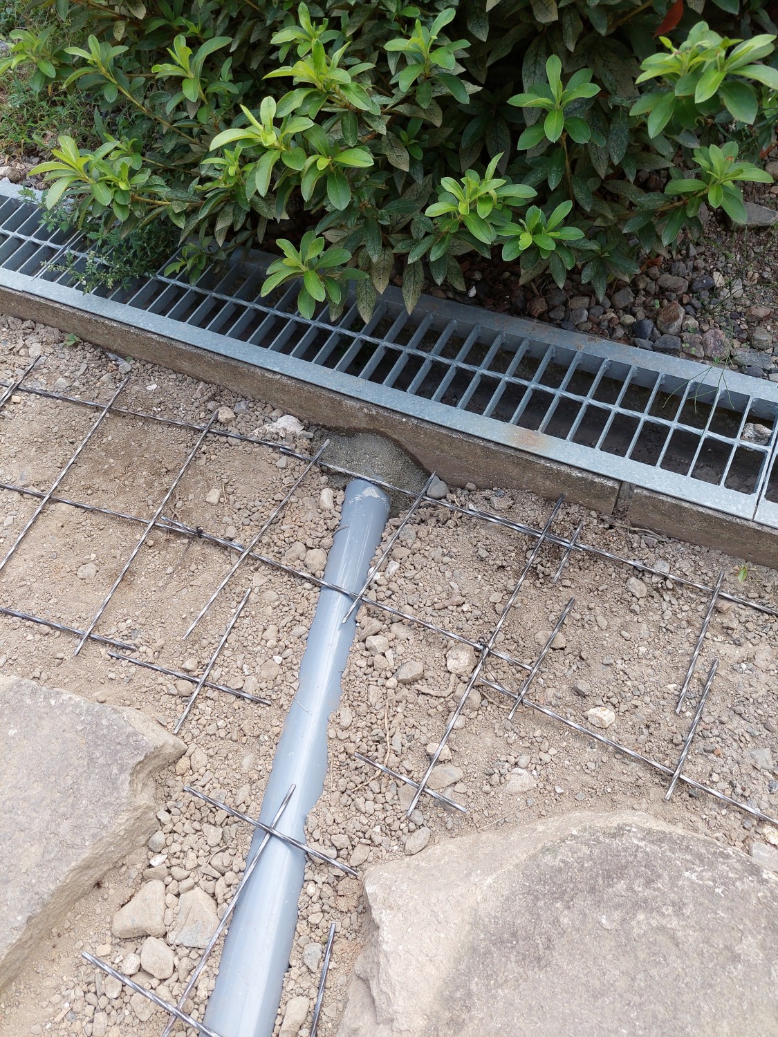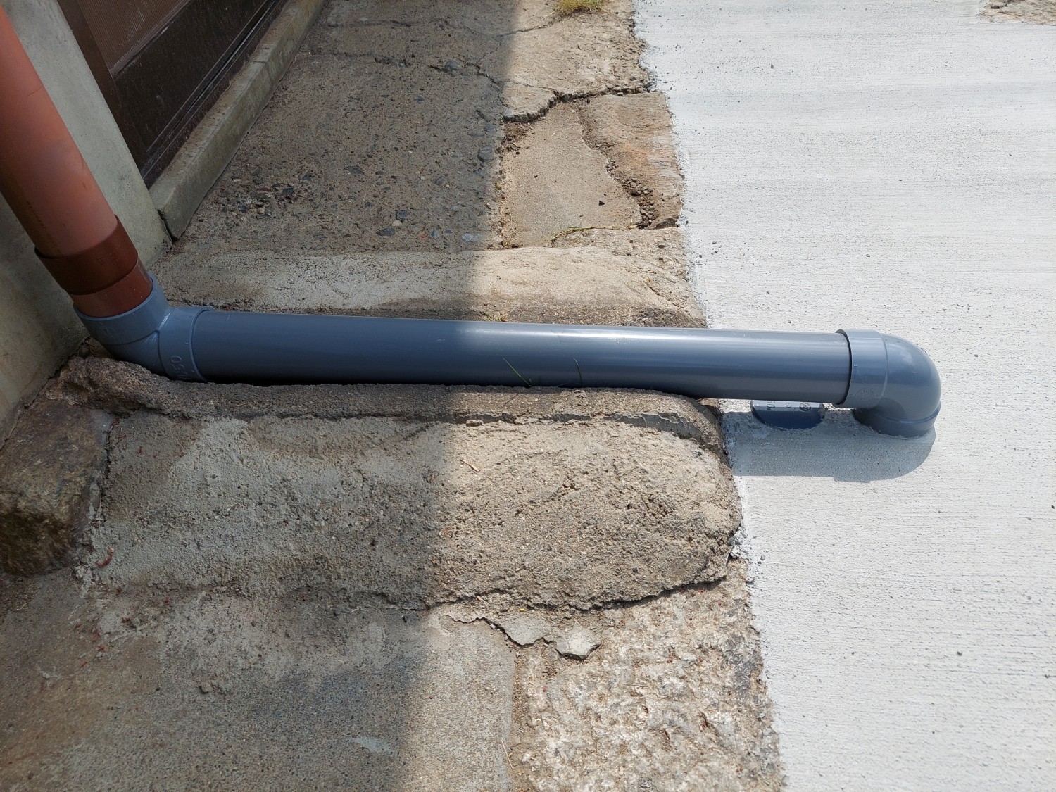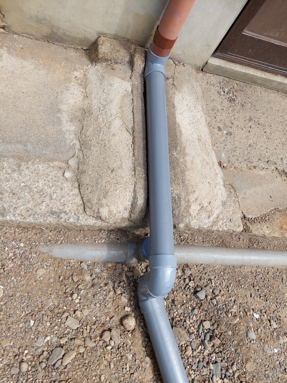 雨樋の排水を埋設にて配管を接続して、新しくU字溝に流れるように設置しました。