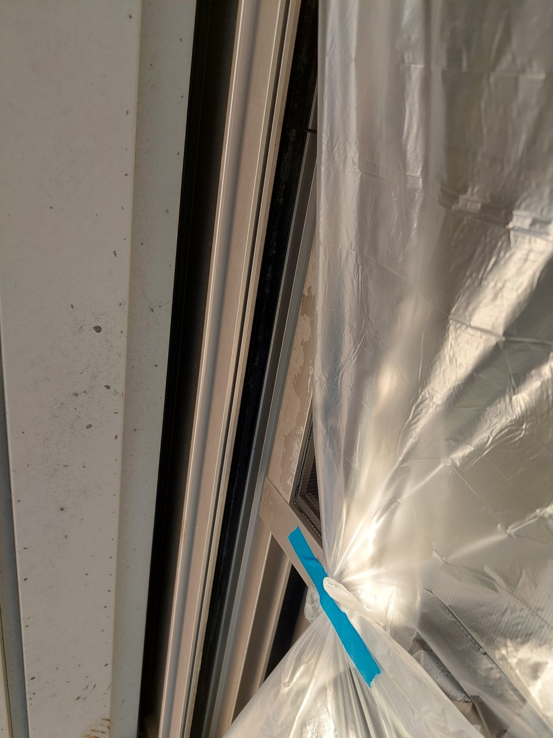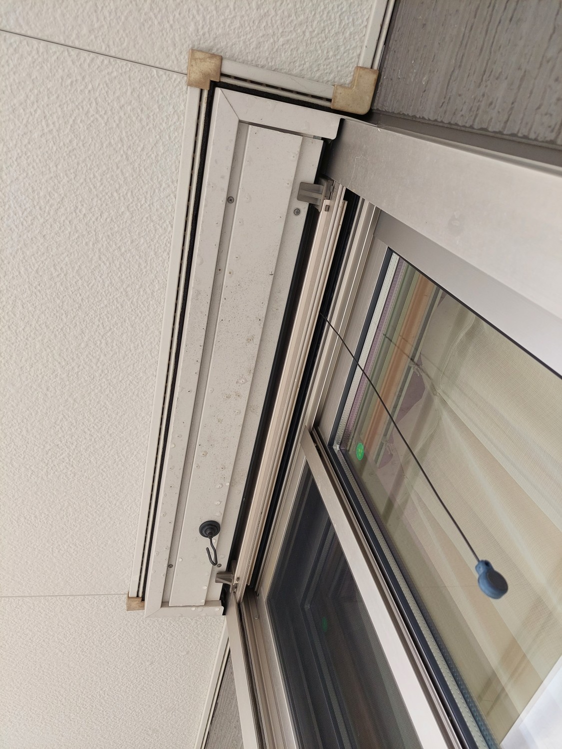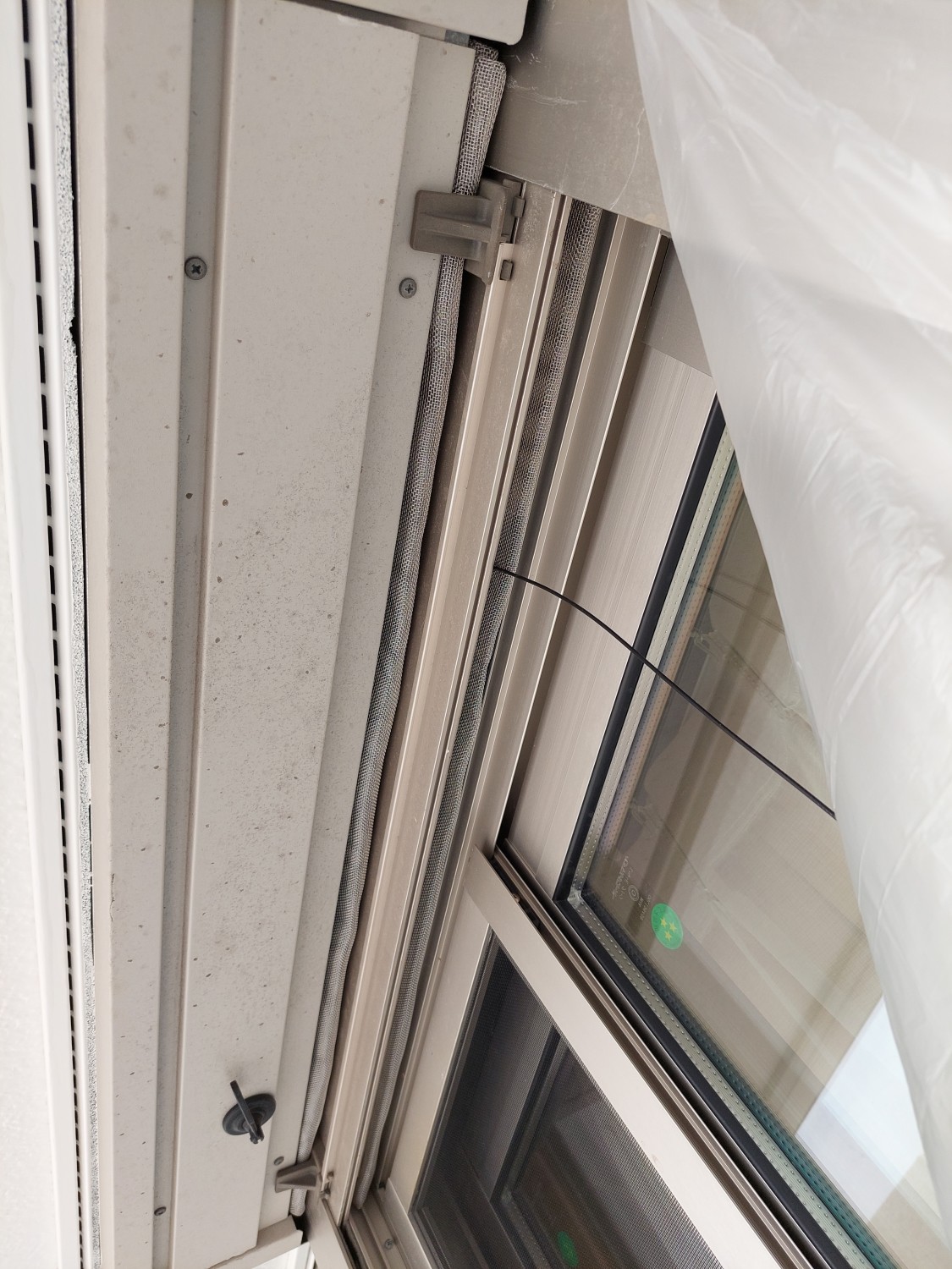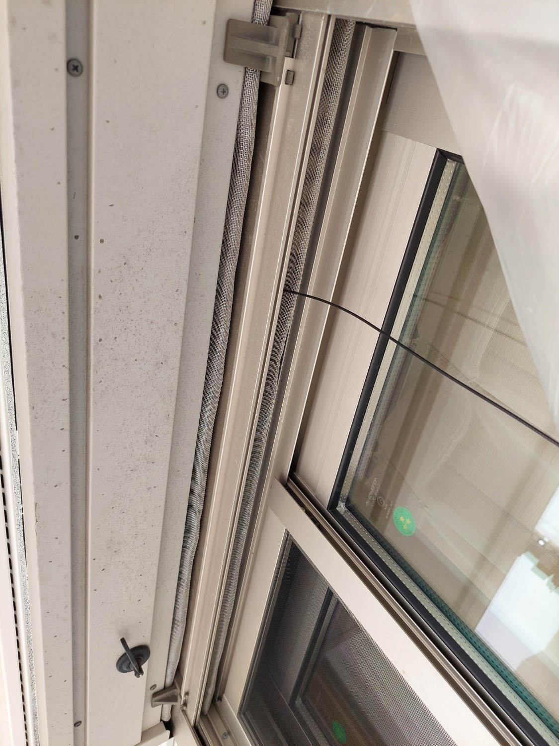 2階の窓2ヶ所のシャッターBOXの中に、コウモリが出入りするとのことでしたので、入らないようにと食いちぎらないように、金網のメッシュにてシャッター部の前と後ろの両方の隙間を、中で広がるように詰めて埋めました。