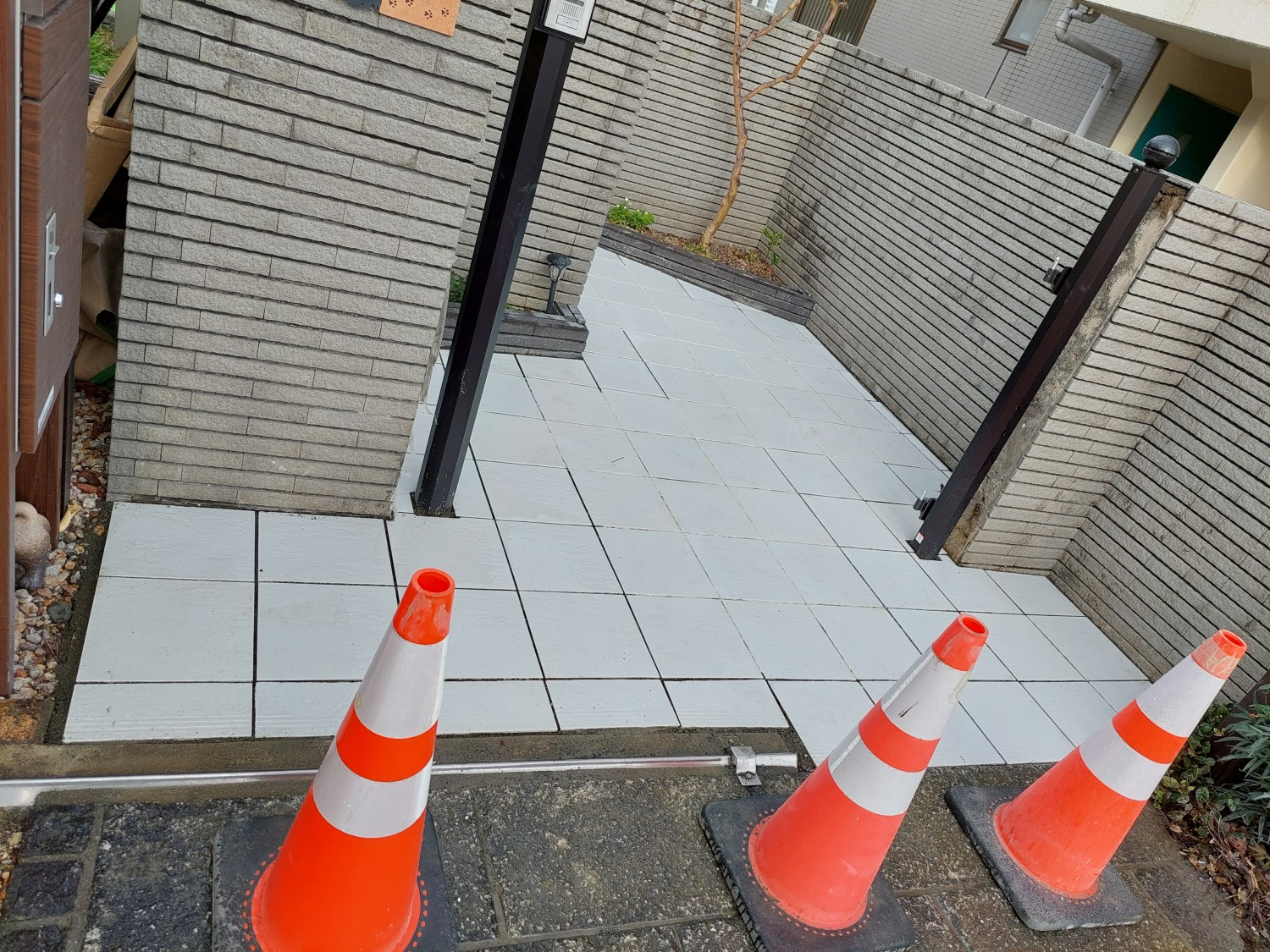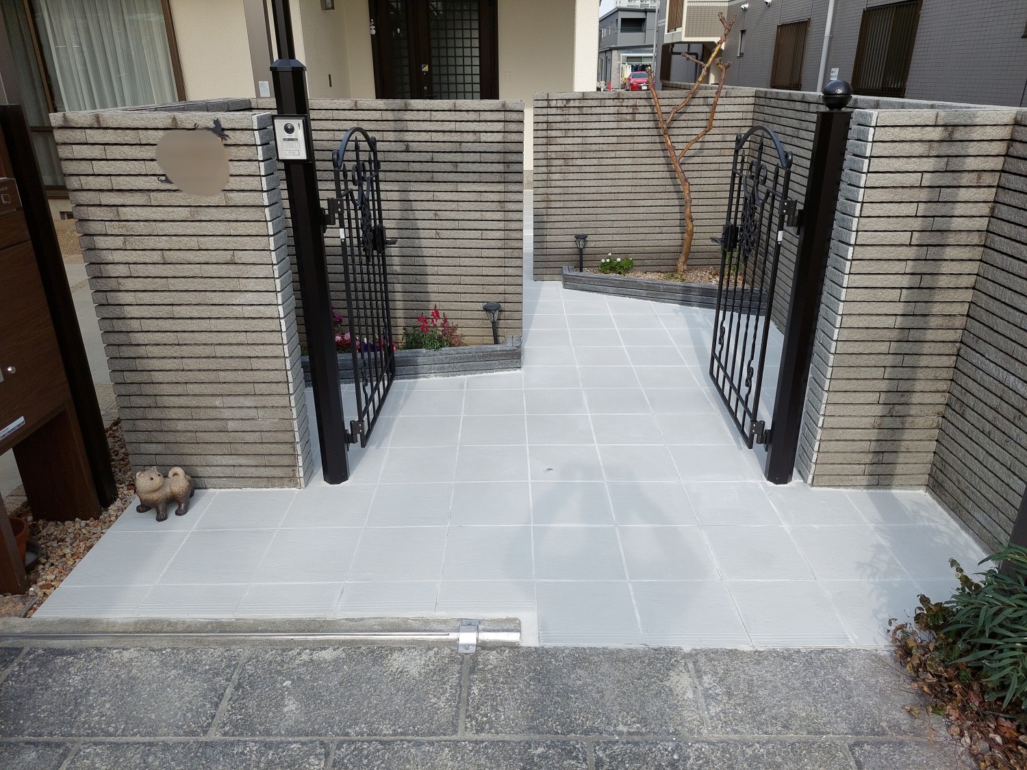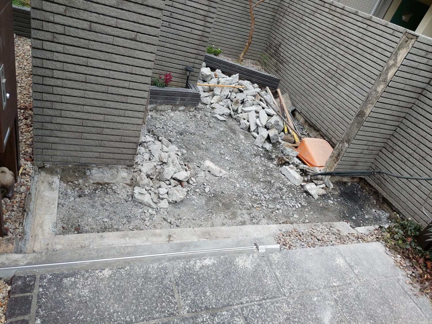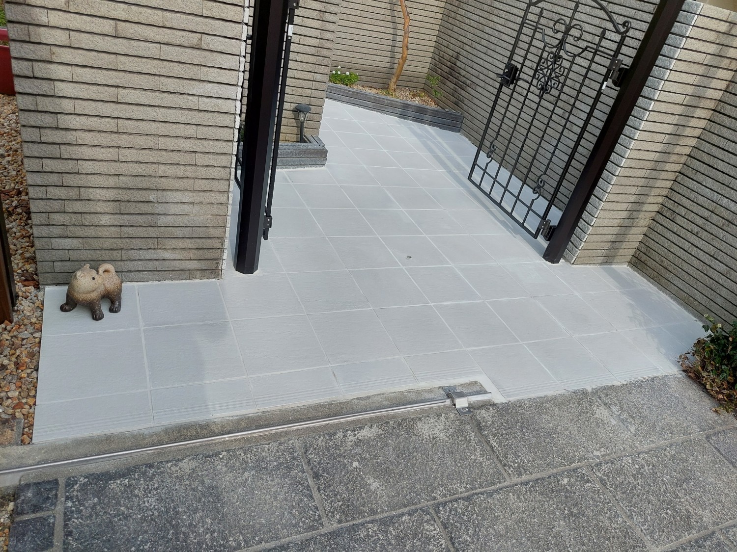 タイルアプローチのタイルを、下地のコンクリートからやり替えました。